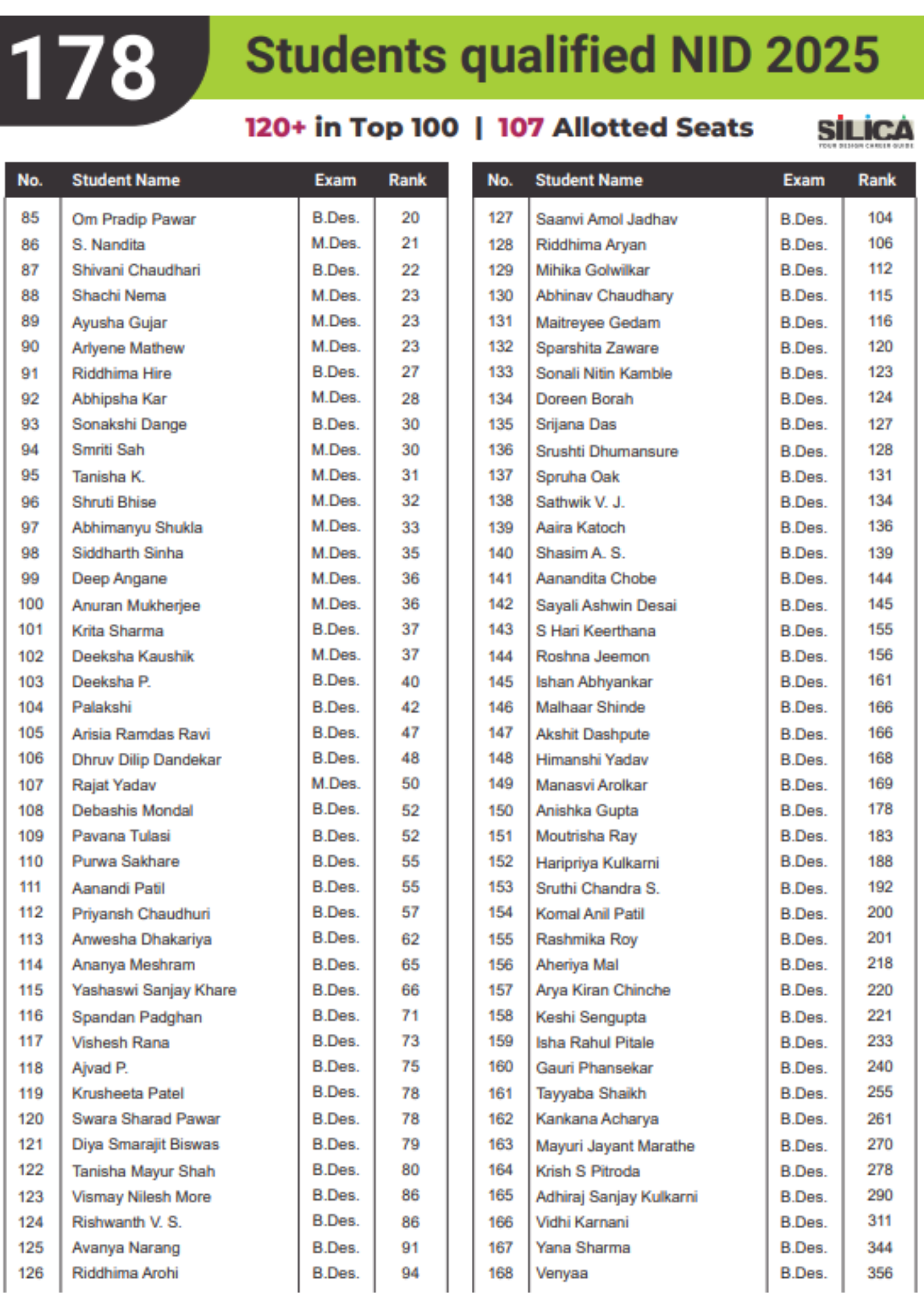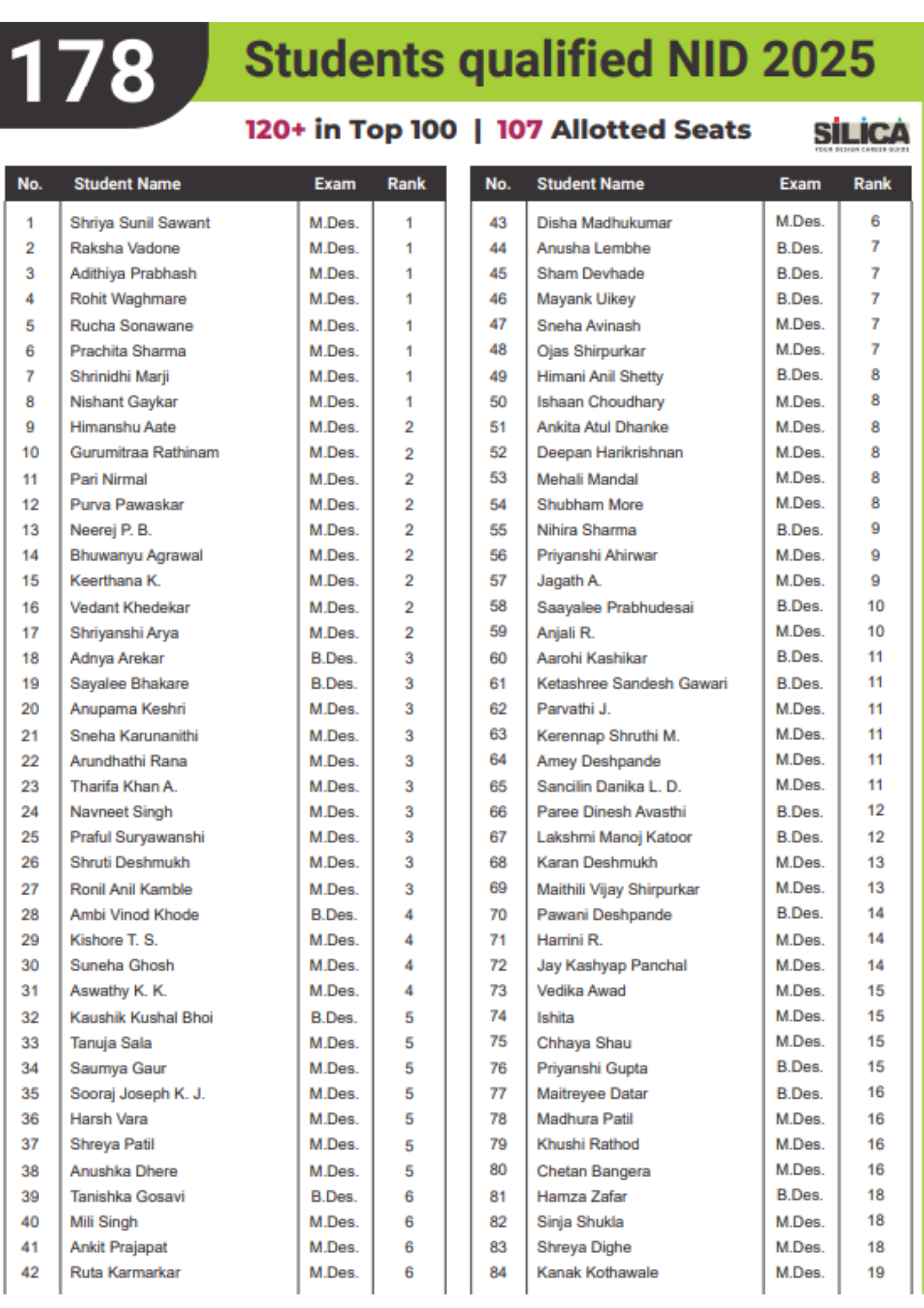 | Programs | B.Des. | M.Des. |