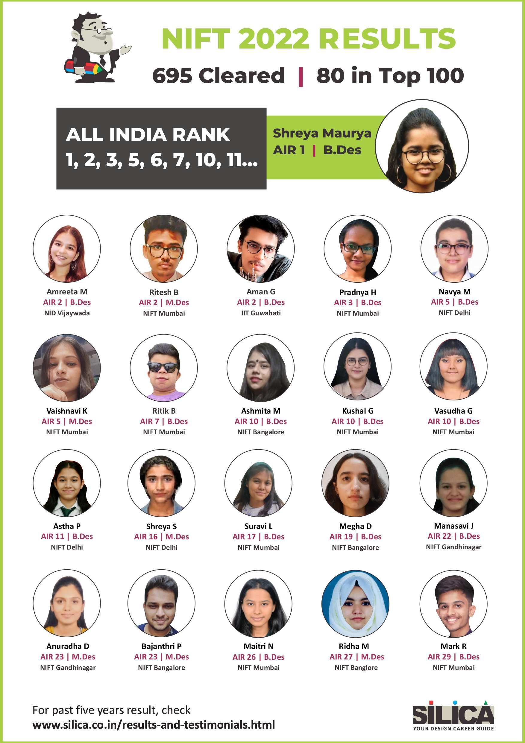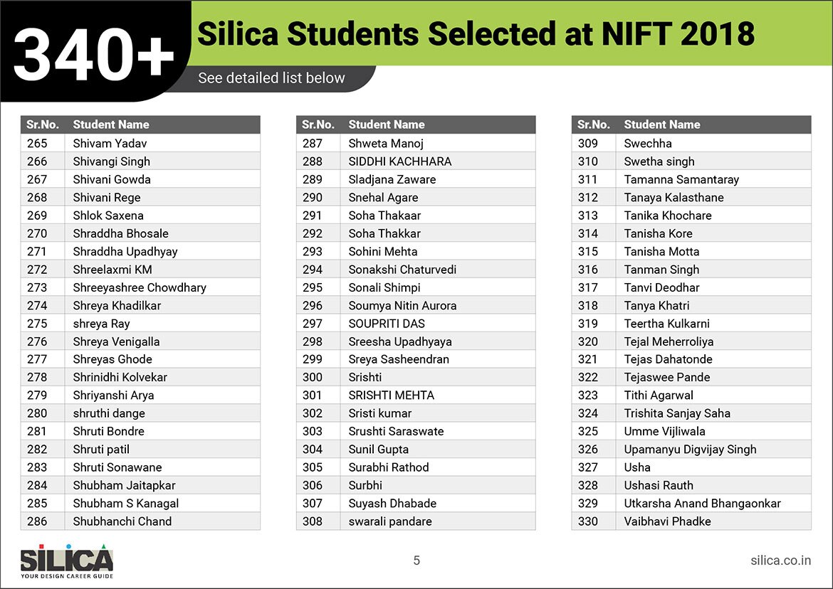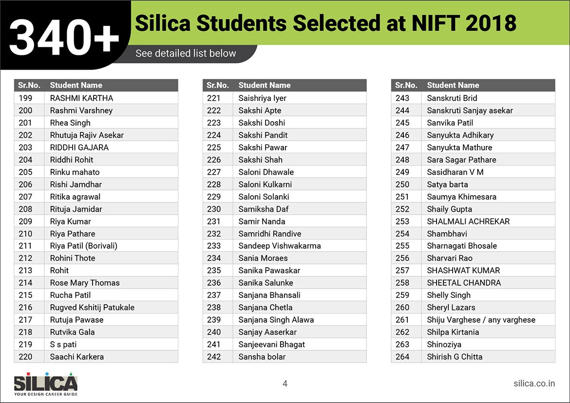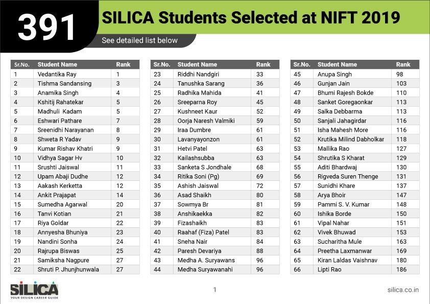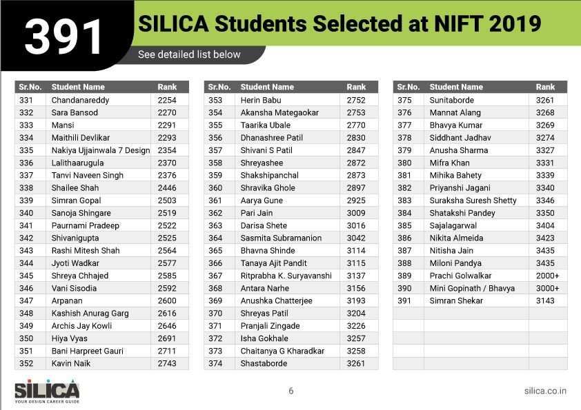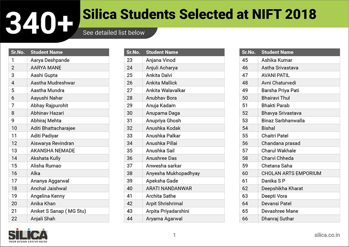 "SILICA’s modules helped me improve my performance and crack the design entrance exam in a short period of time." - Amreeta J Maurya, NIFT AIR 2