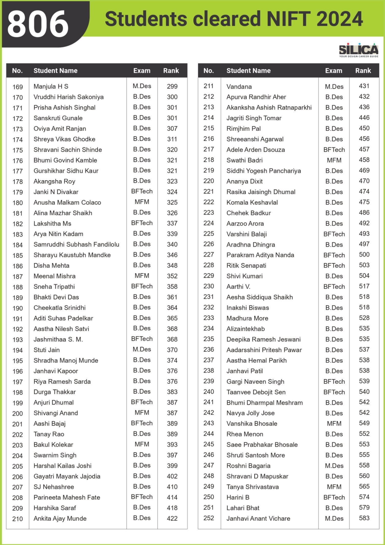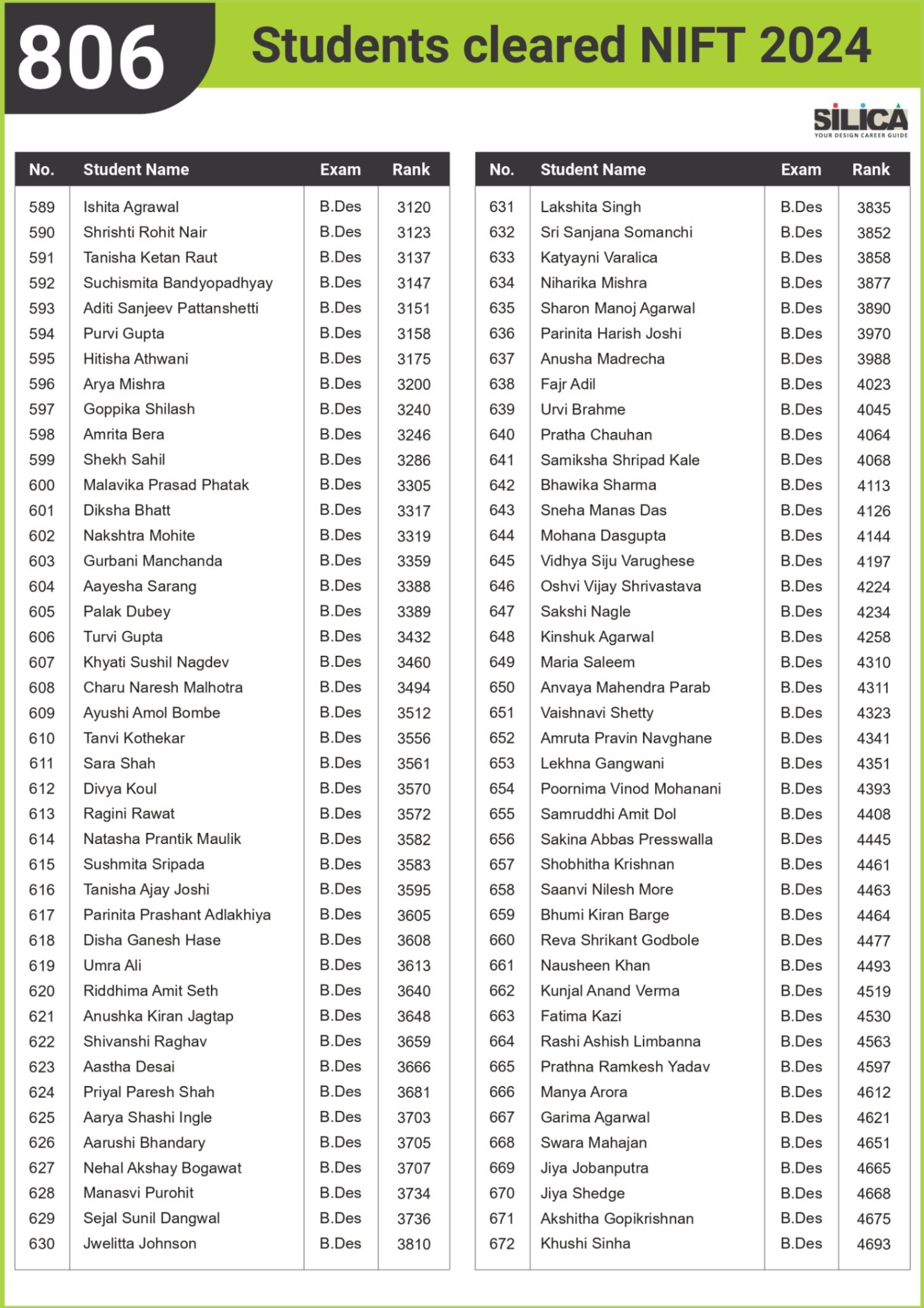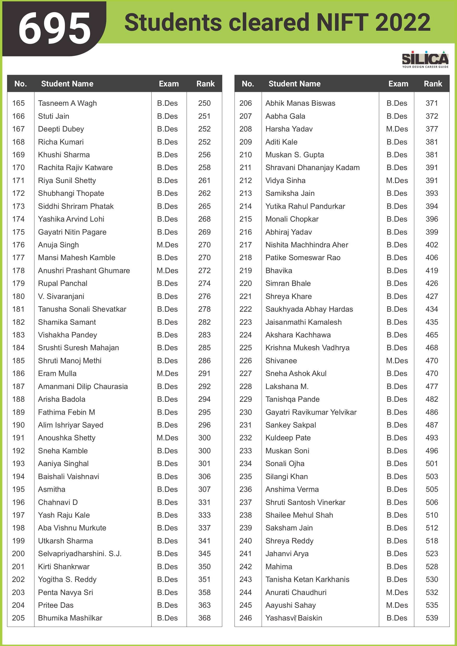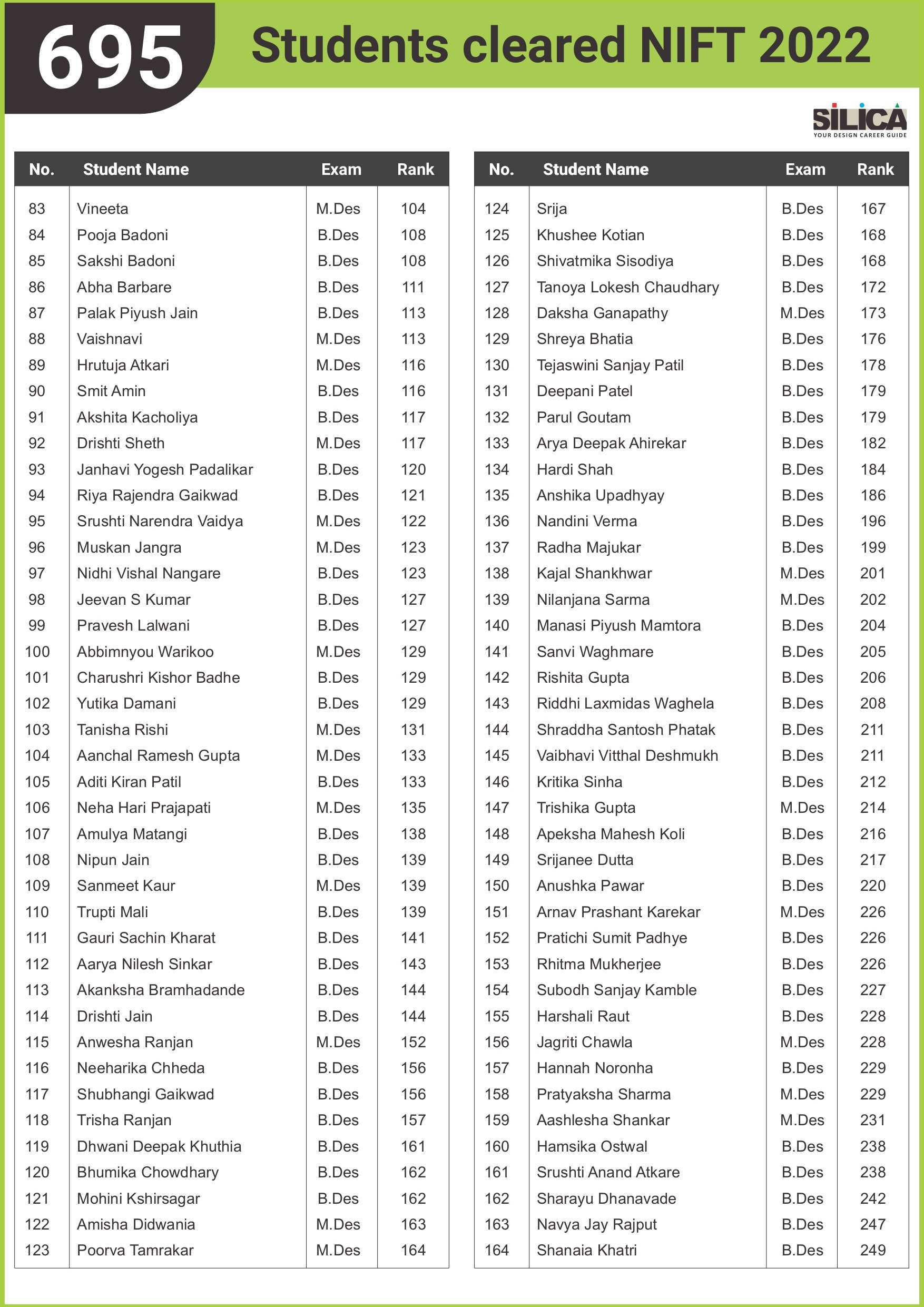 "SILICA’s modules helped me improve my performance and crack the design entrance exam in a short period of time." - Amreeta J Maurya, NIFT AIR 2