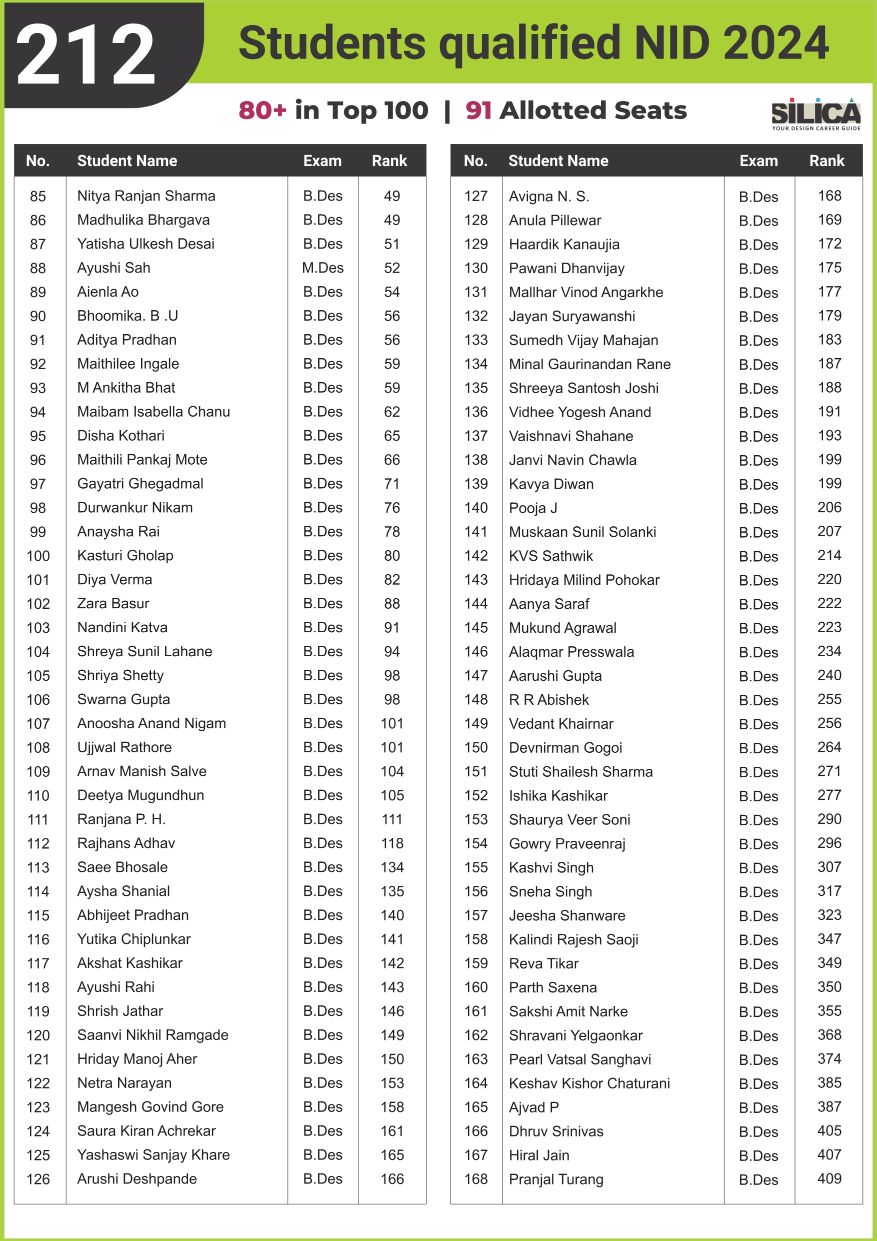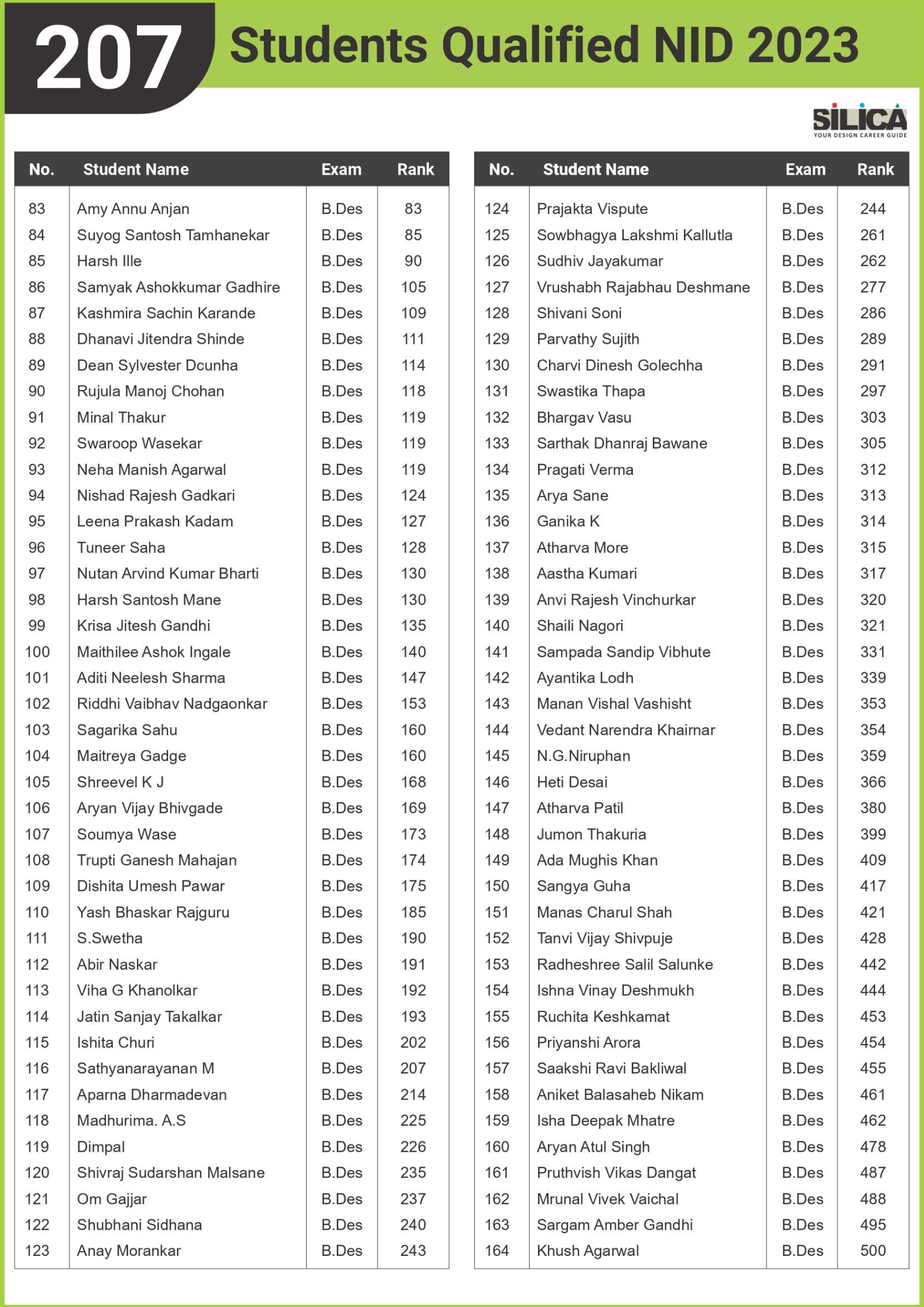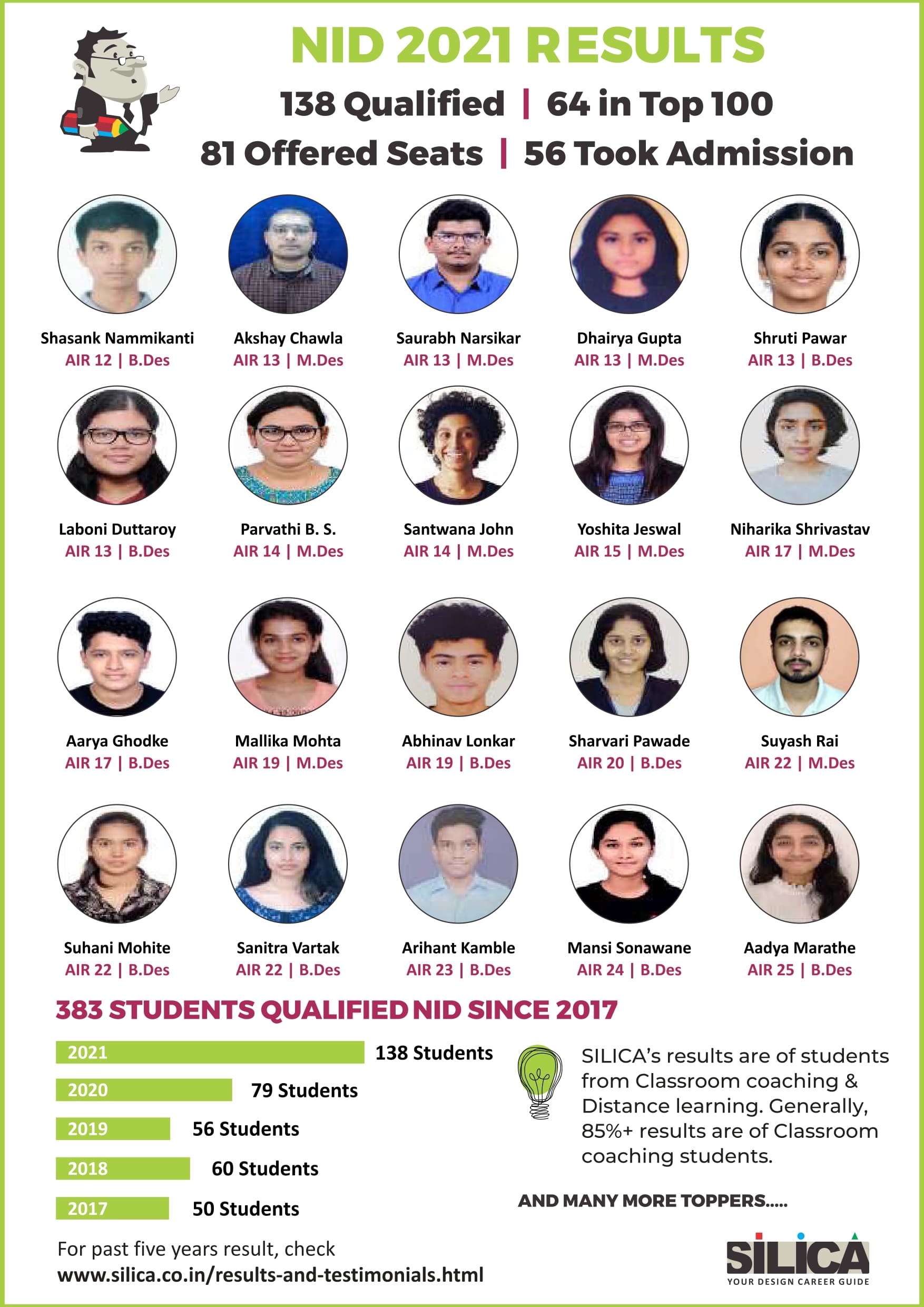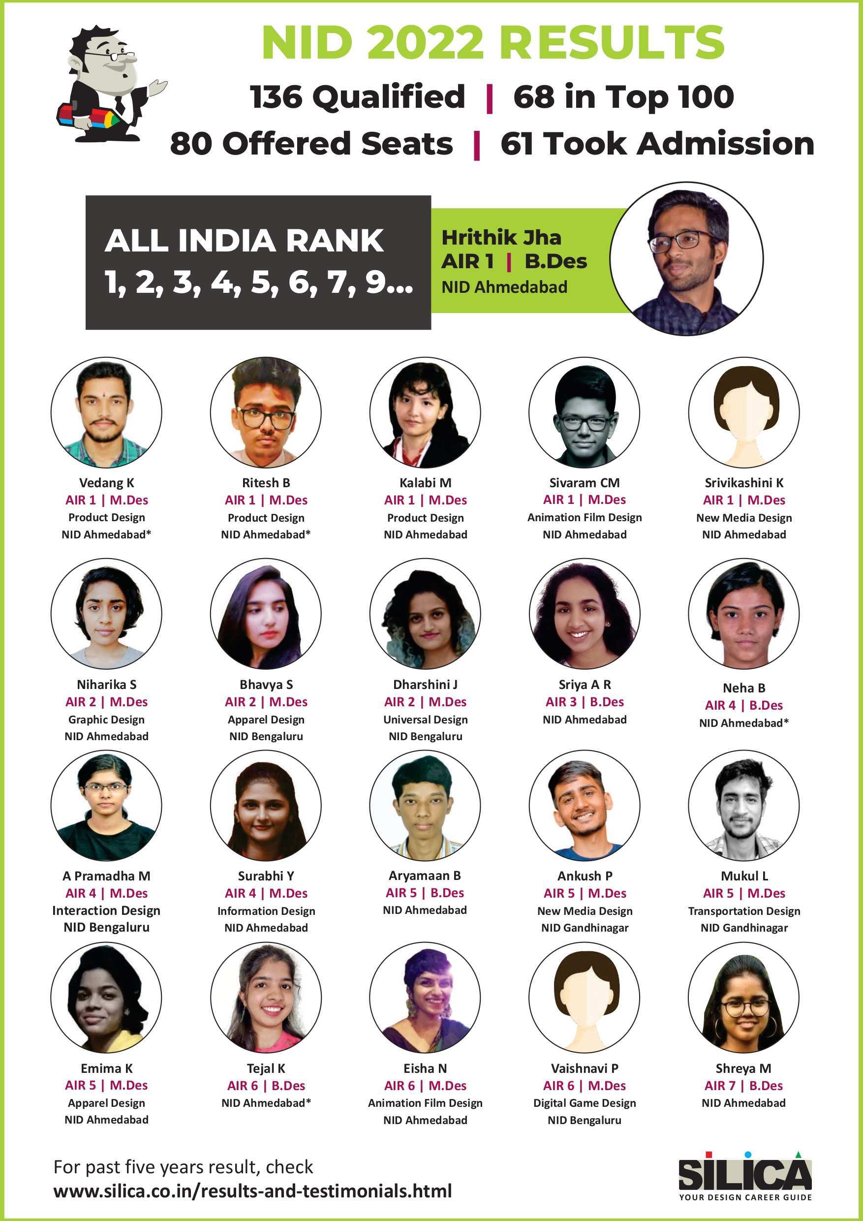"Being a student at SILICA was fun, and preparing for NID was thoroughly enjoyed." - Monsoon Das, NID AIR 13