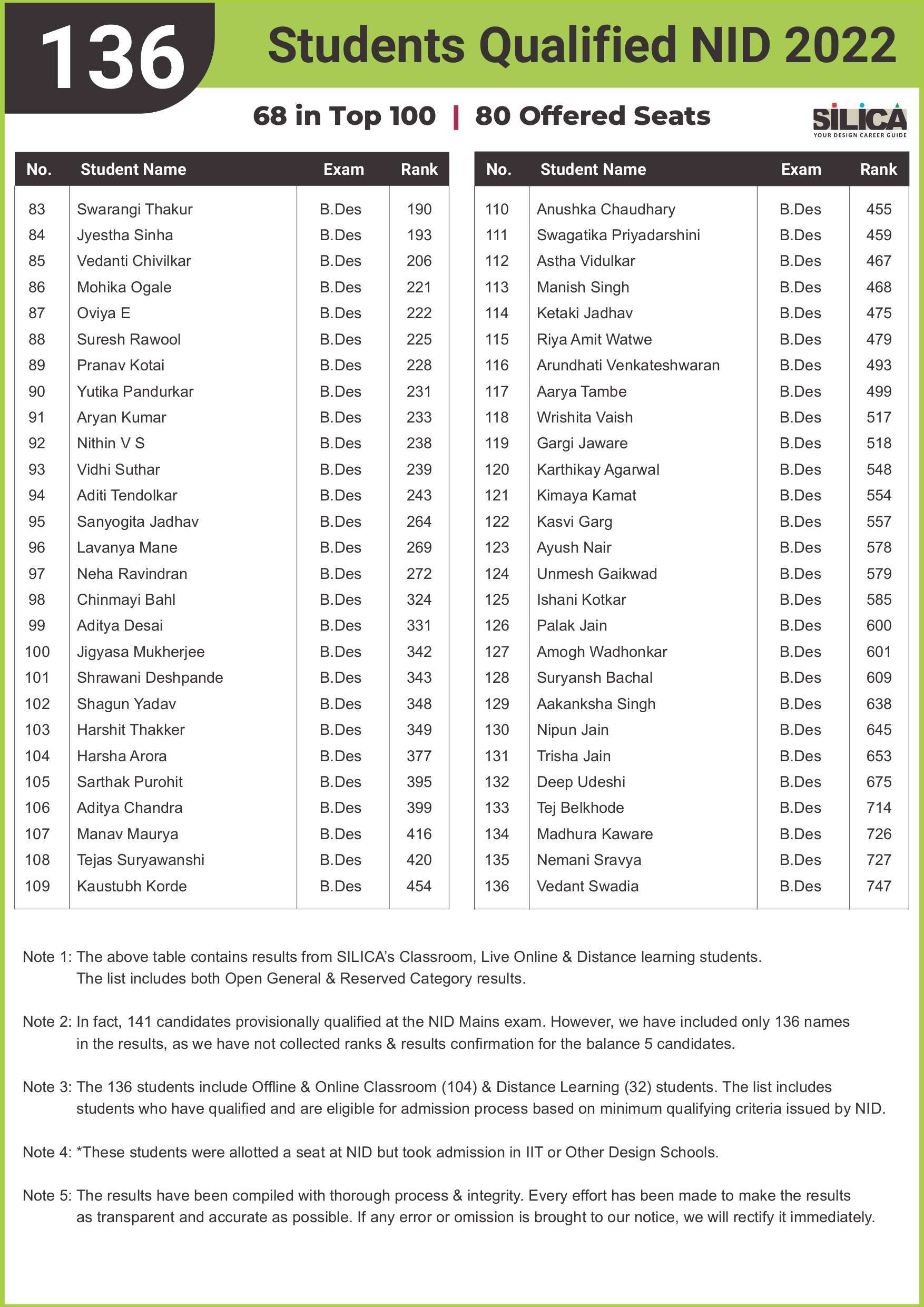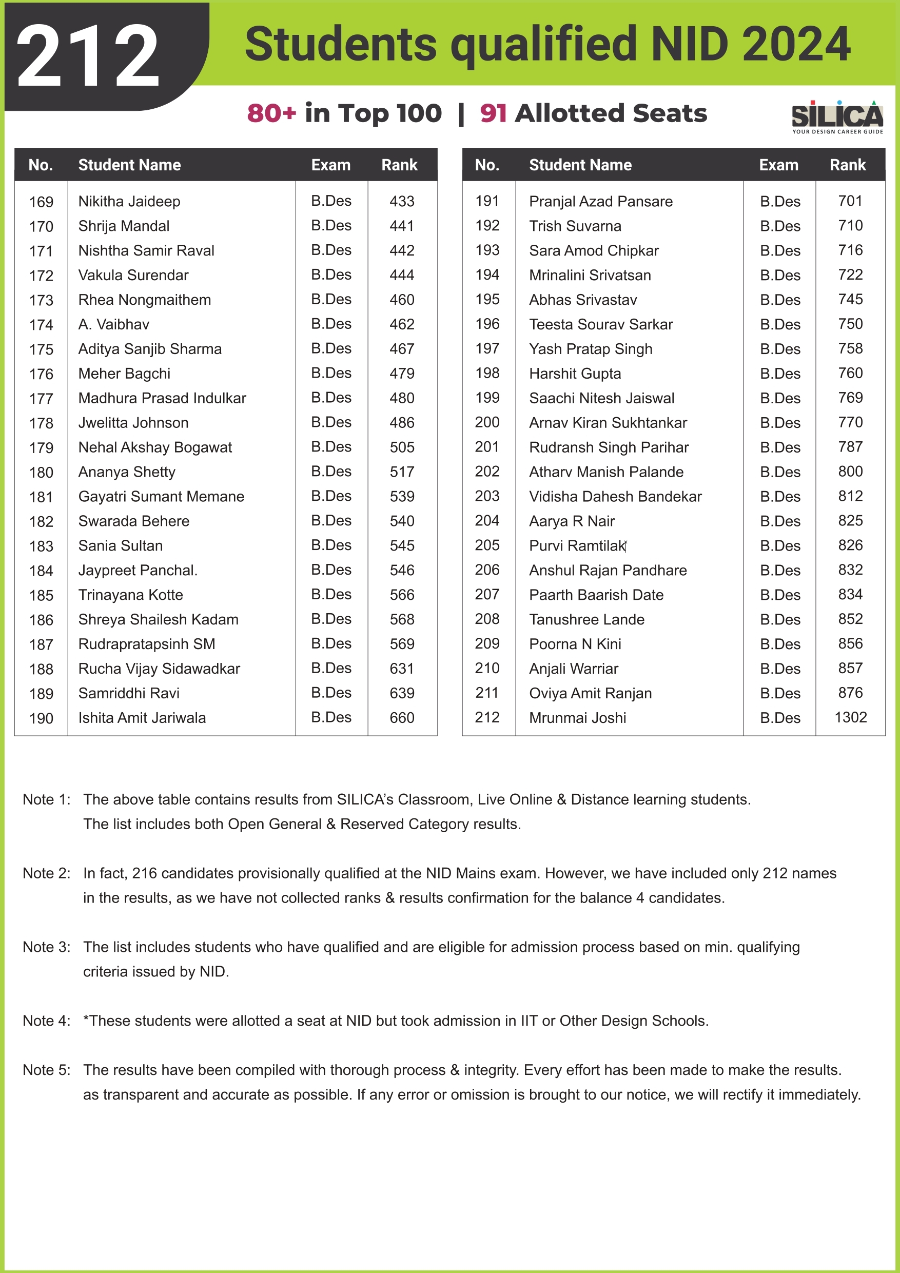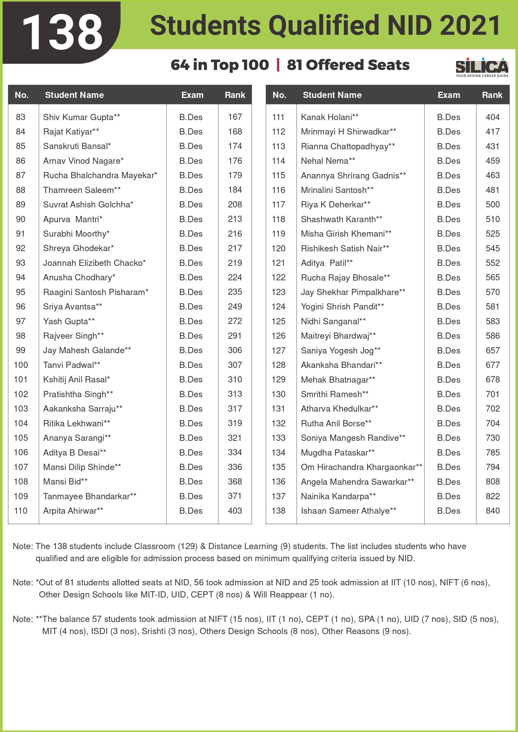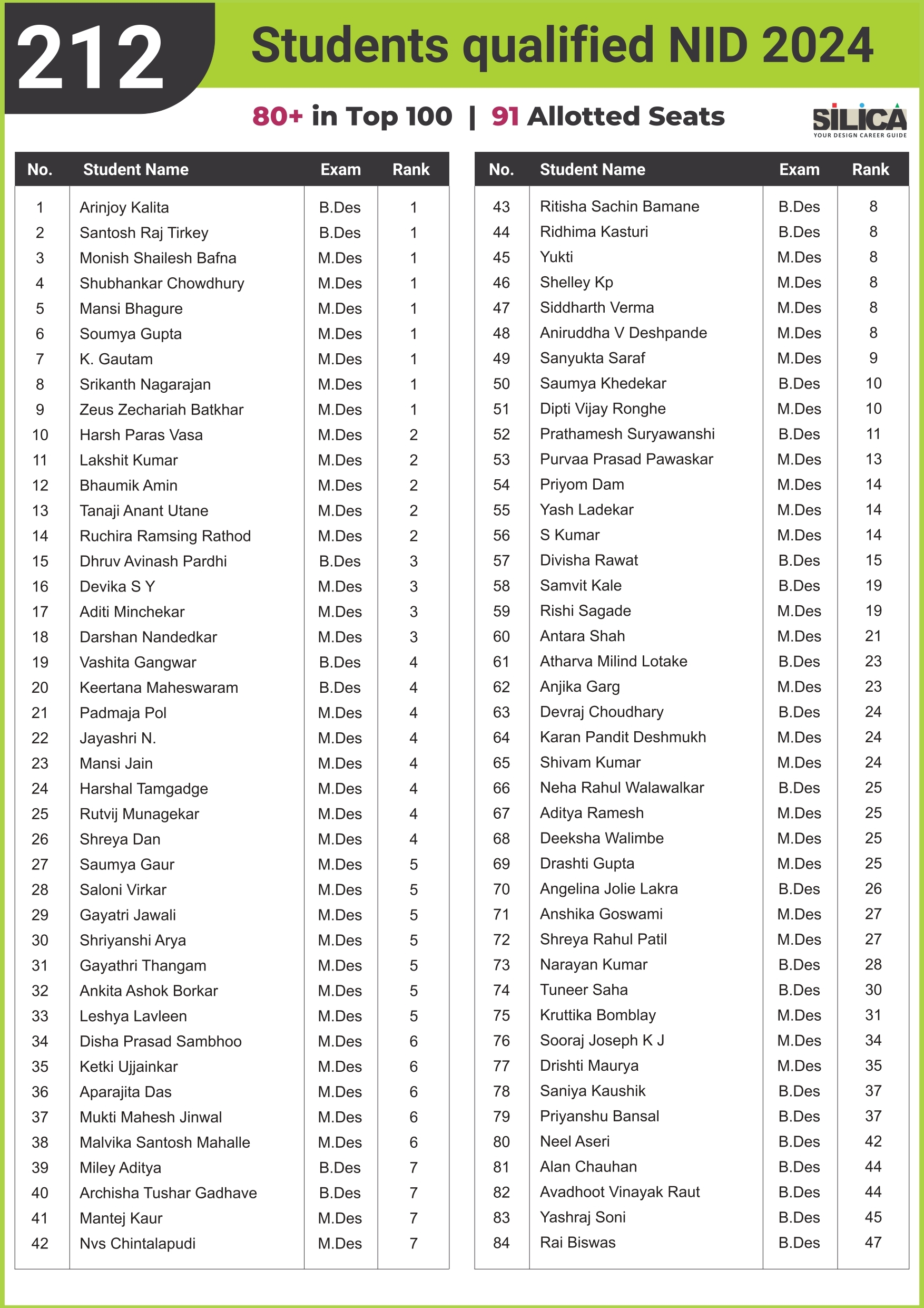 "Being a student at SILICA was fun, and preparing for NID was thoroughly enjoyed." - Monsoon Das, NID AIR 13