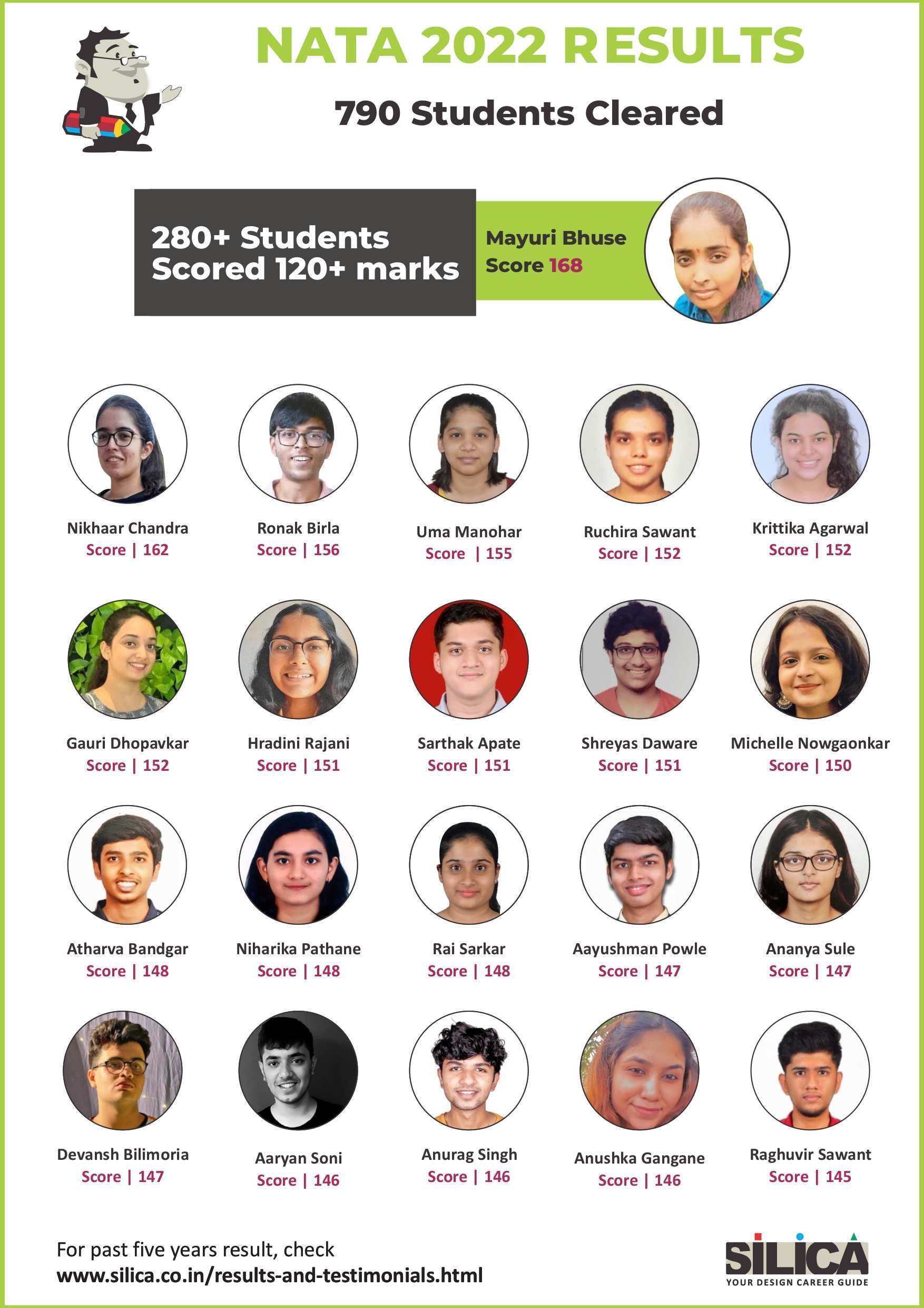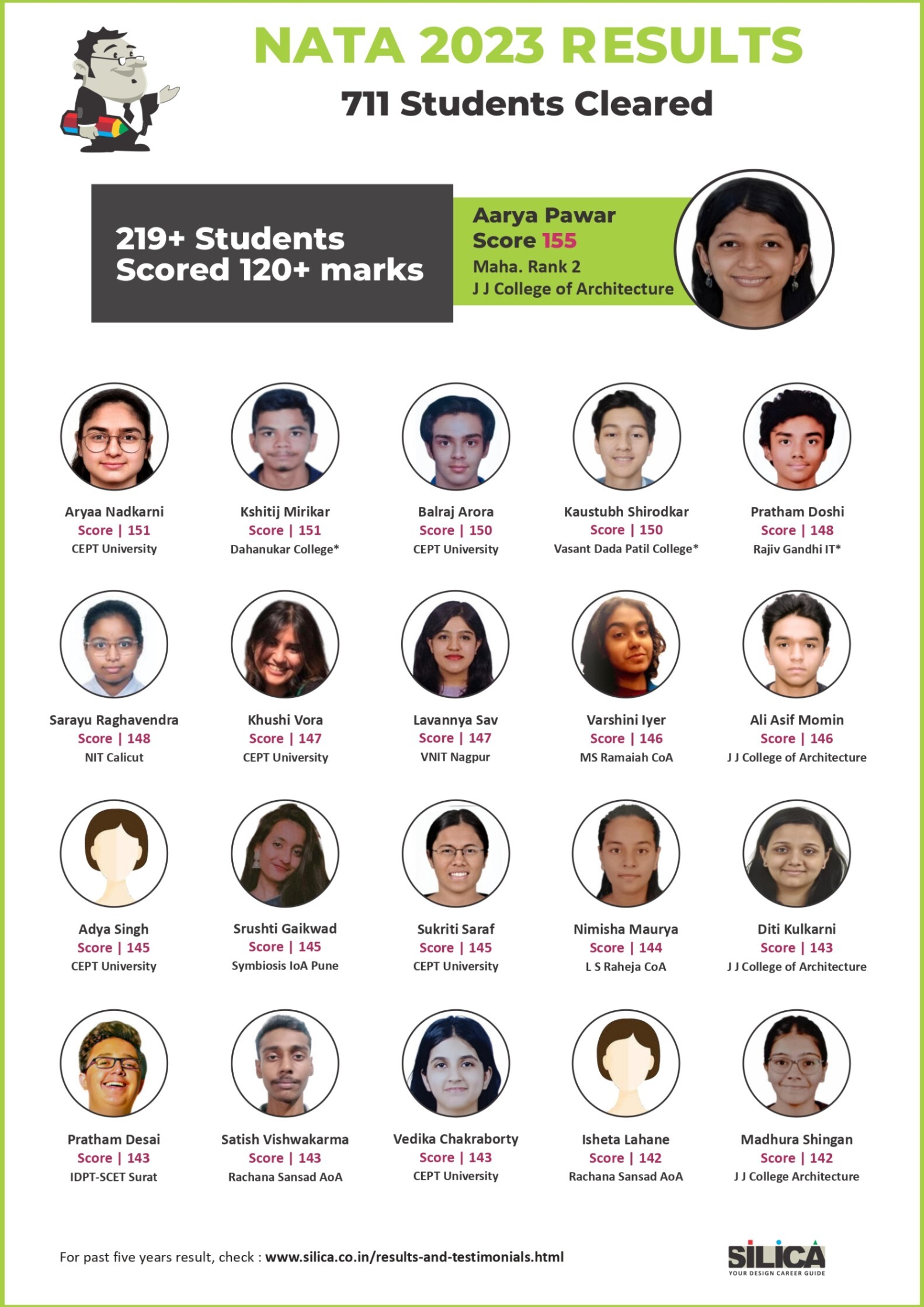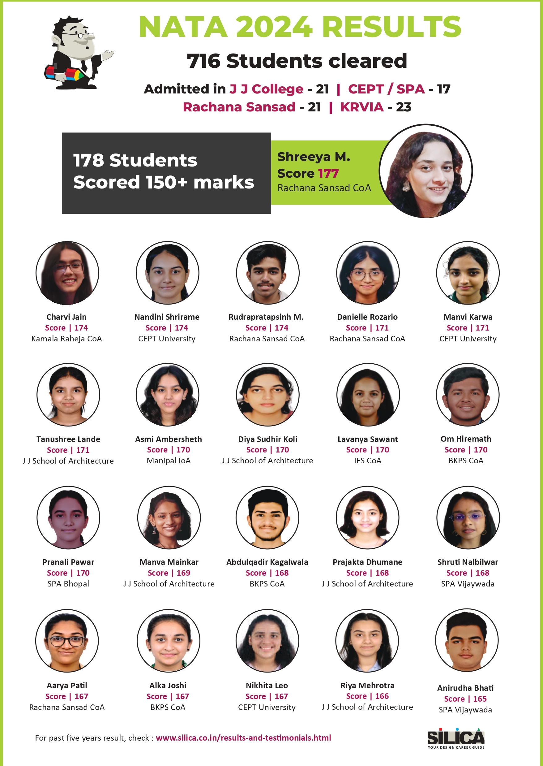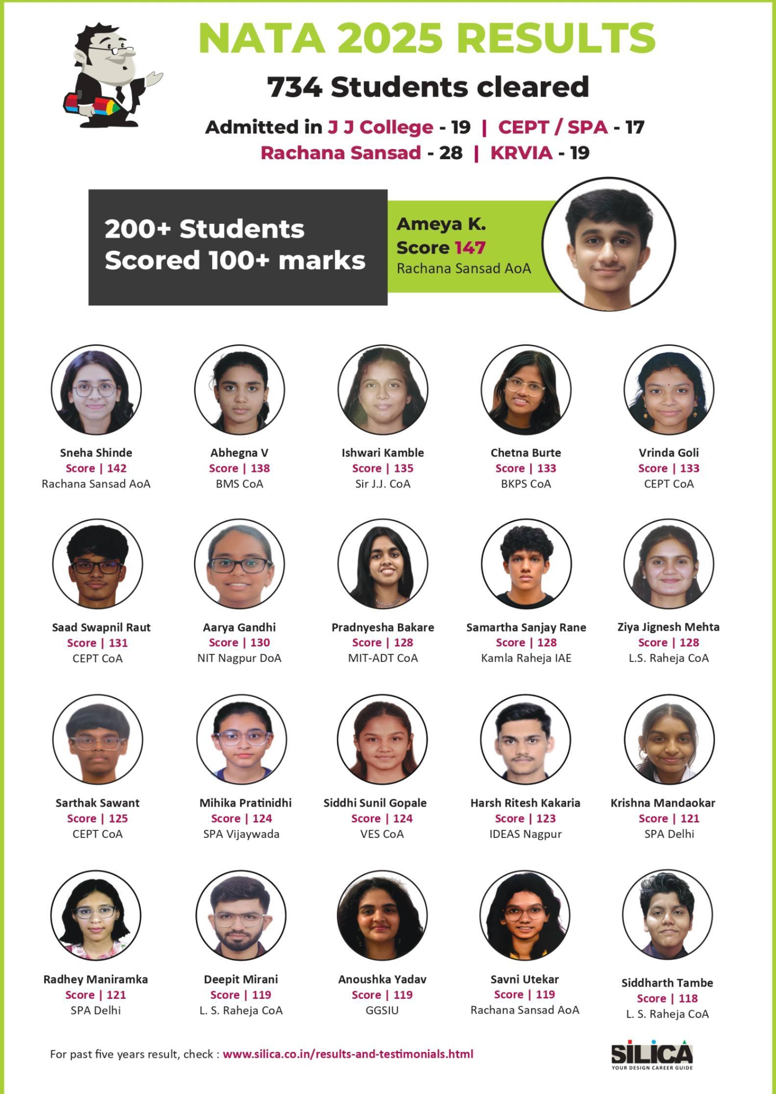 "I am thankful to SILICA for playing such a major role in my NATA Preparation" - Sanskar Khatri, NATA 146/200 Maharashtra State Rank 1