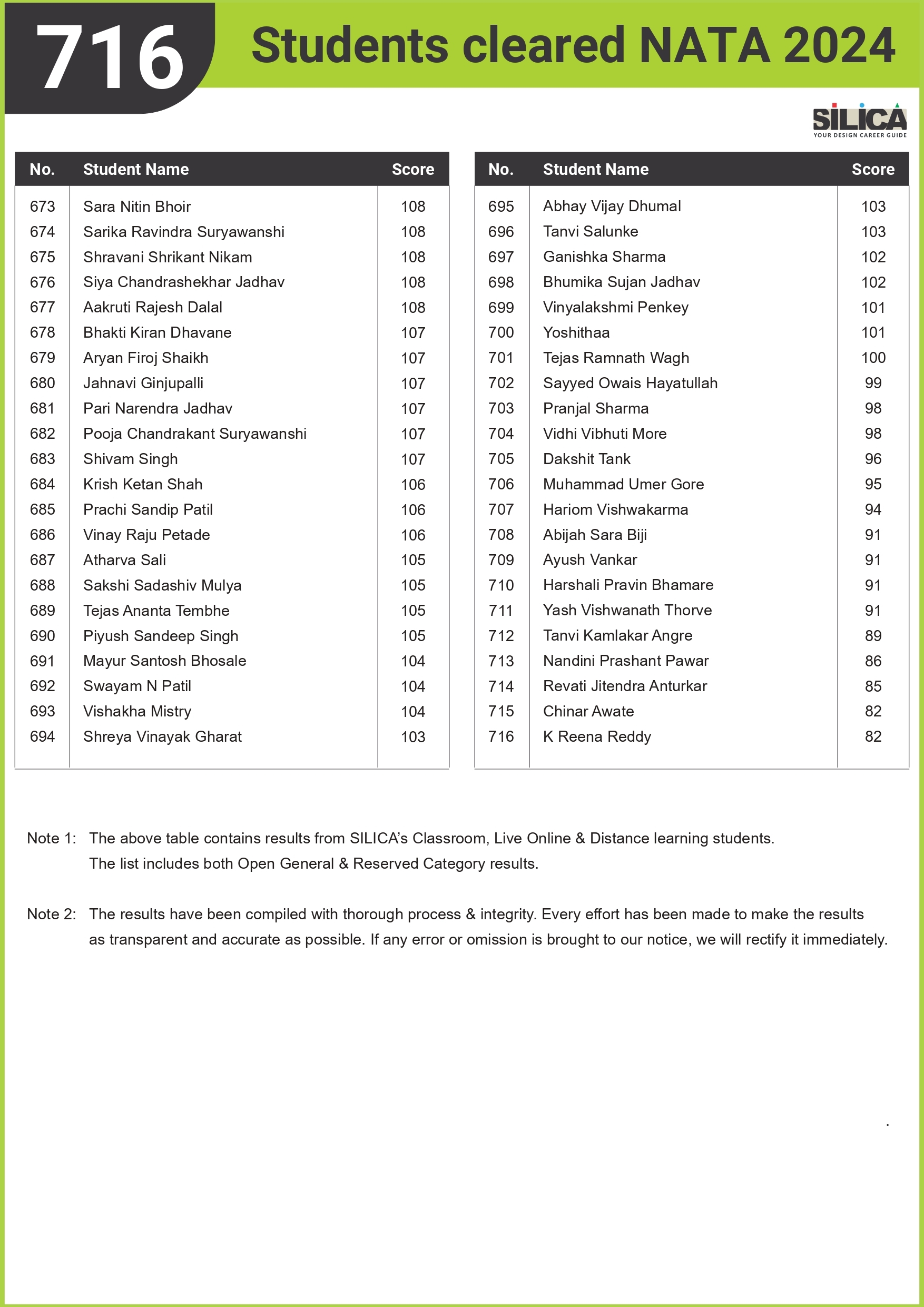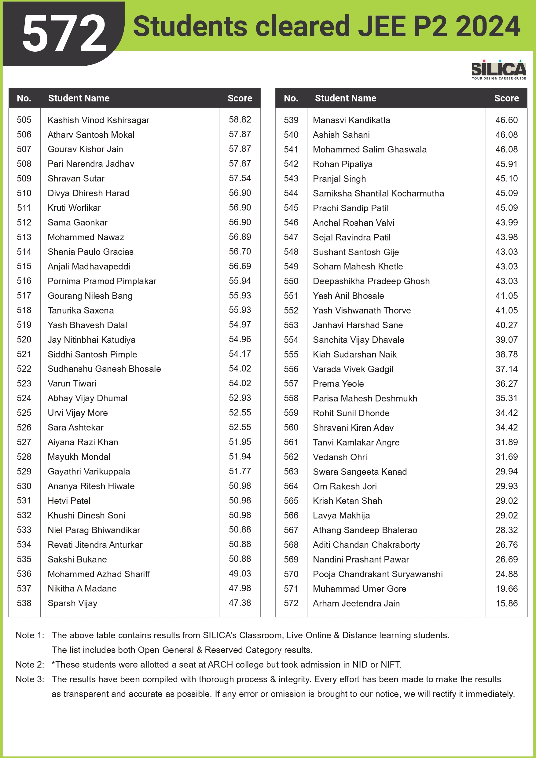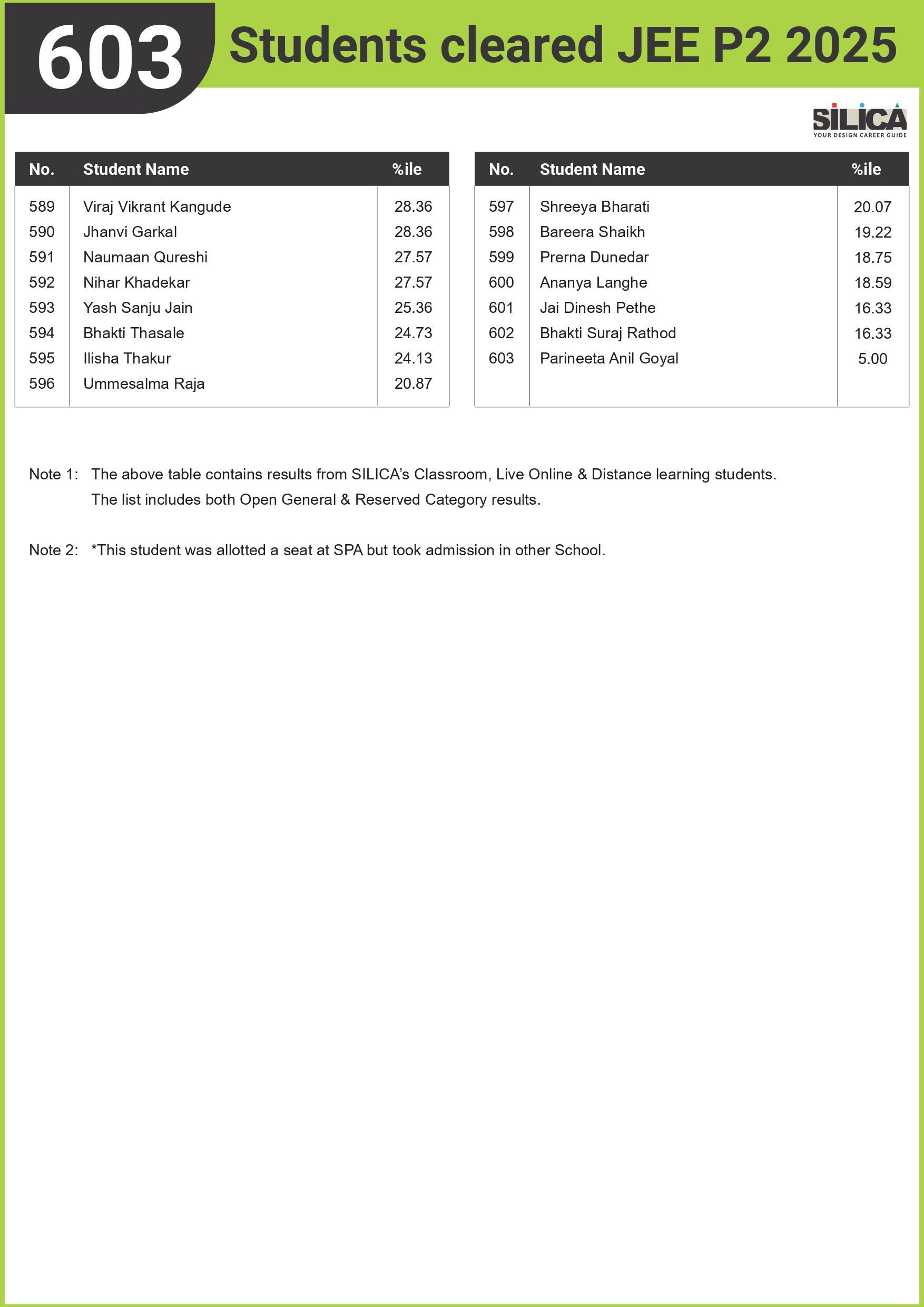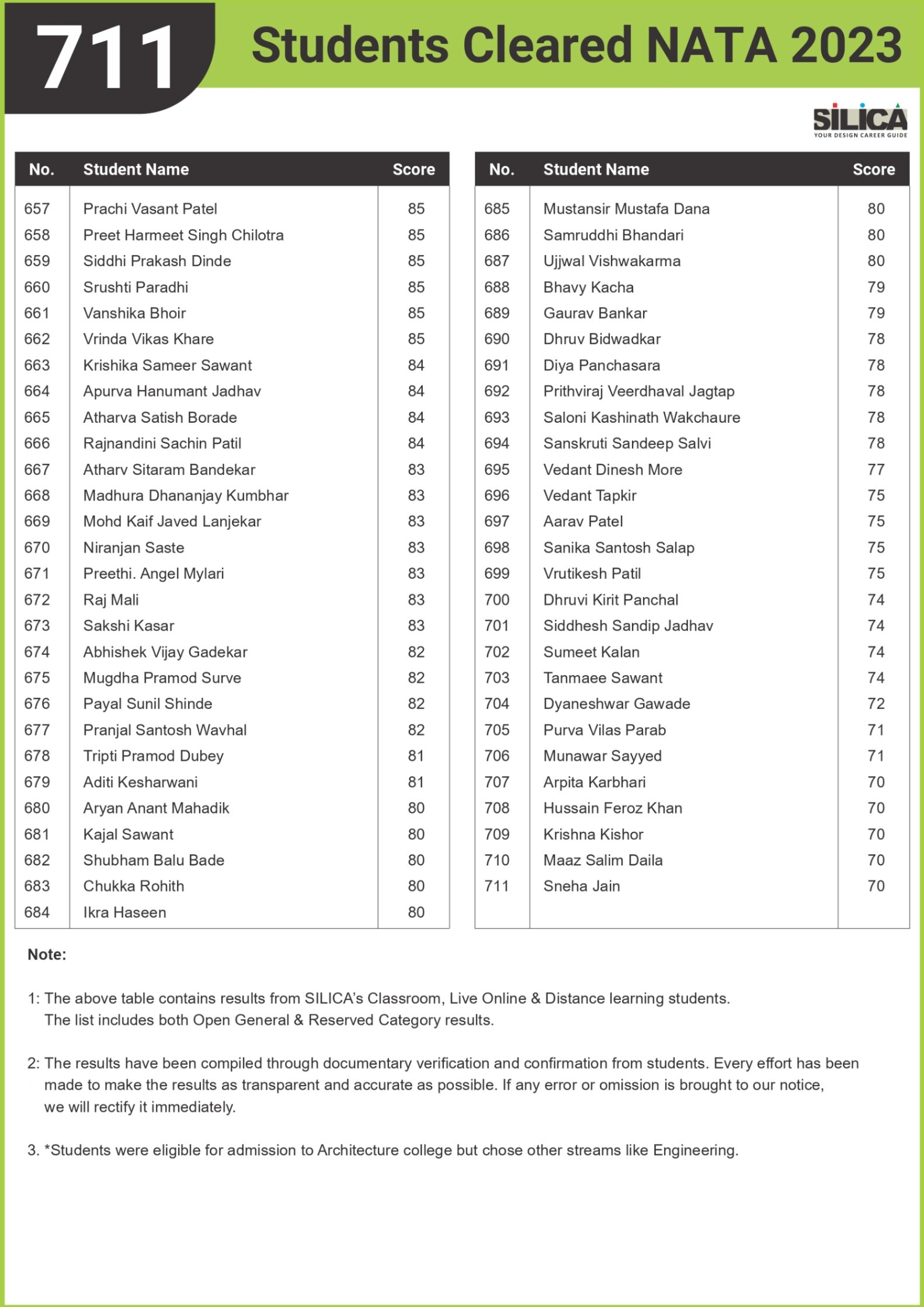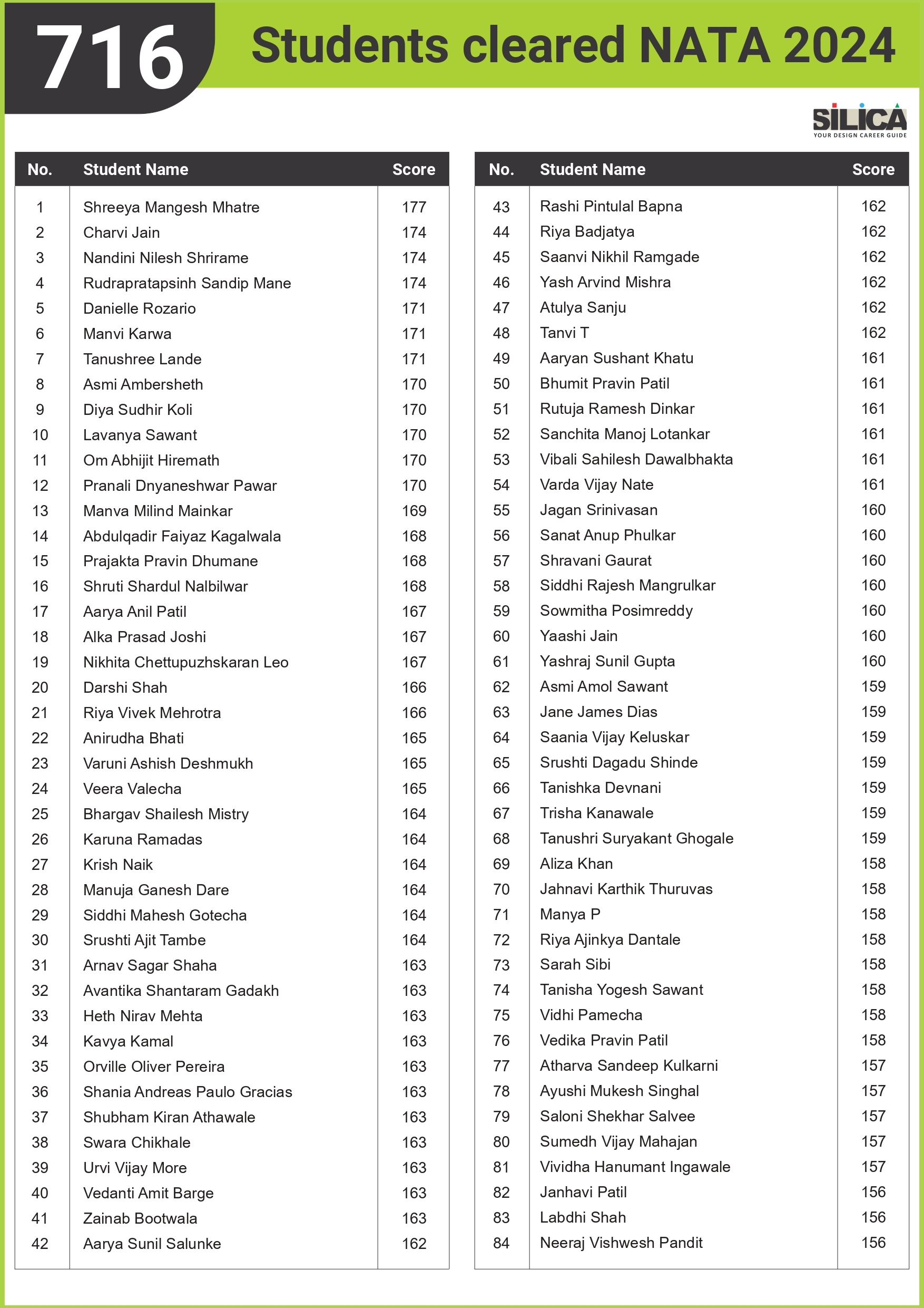 "I am thankful to SILICA for playing such a major role in my NATA Preparation" - Sanskar Khatri, NATA 146/200 Maharashtra State Rank 1