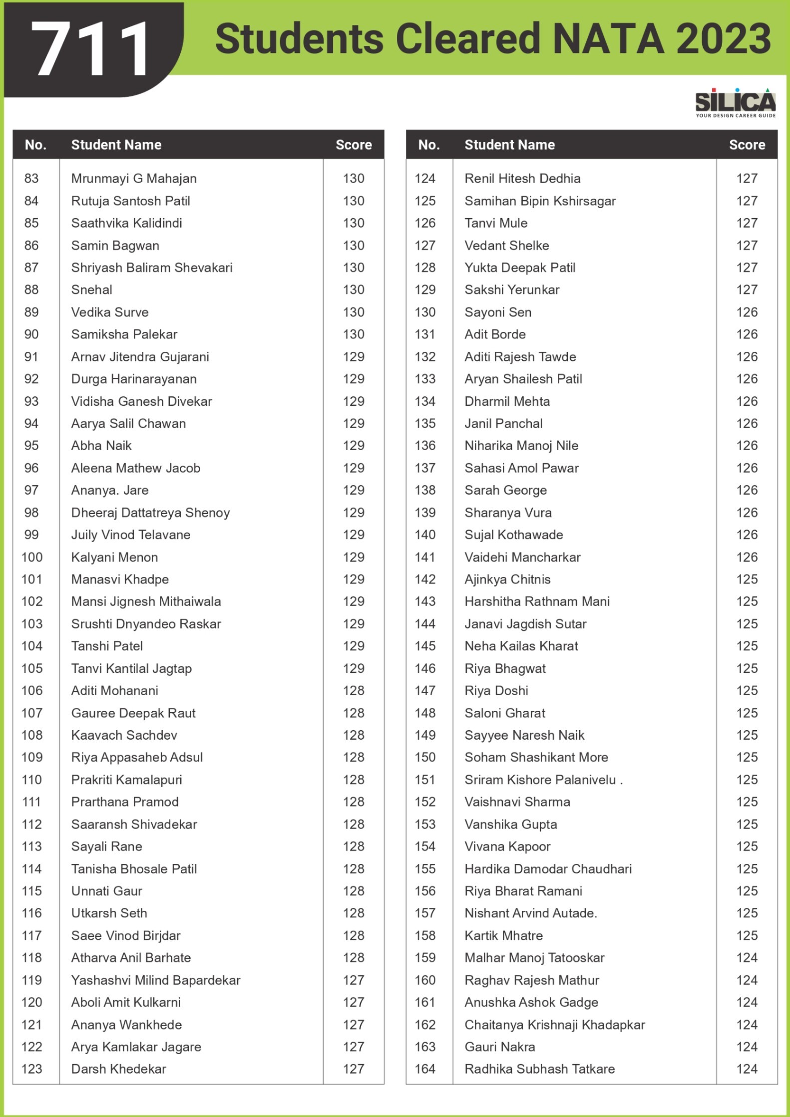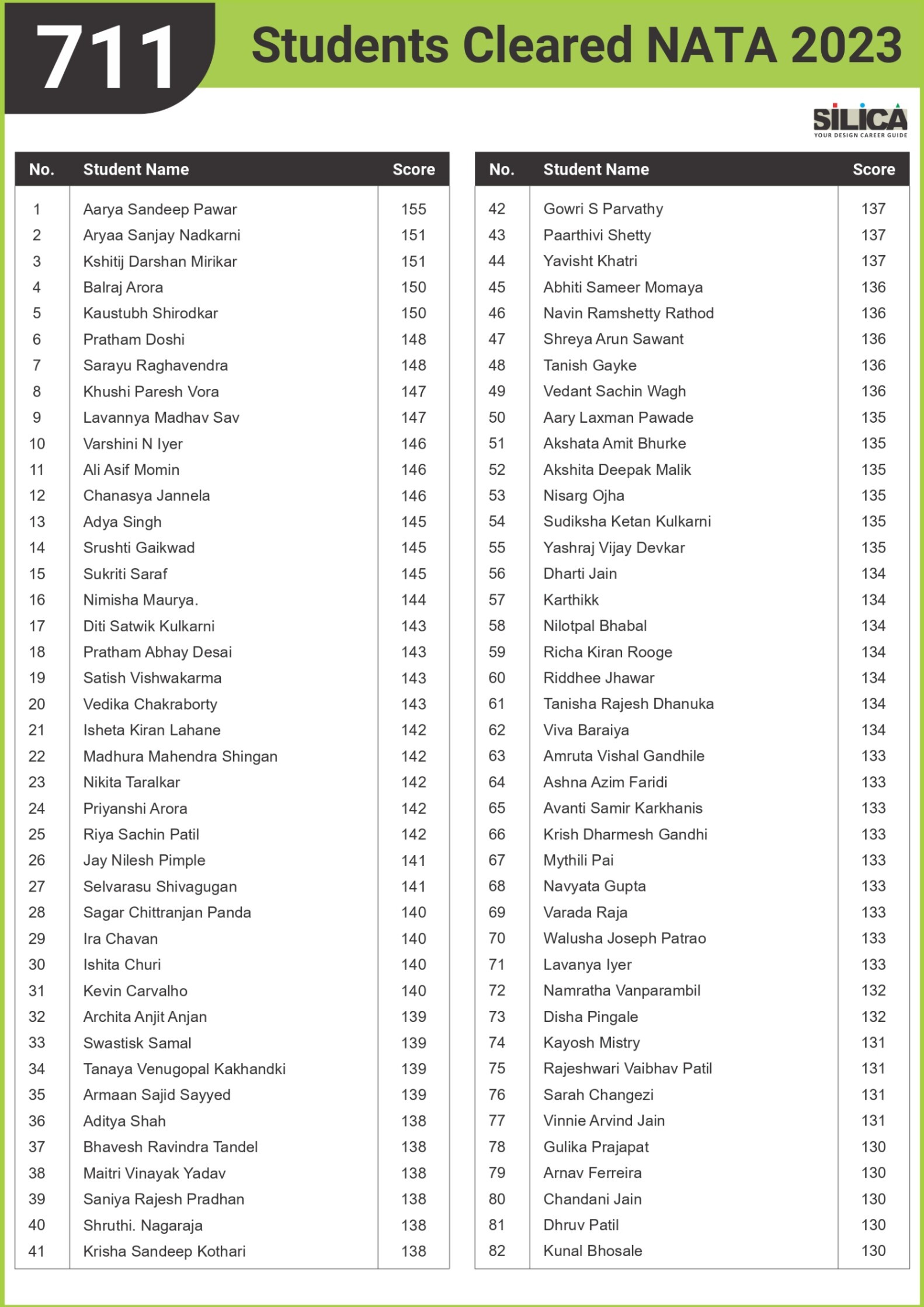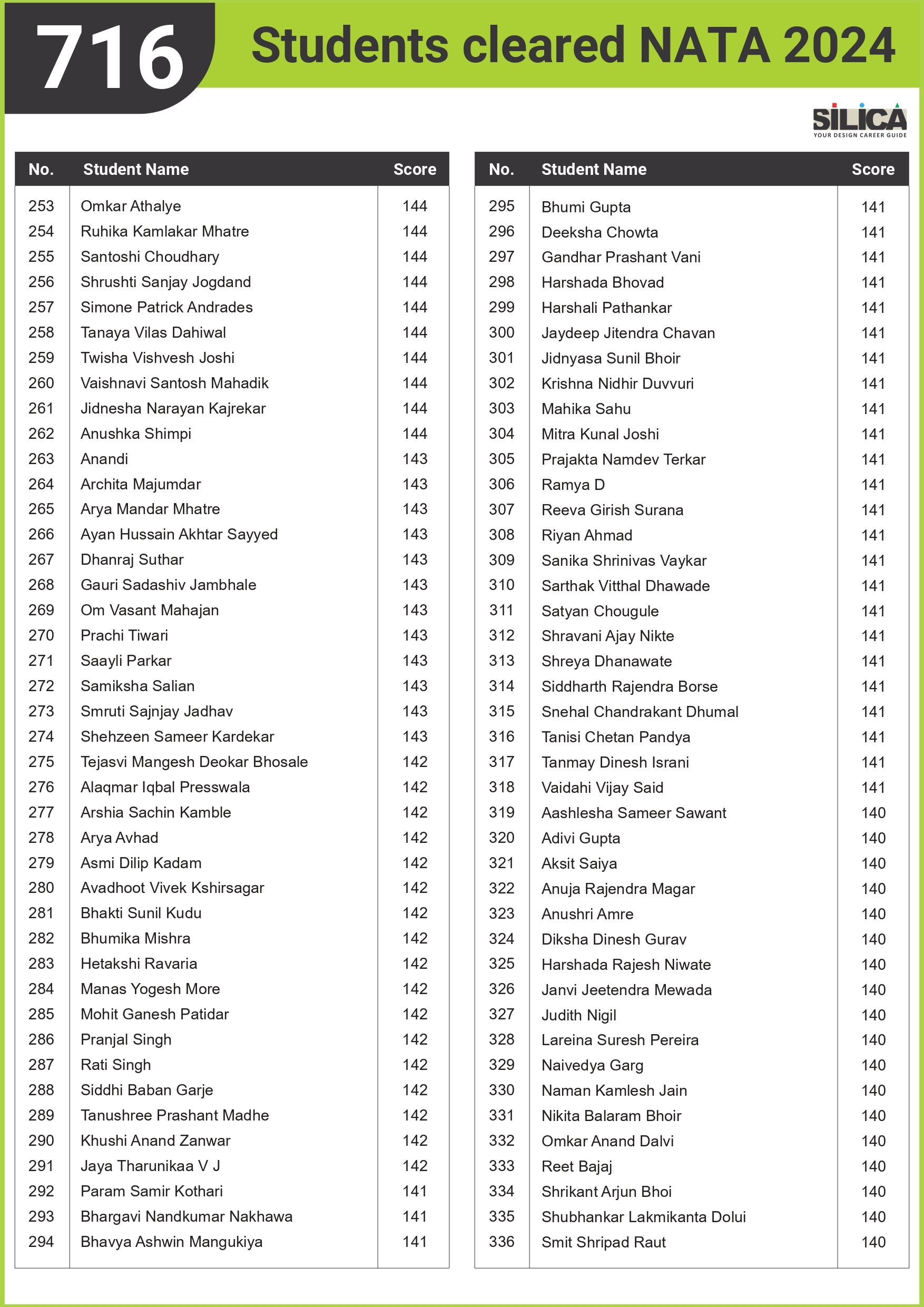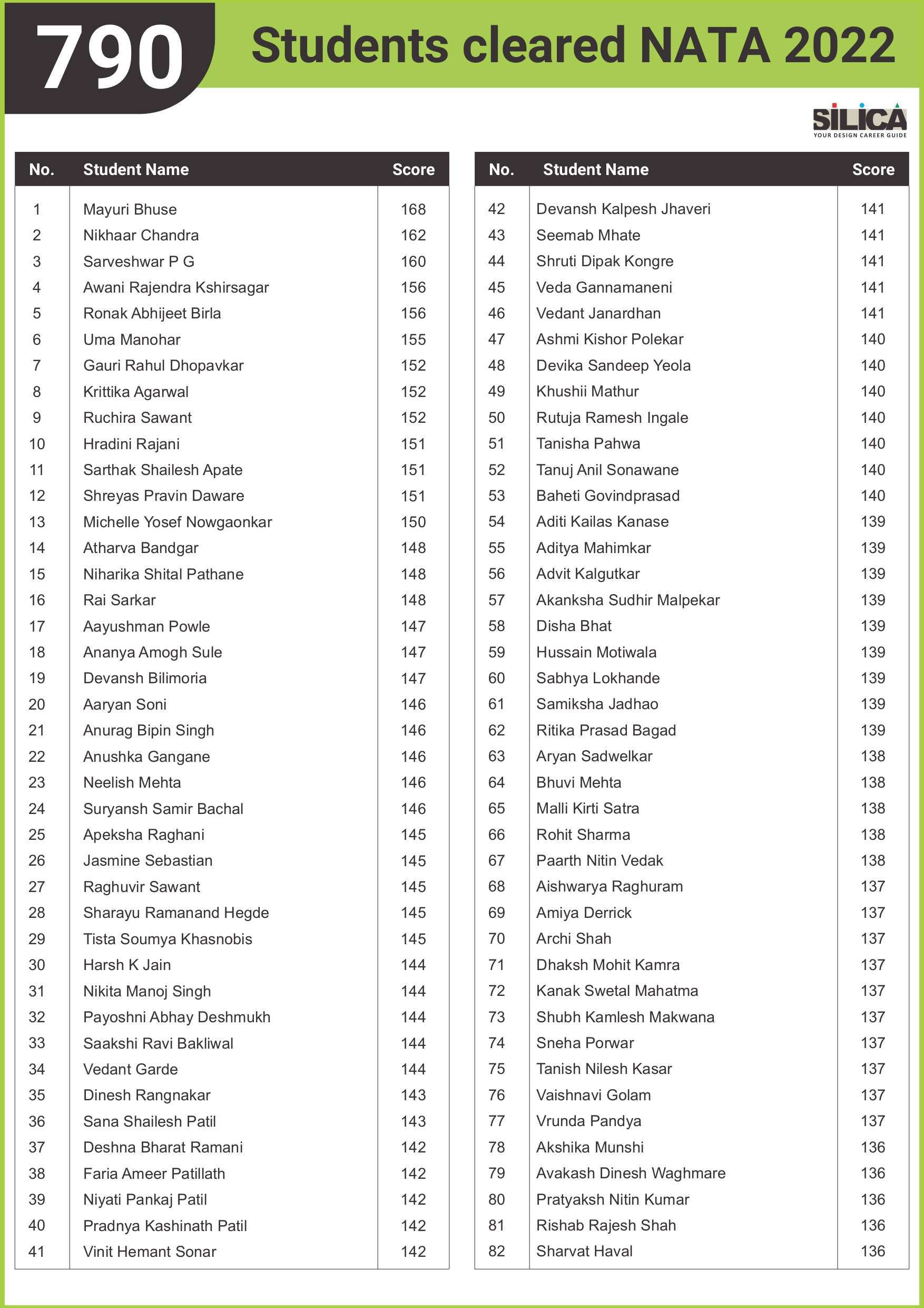 "I could not have scored 140 without SILICA’s guidance." - Niharika Pathane, NATA | 140