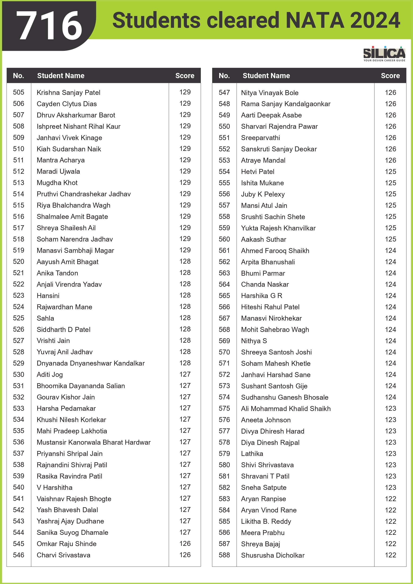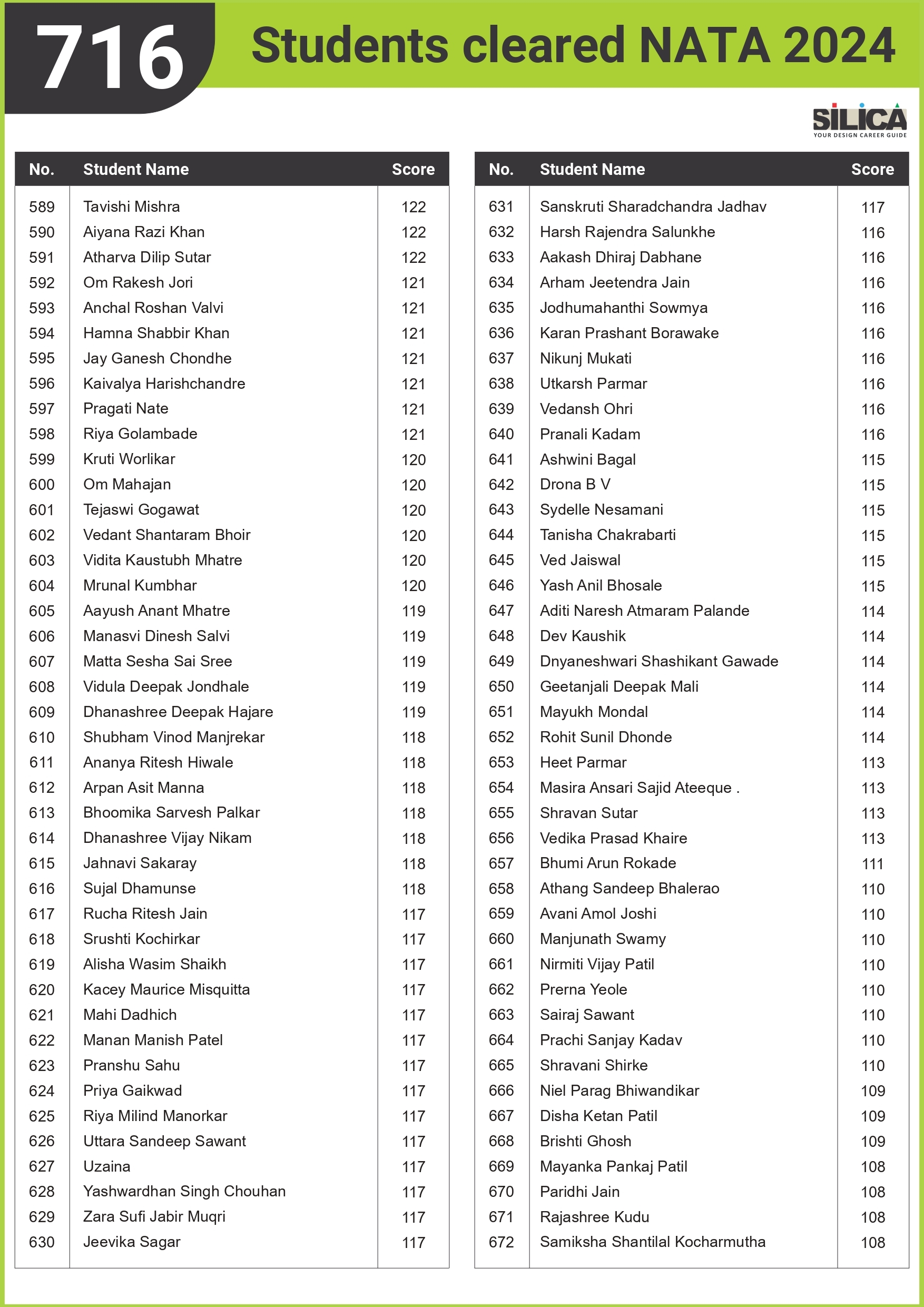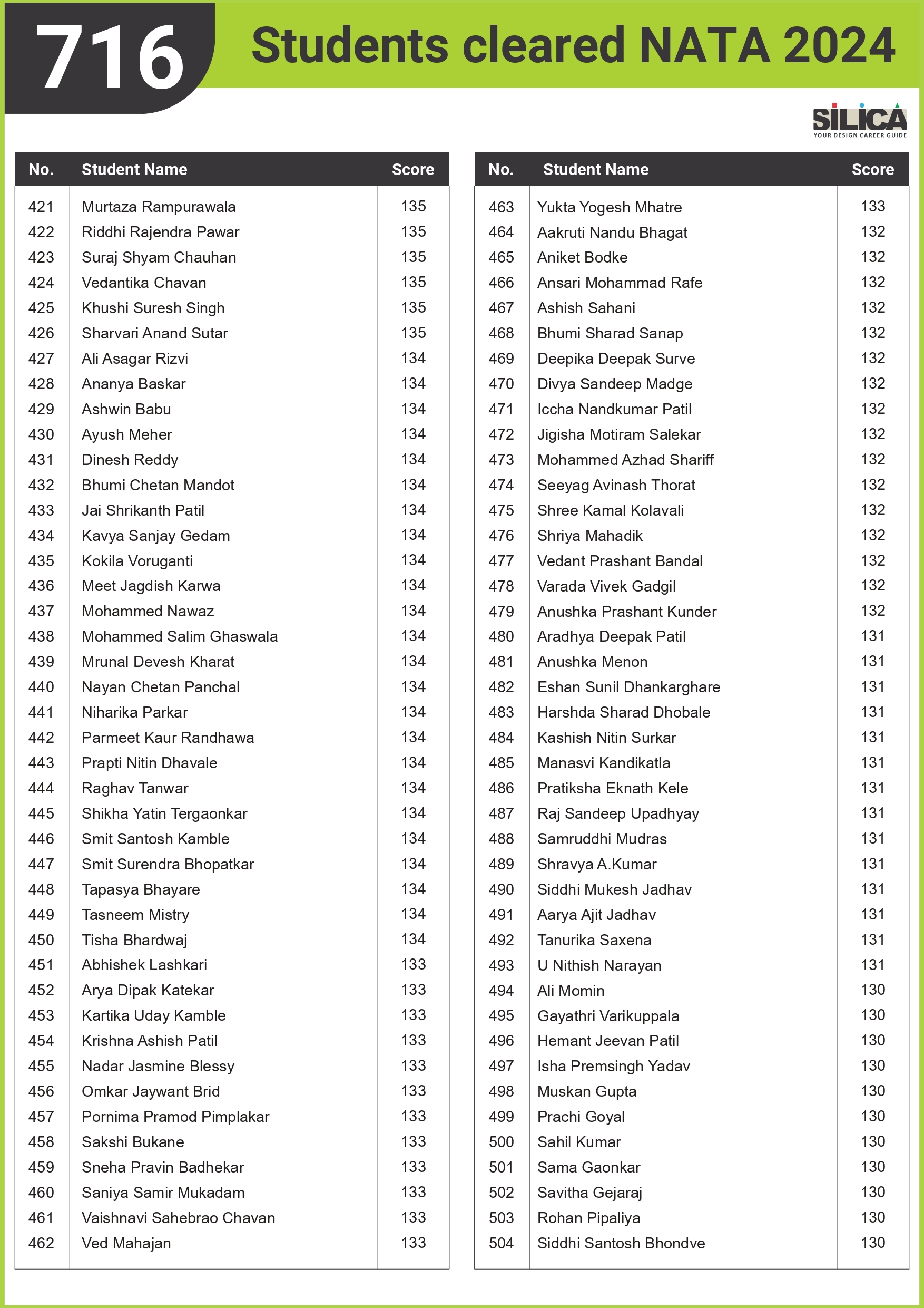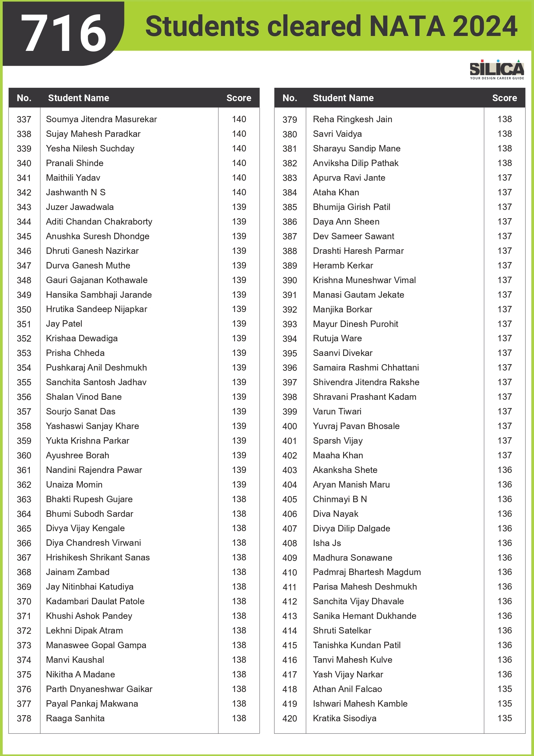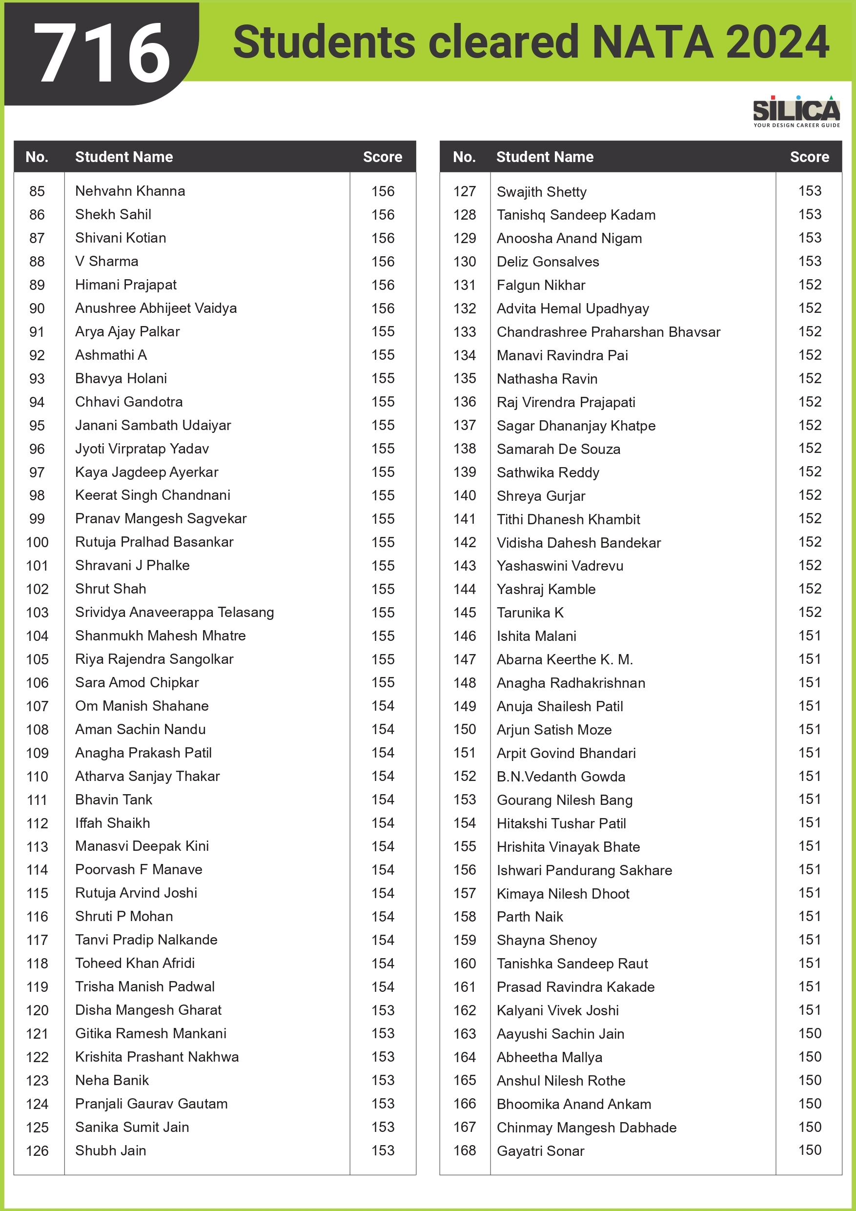 "I could not have scored 140 without SILICA’s guidance." - Niharika Pathane, NATA | 140