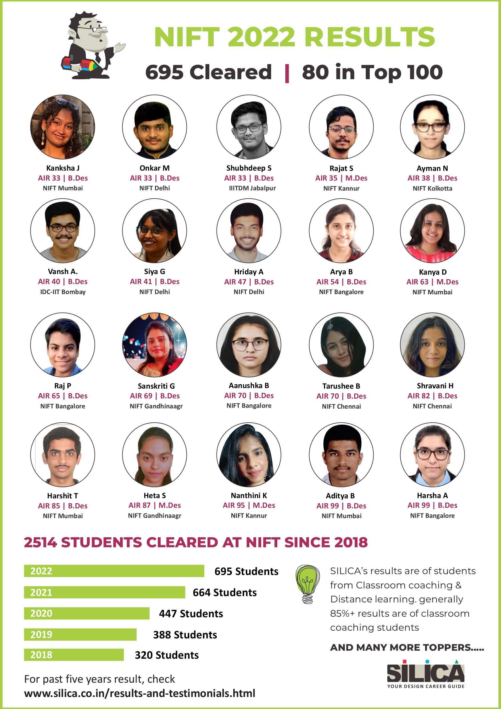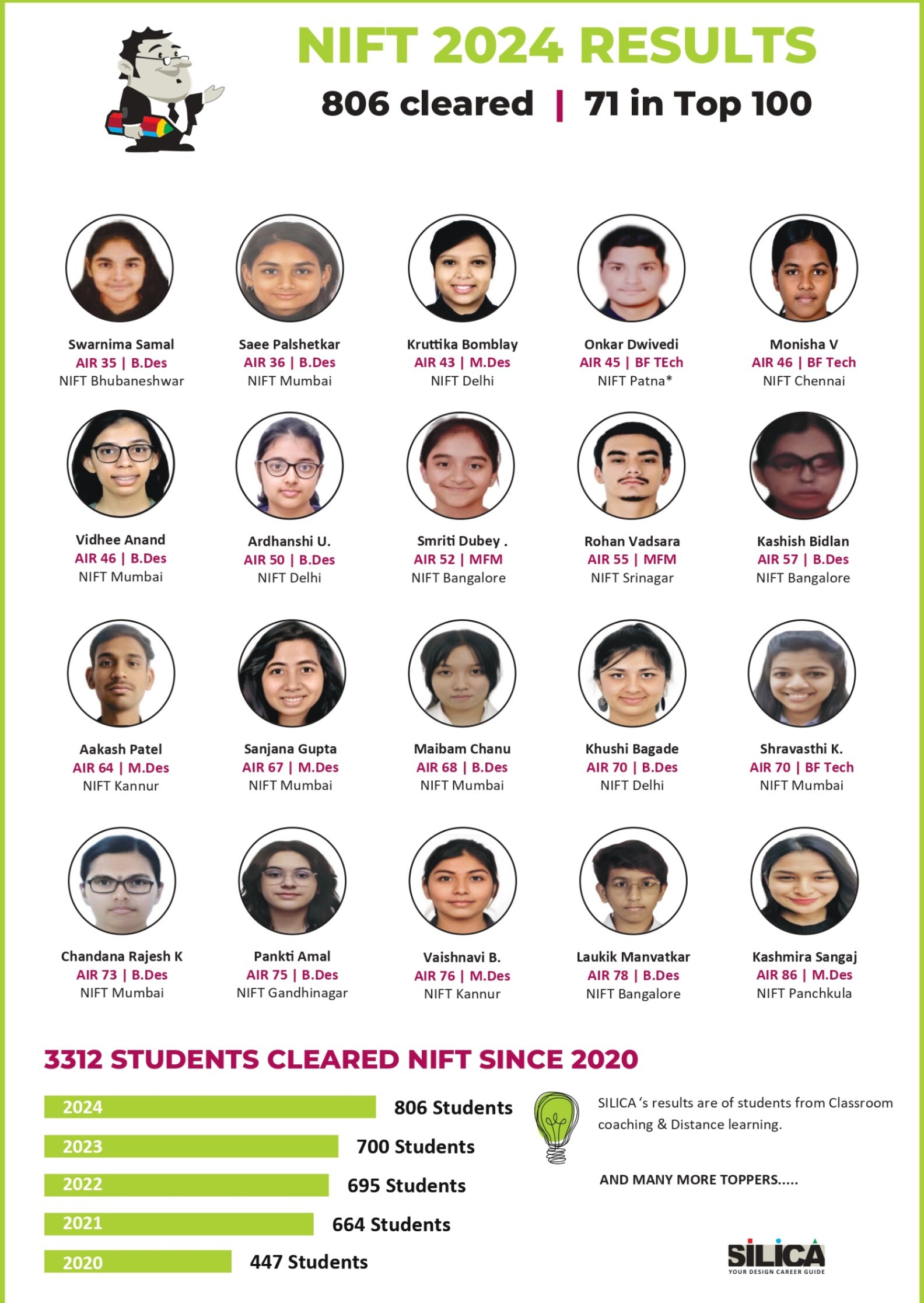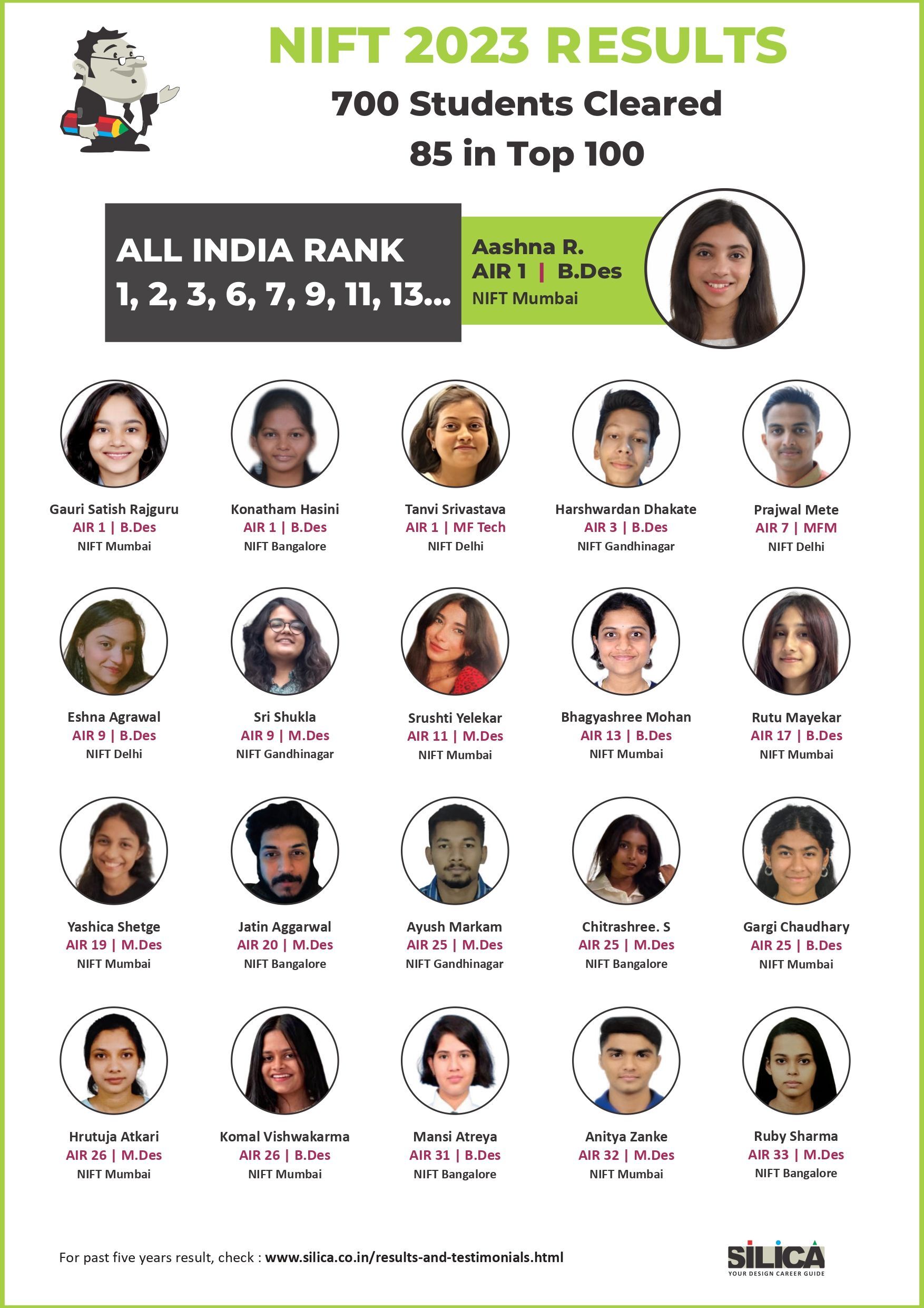 "SILICA groomed me to reach my goal with excellent faculty, doubt solving sessions, and workshops." - Charachit, NIFT AIR 10