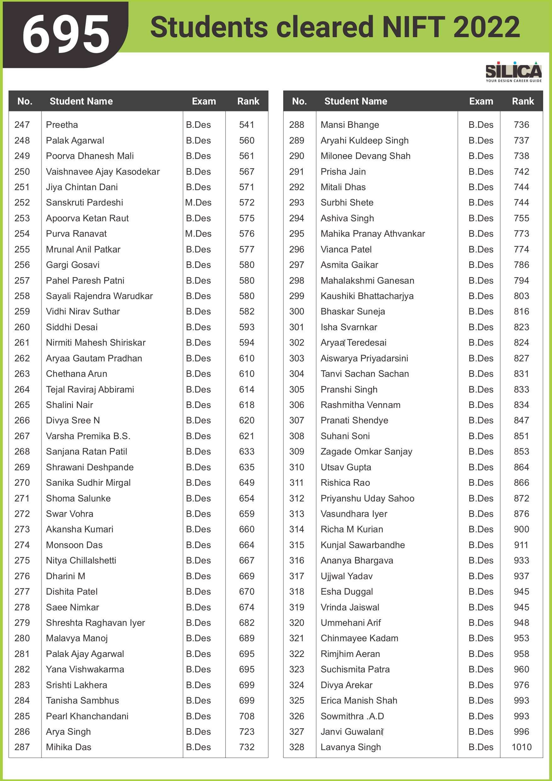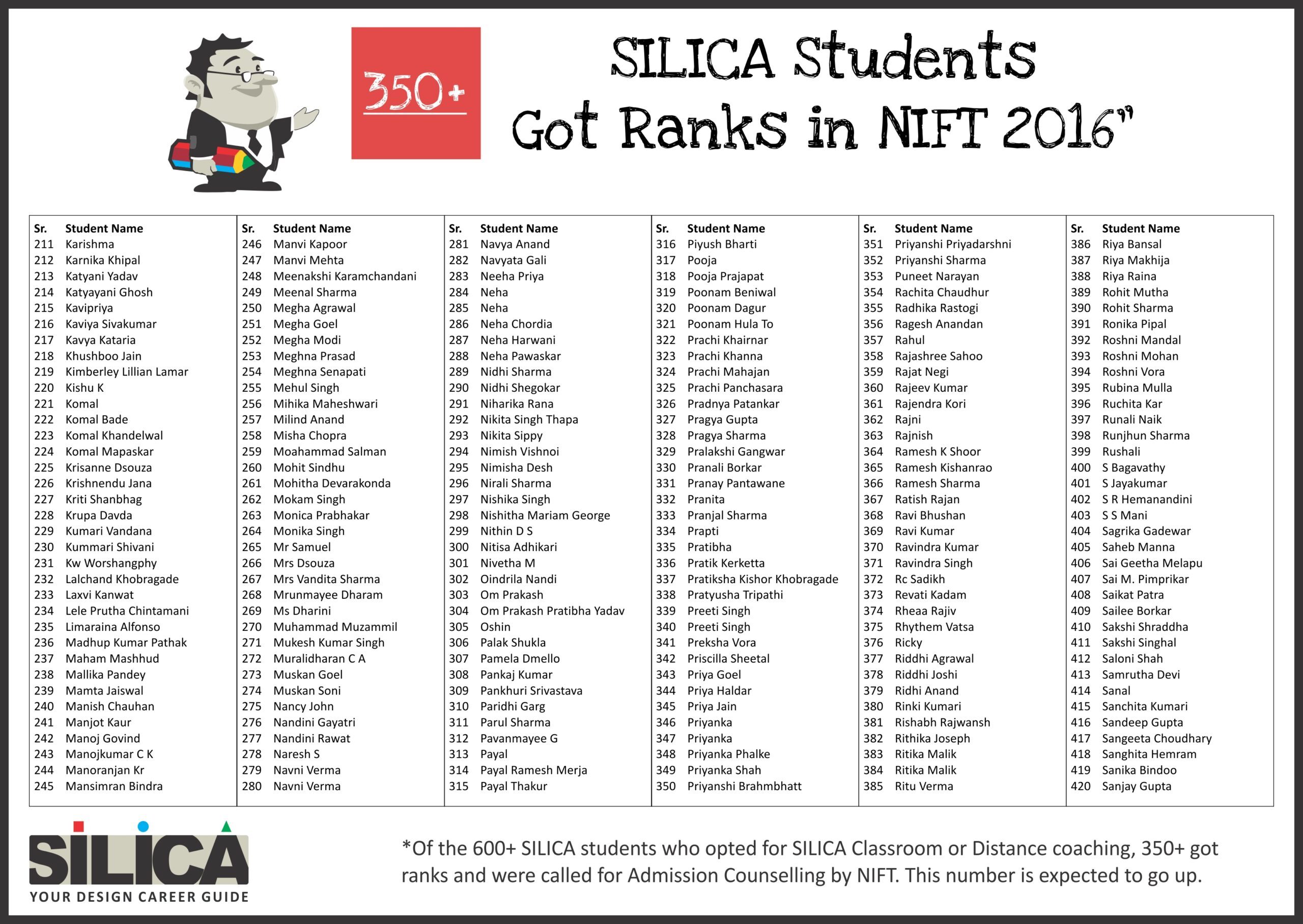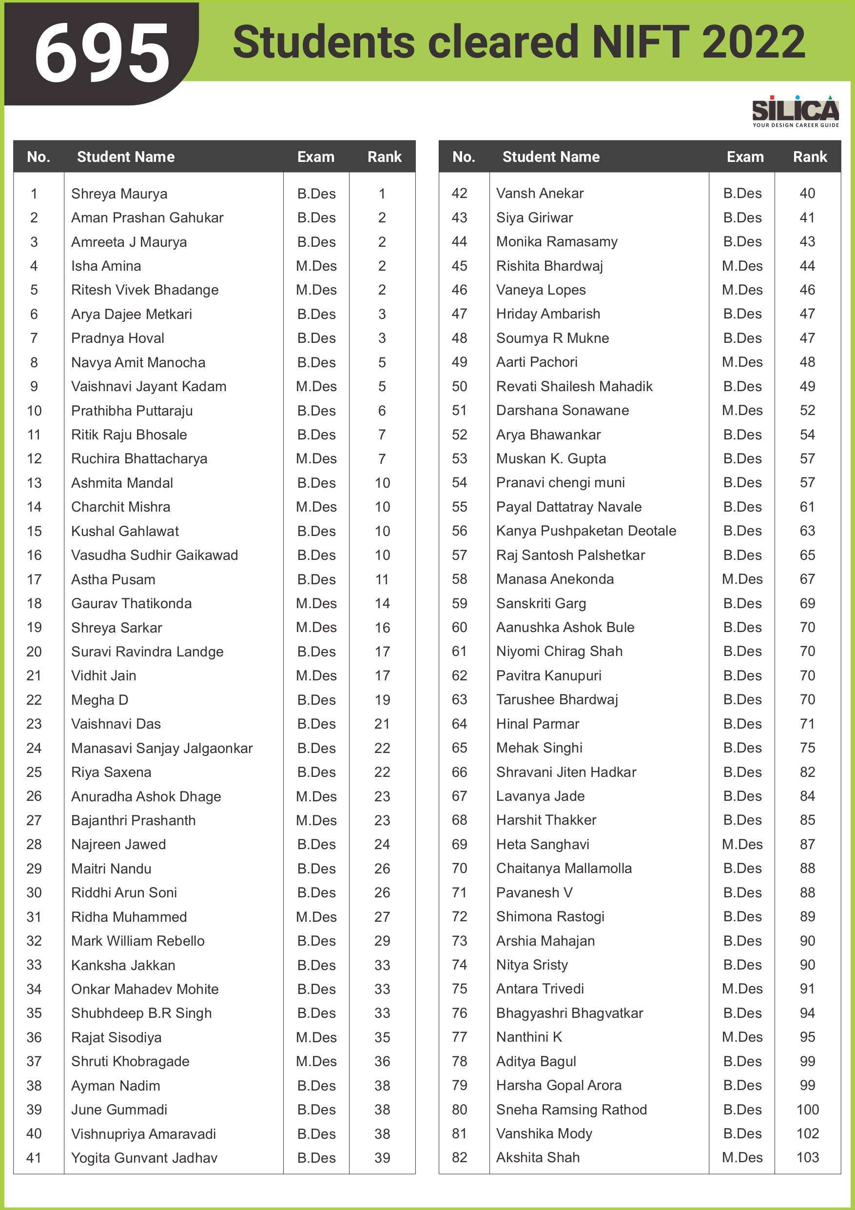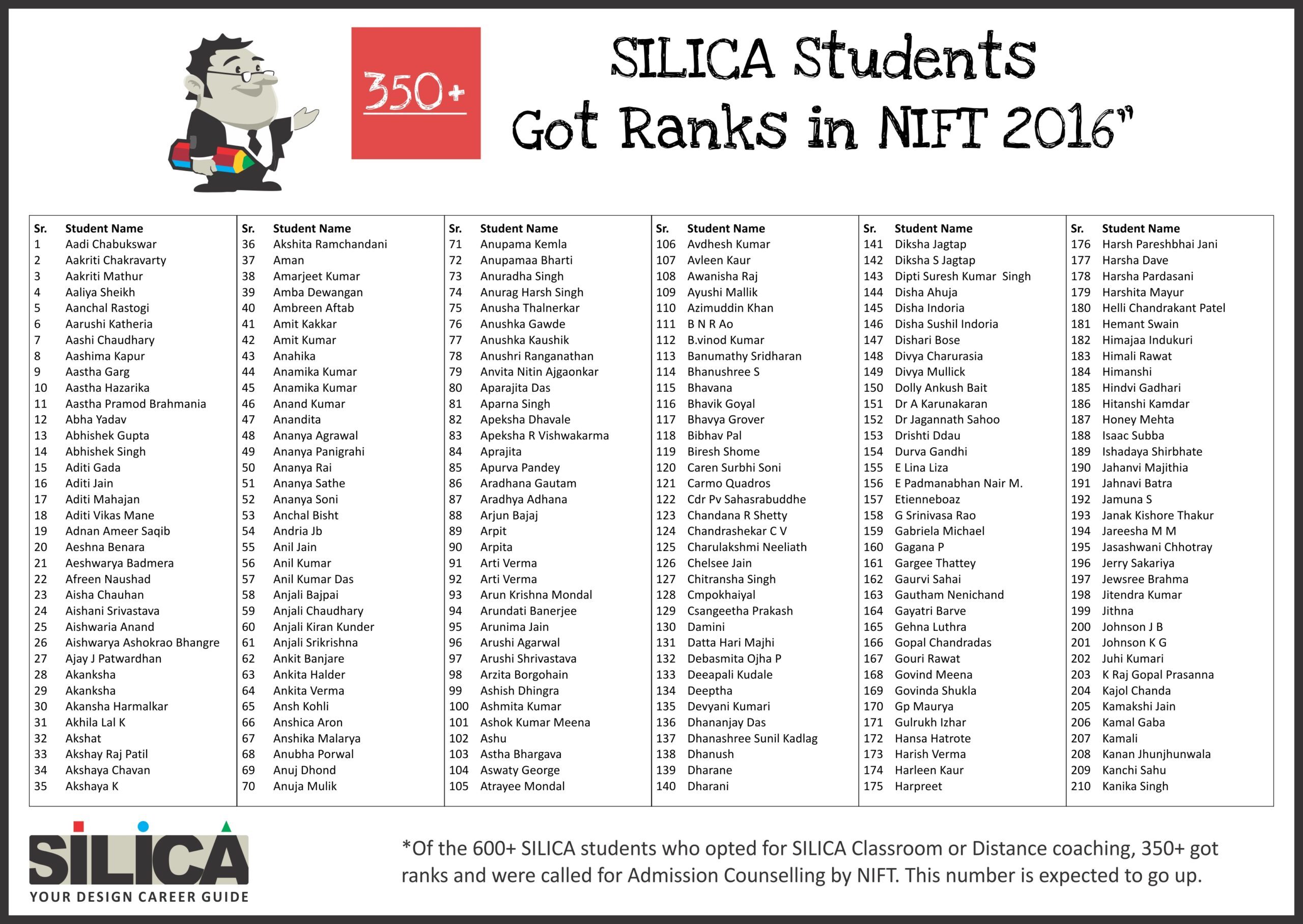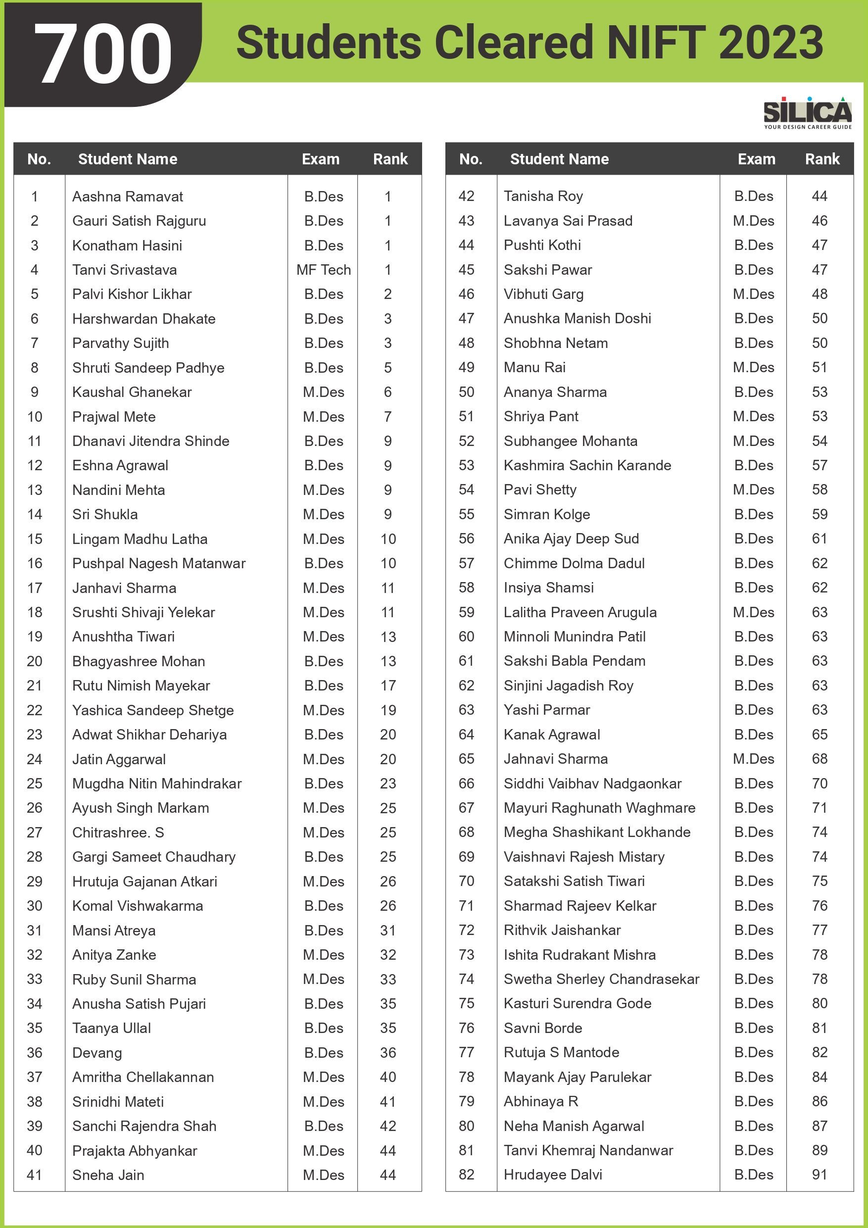 All thanks to Silica for its tremendous guidance as I wouldn’t have qualified the exam without their support. The best thing about SILICA is the study material which has literally everything for a design aspirant to prepare with.