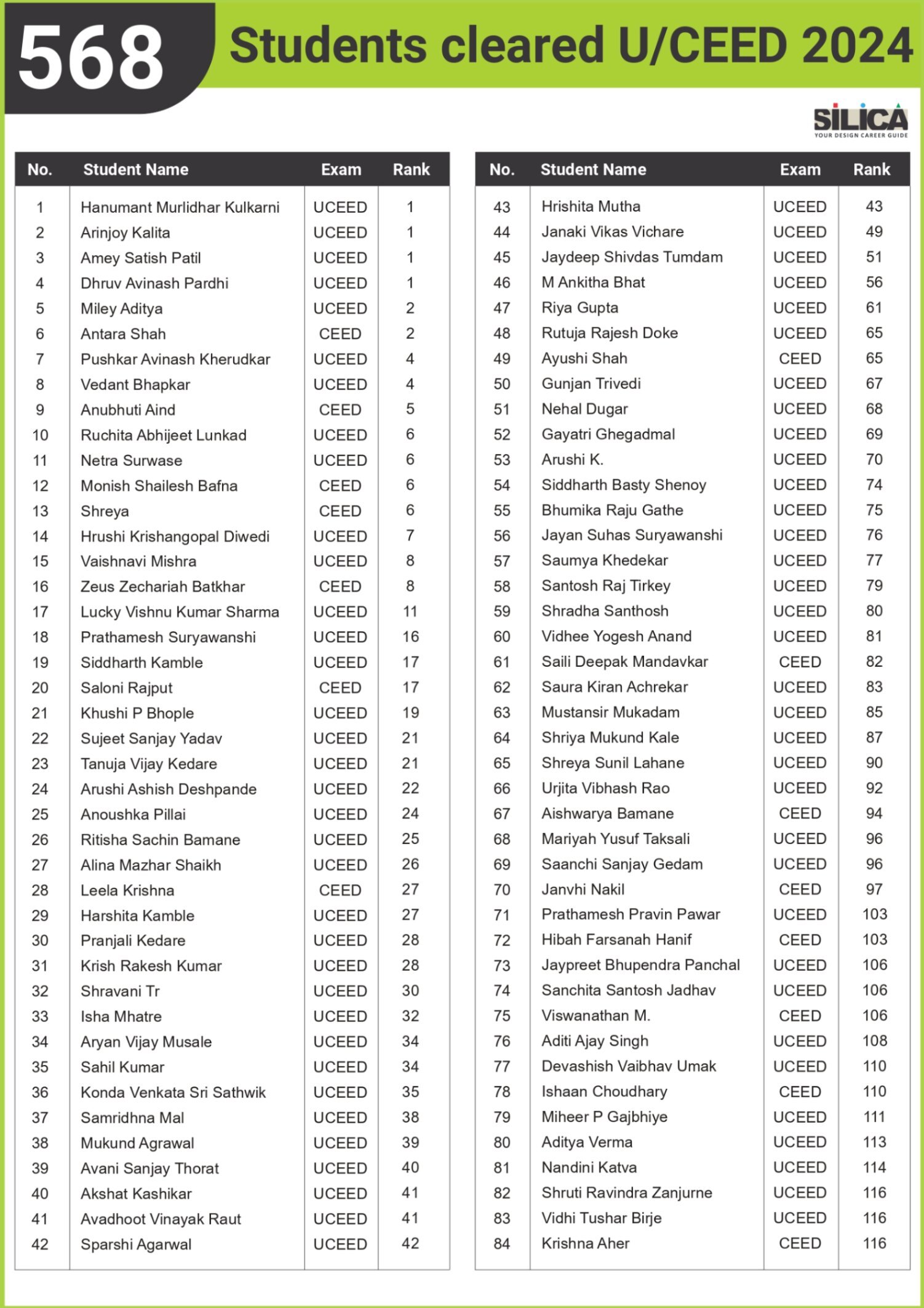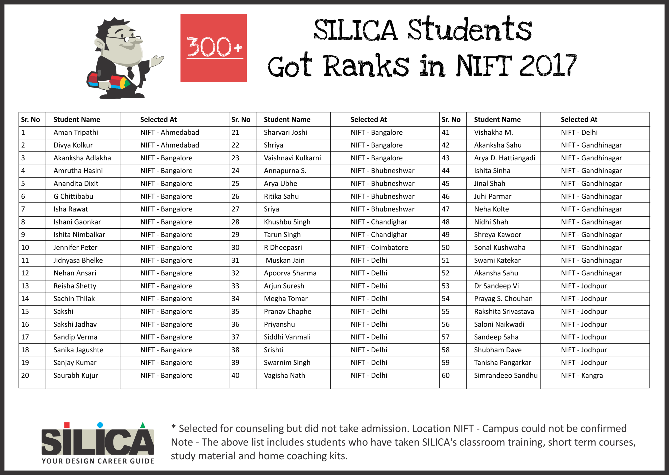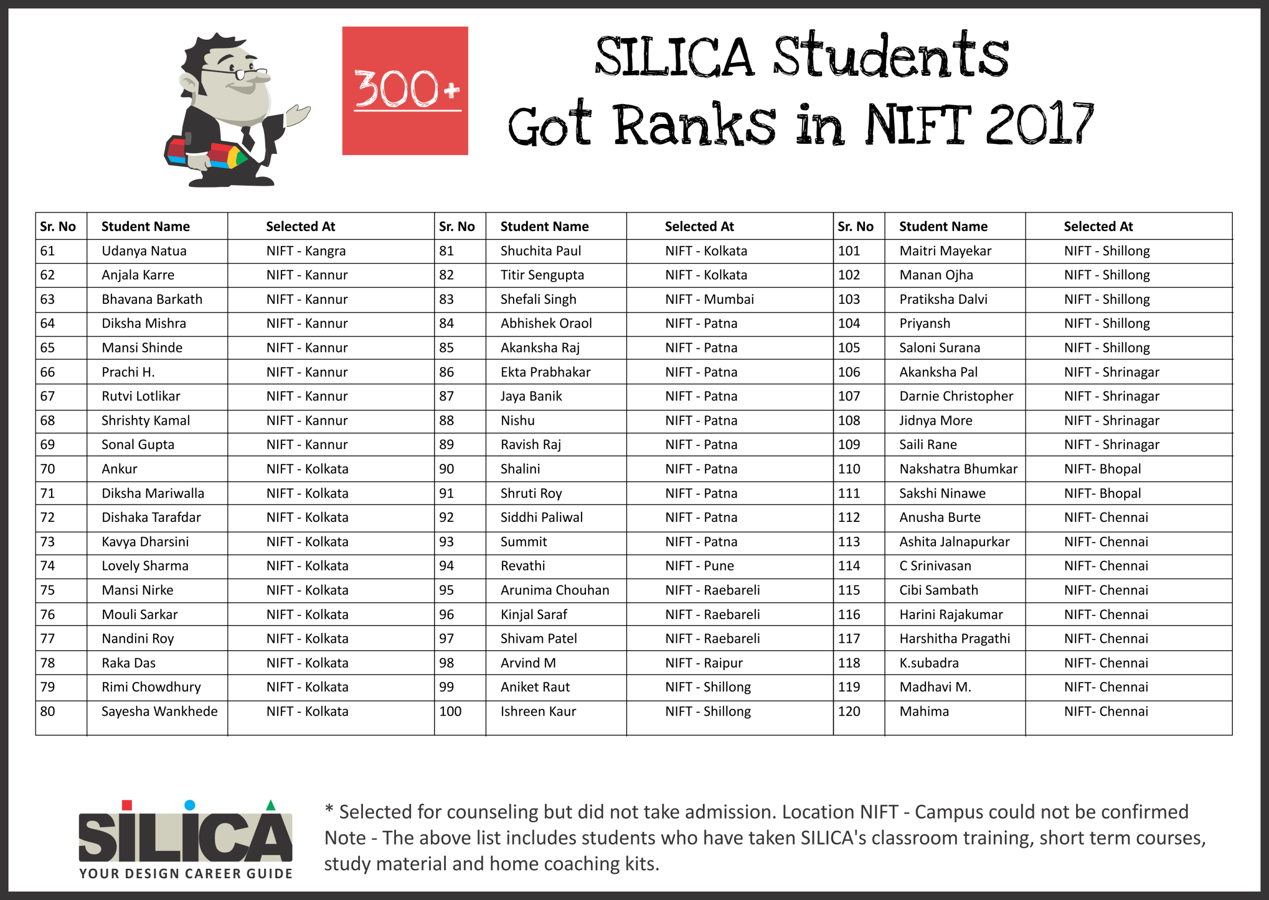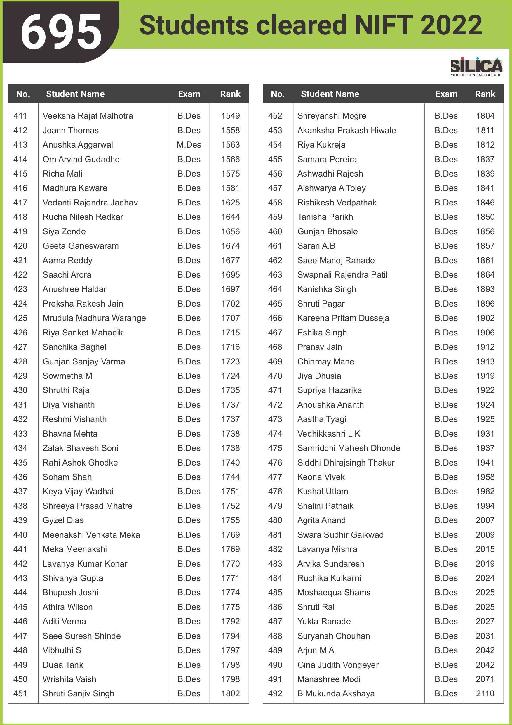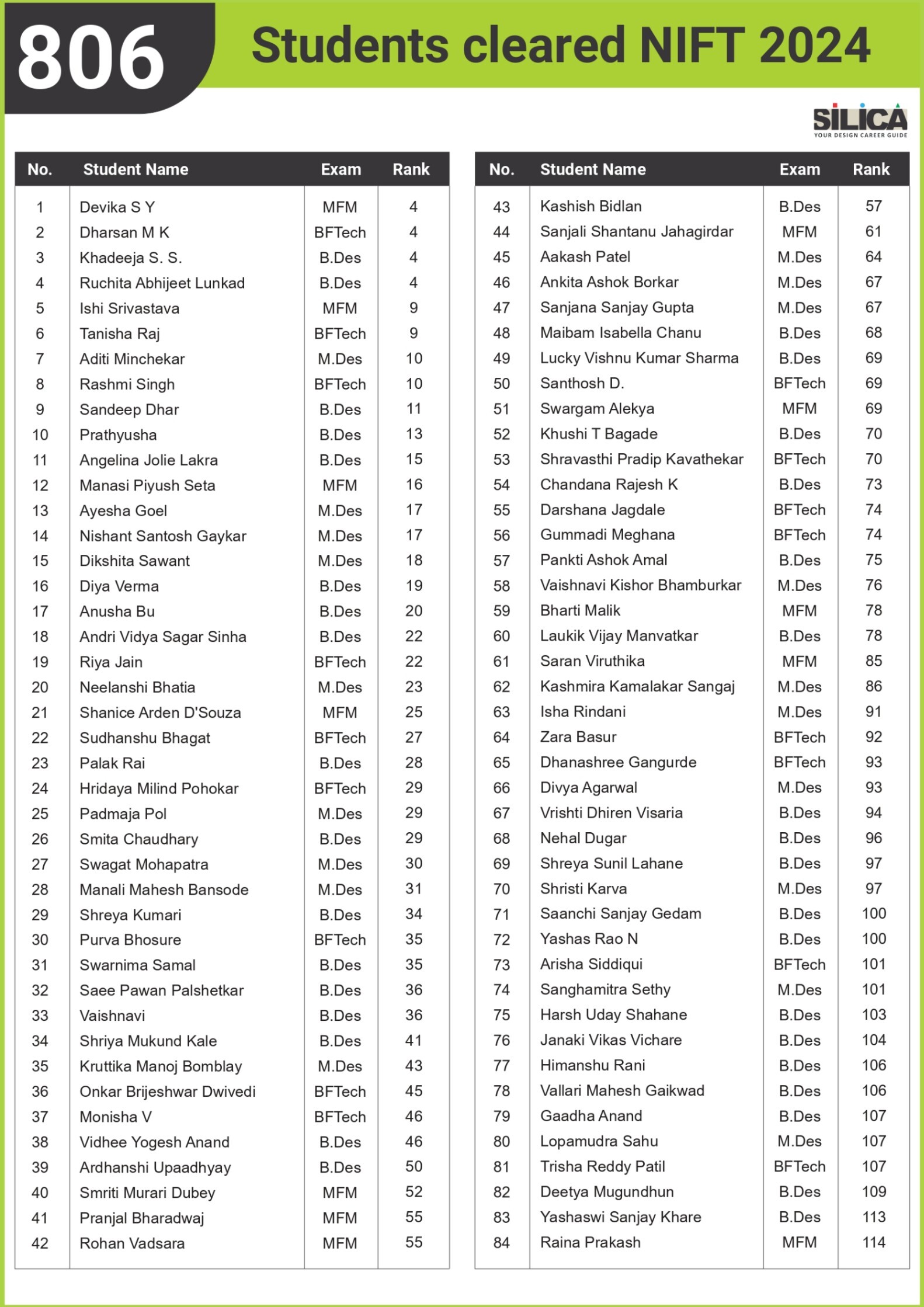 All thanks to Silica for its tremendous guidance as I wouldn’t have qualified the exam without their support. The best thing about SILICA is the study material which has literally everything for a design aspirant to prepare with.