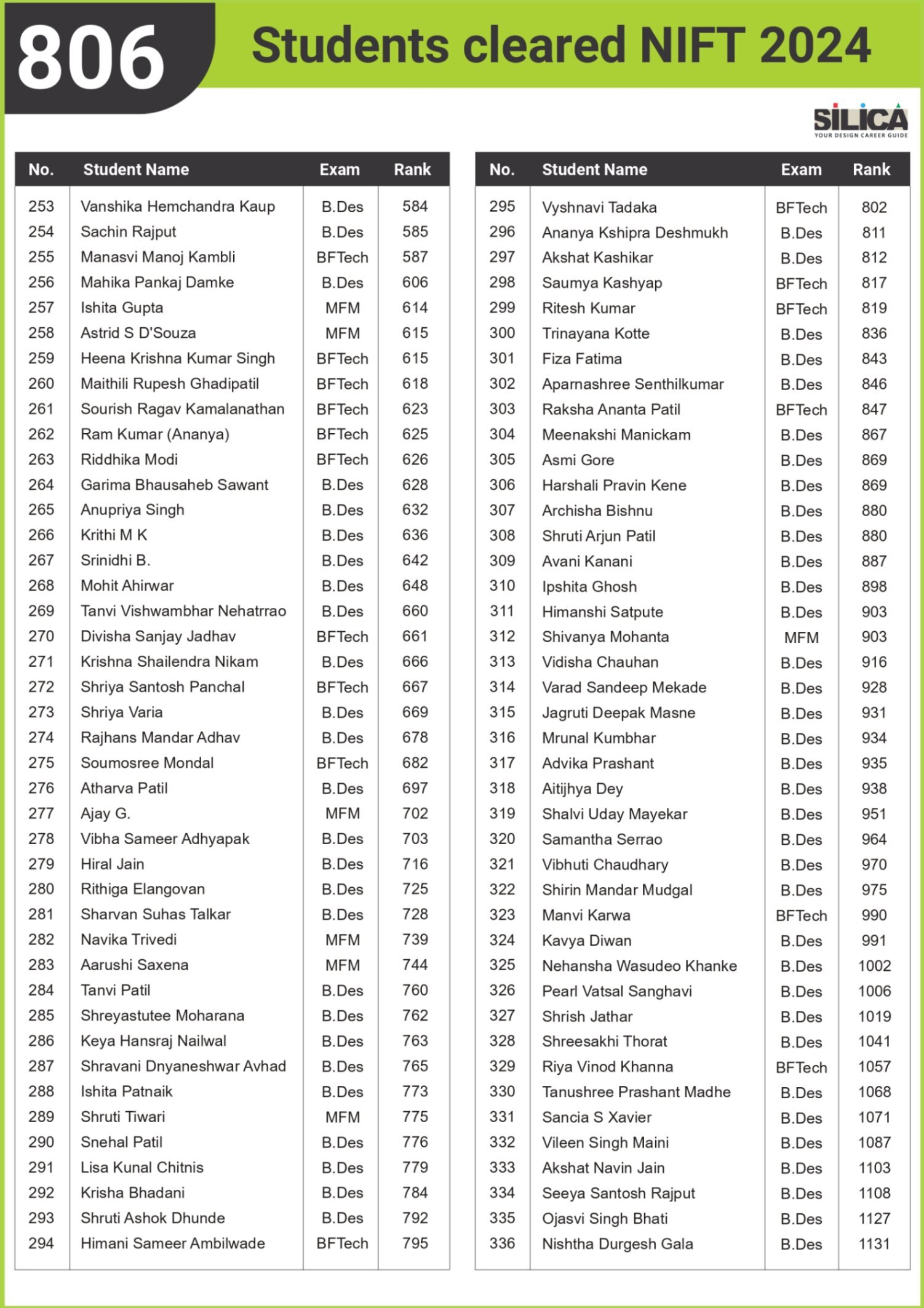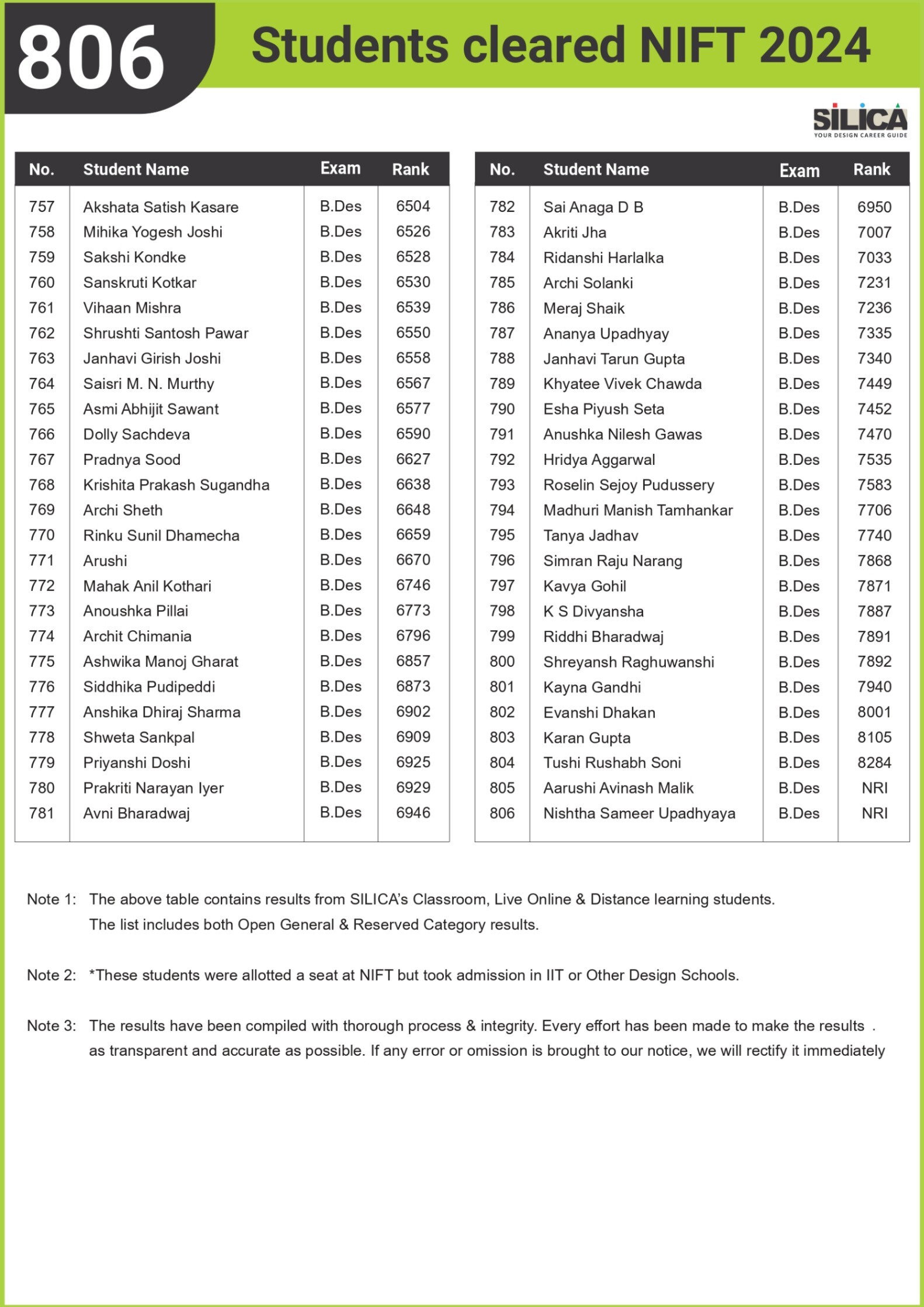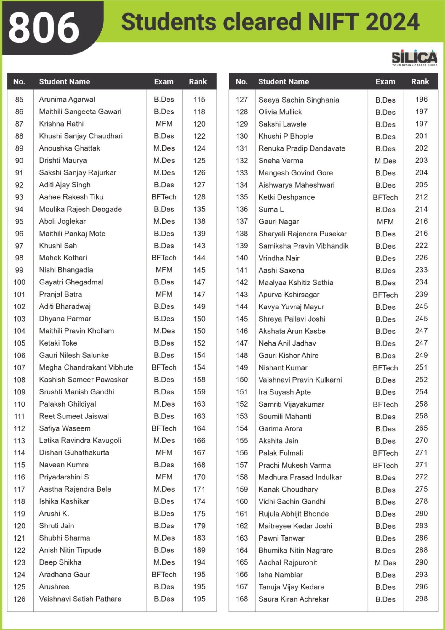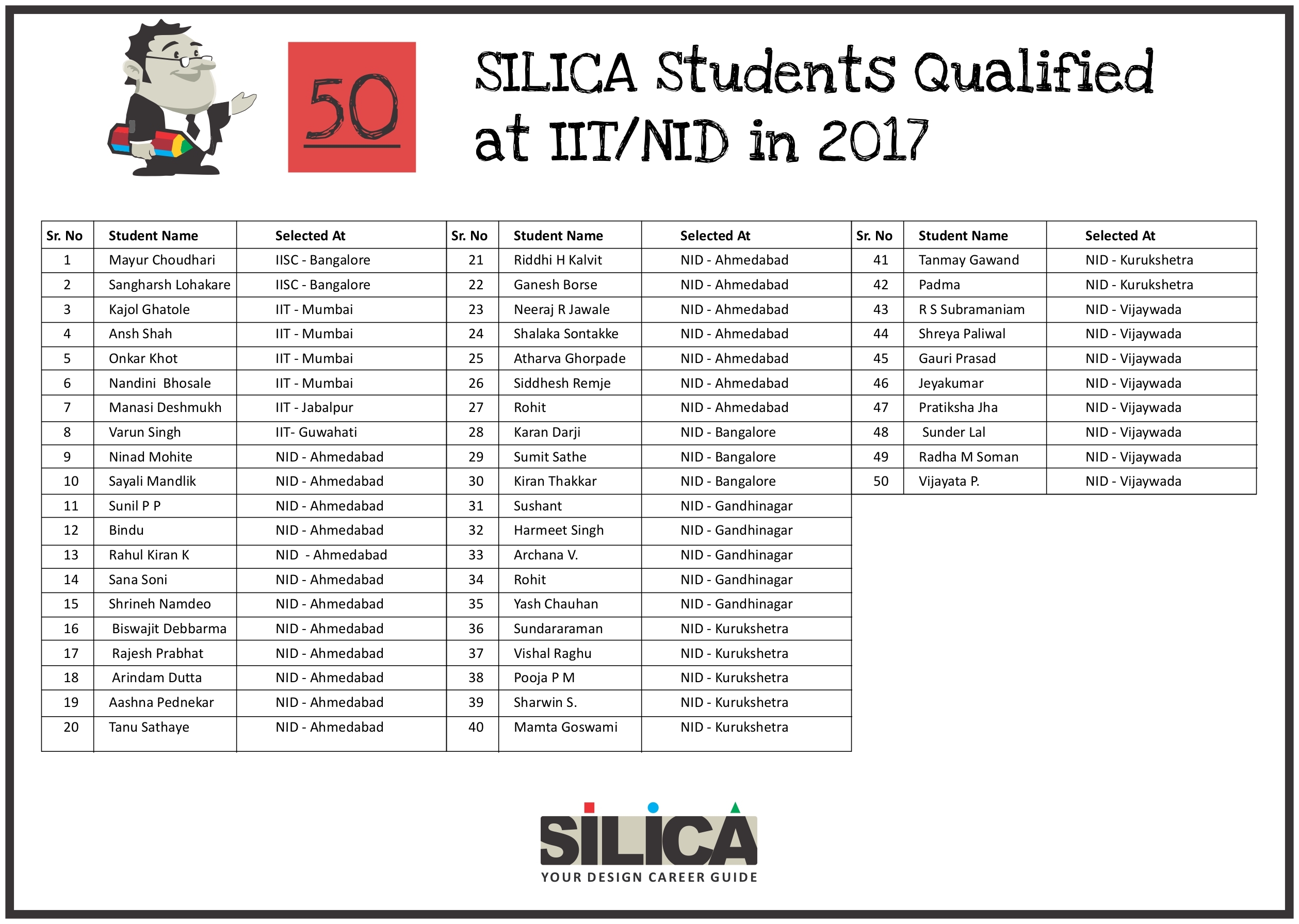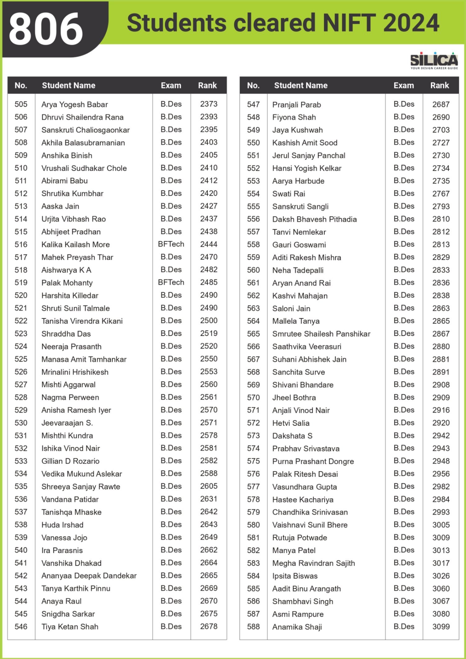 All thanks to Silica for its tremendous guidance as I wouldn’t have qualified the exam without their support. The best thing about SILICA is the study material which has literally everything for a design aspirant to prepare with.