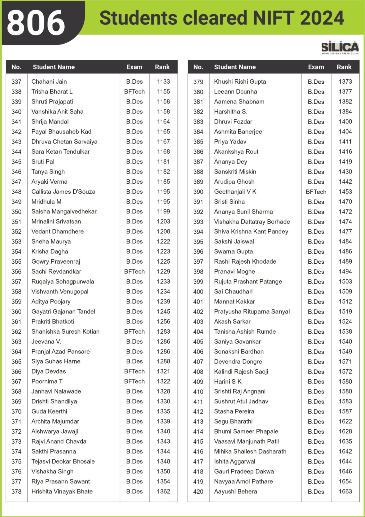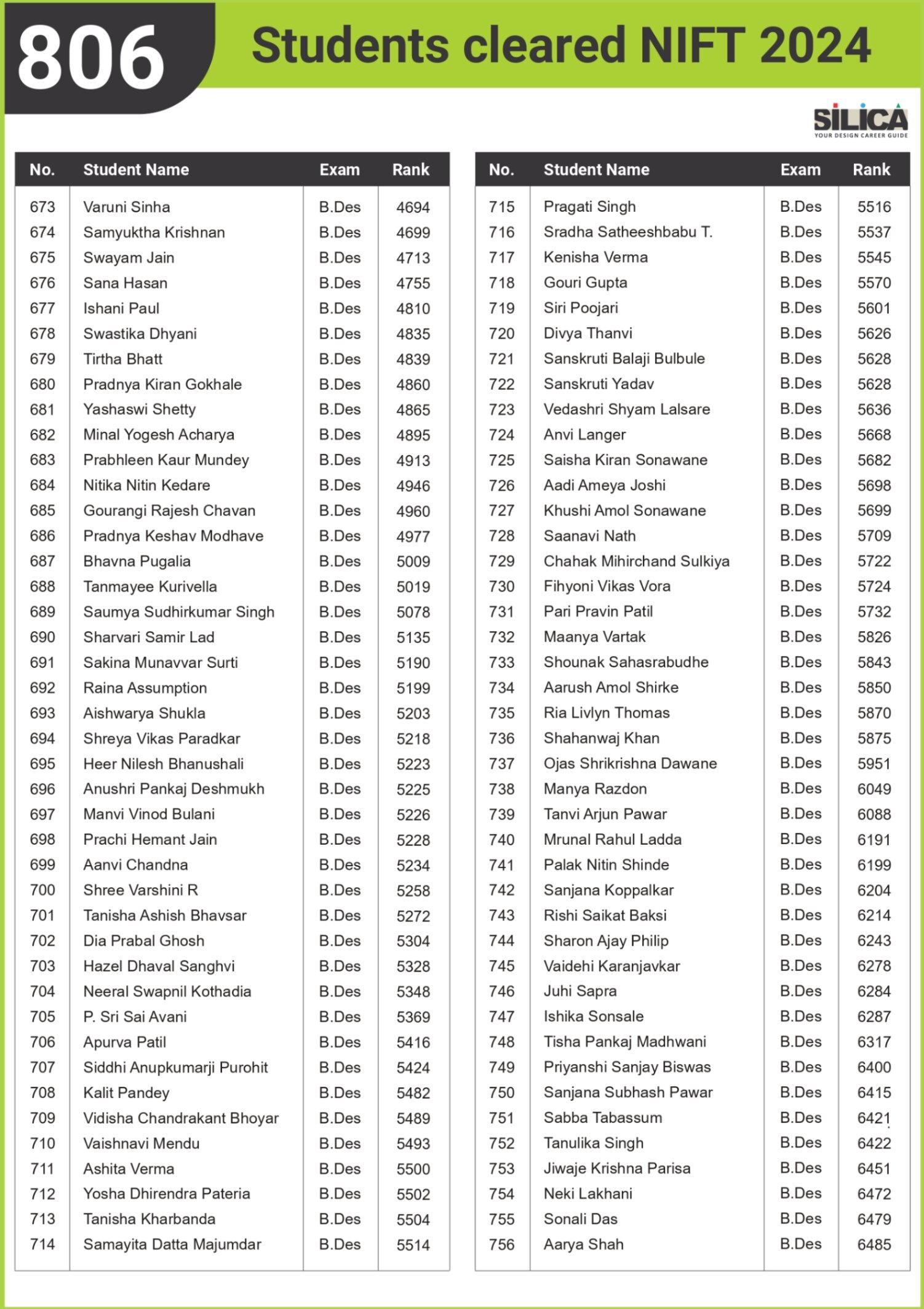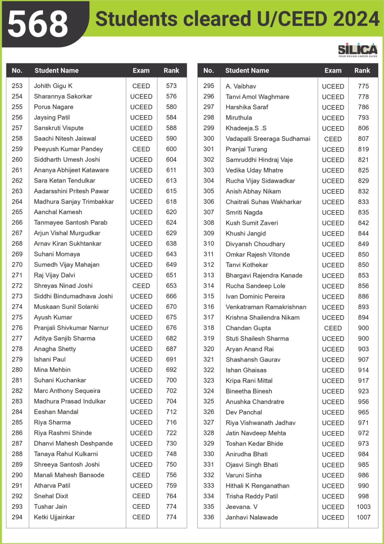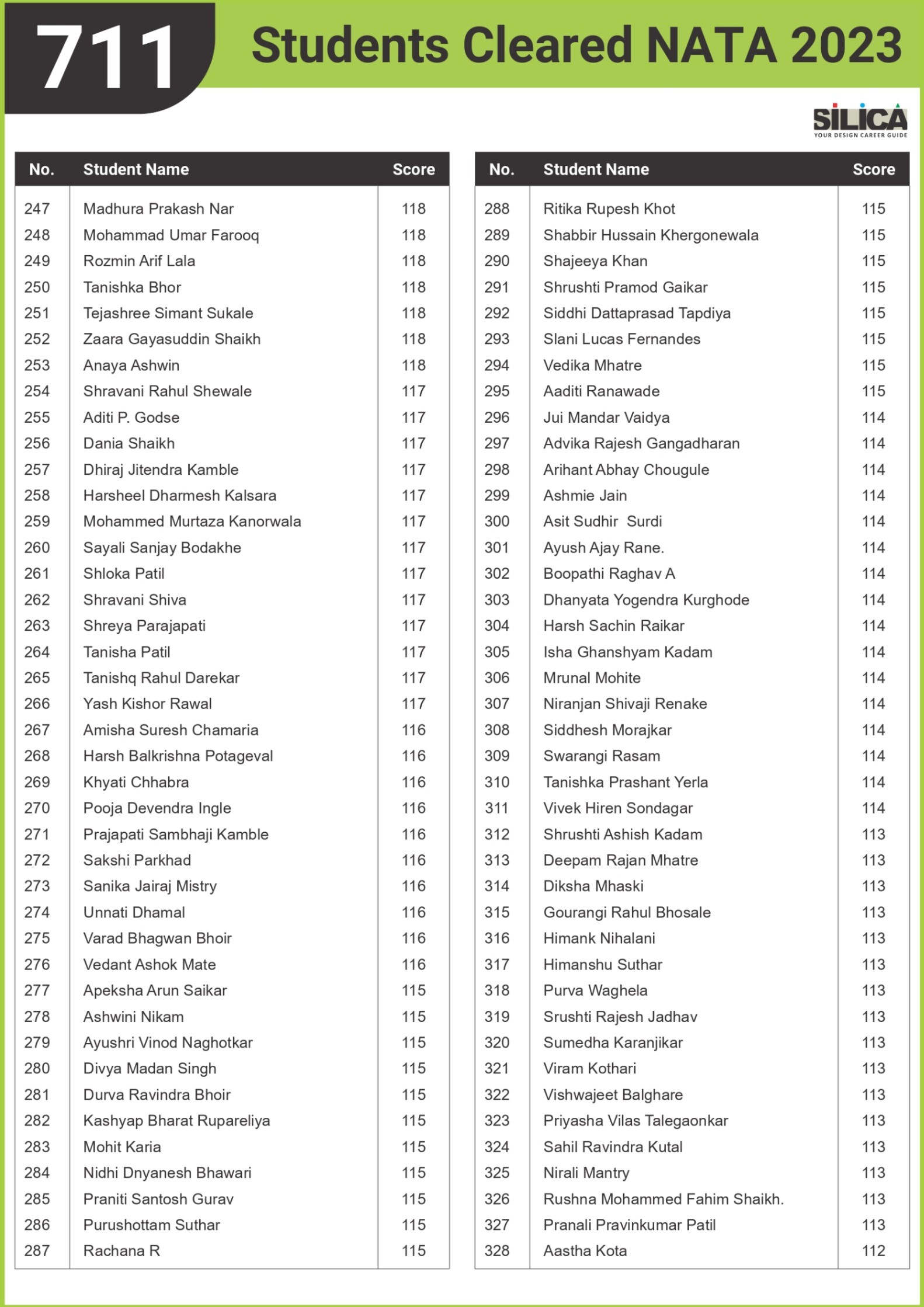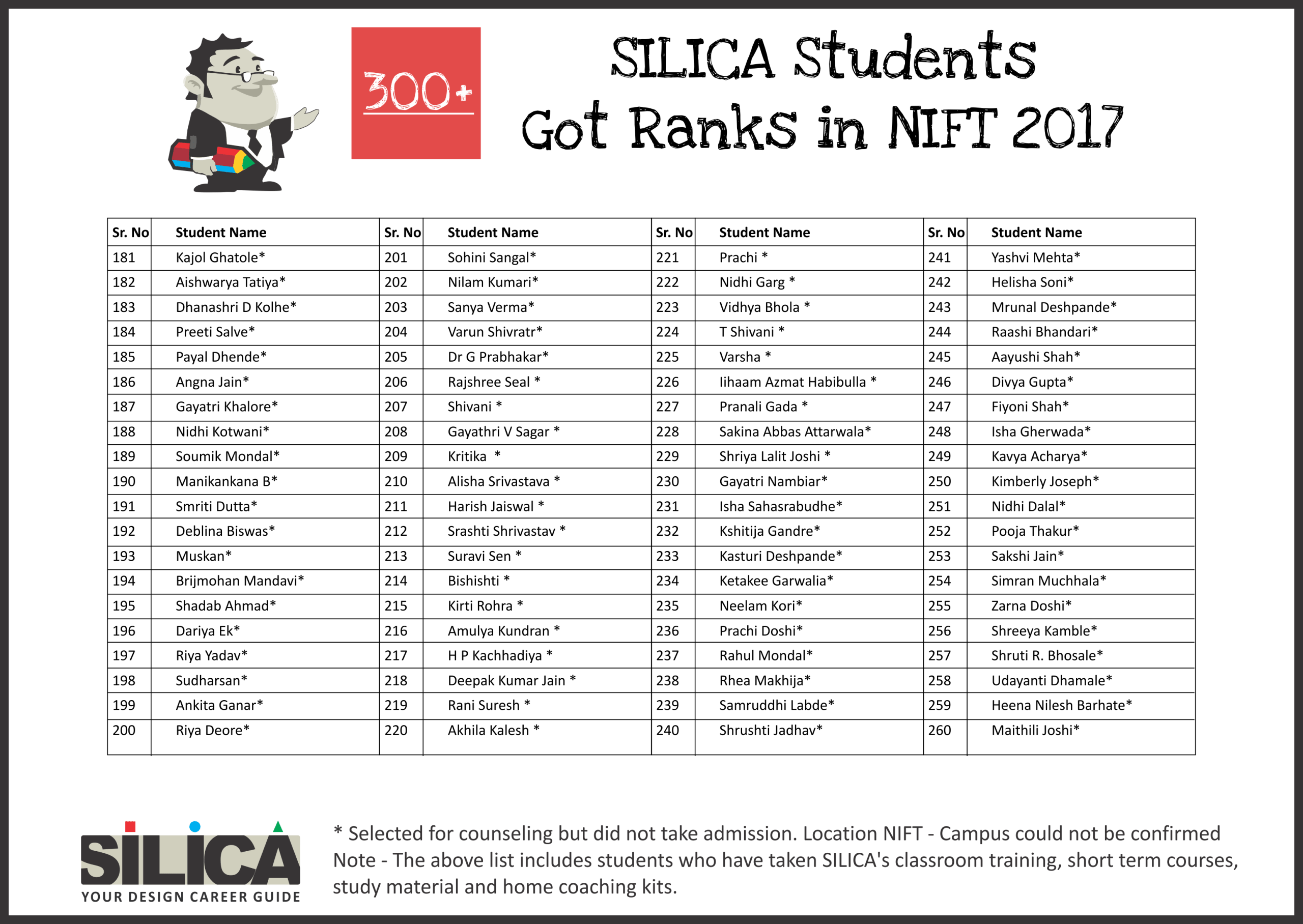 All thanks to Silica for its tremendous guidance as I wouldn’t have qualified the exam without their support. The best thing about SILICA is the study material which has literally everything for a design aspirant to prepare with.