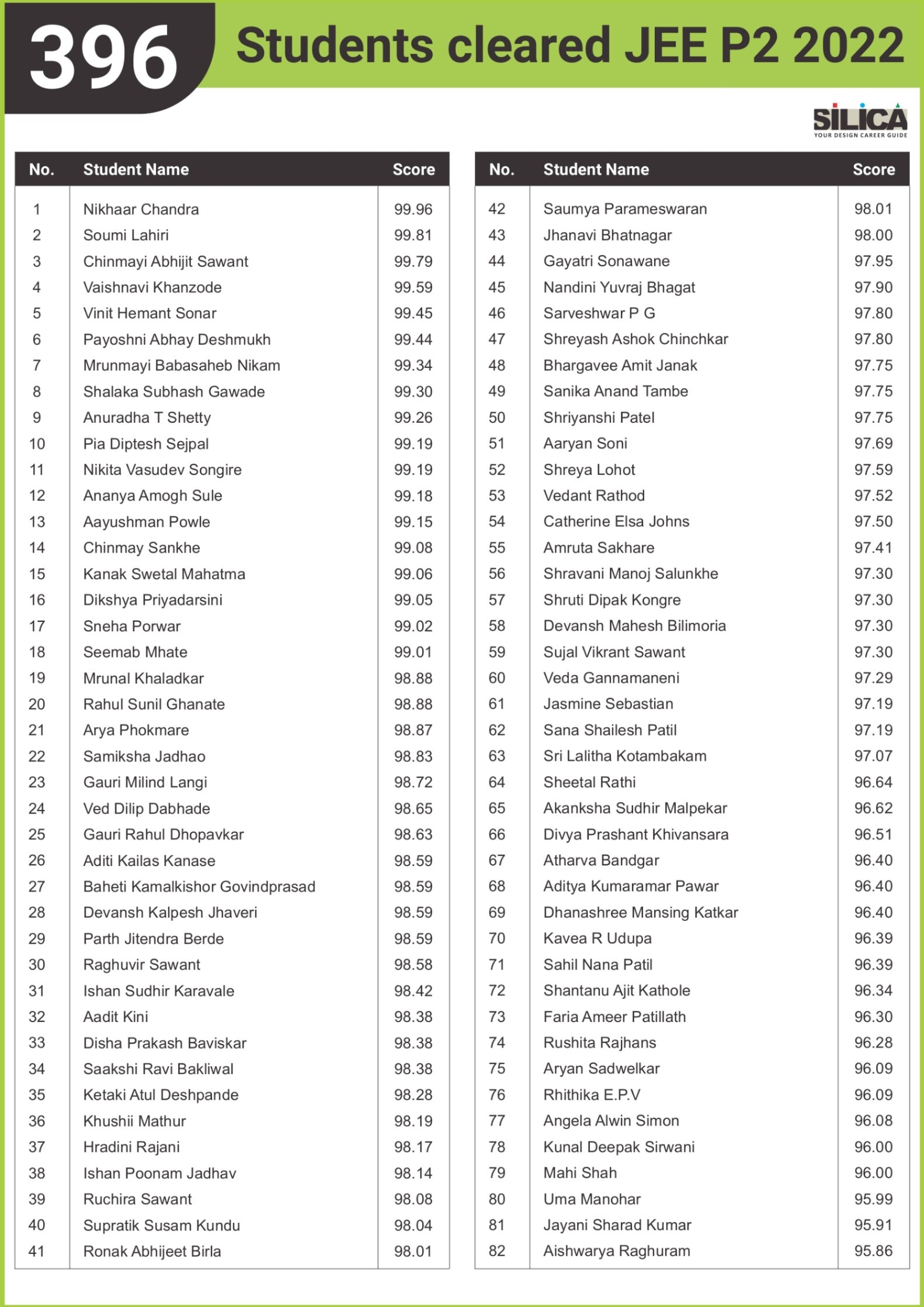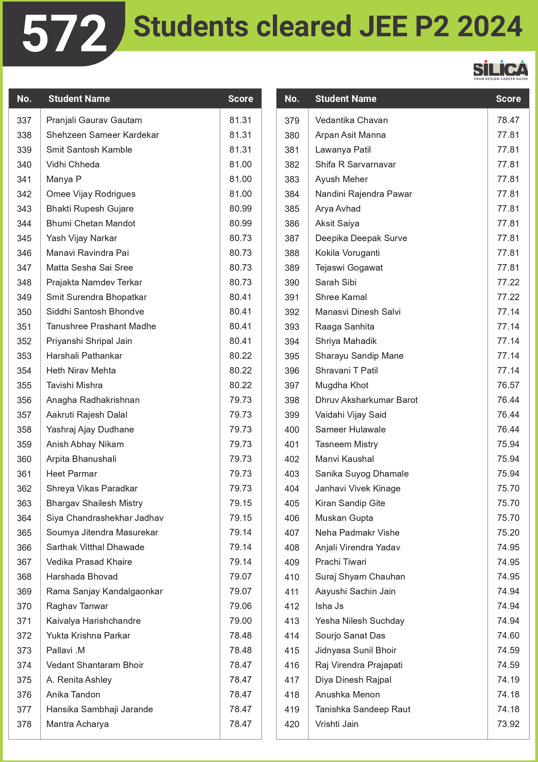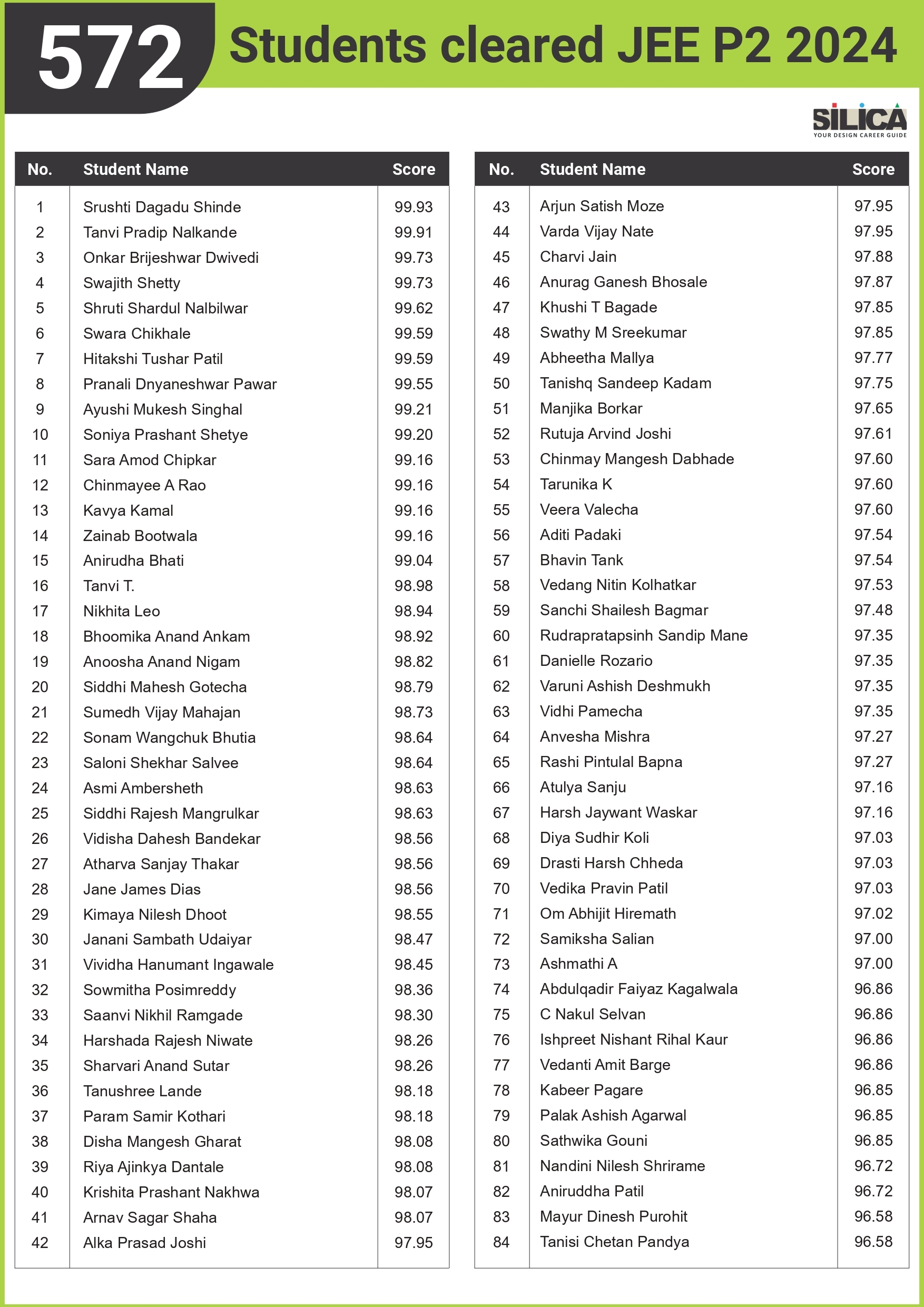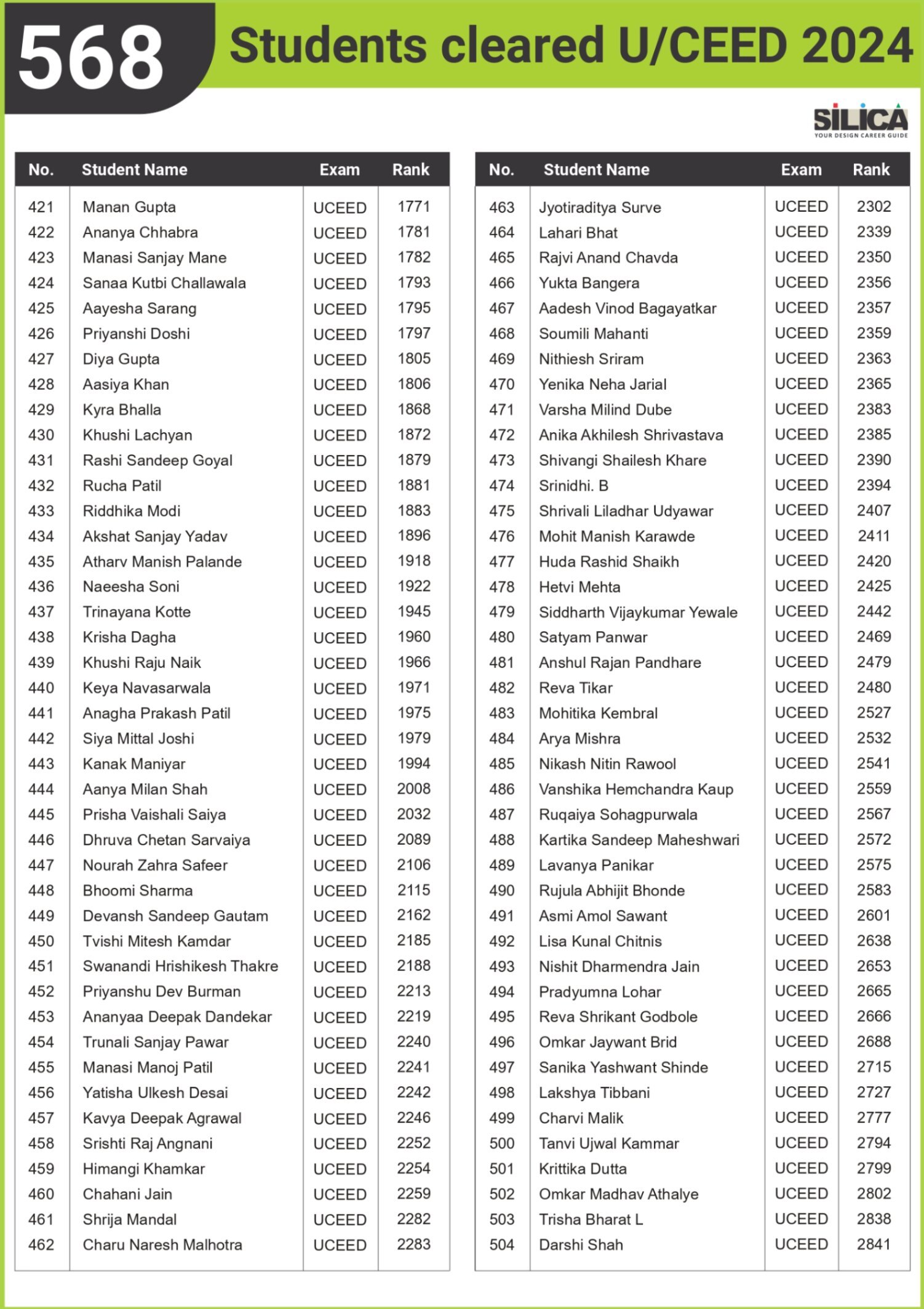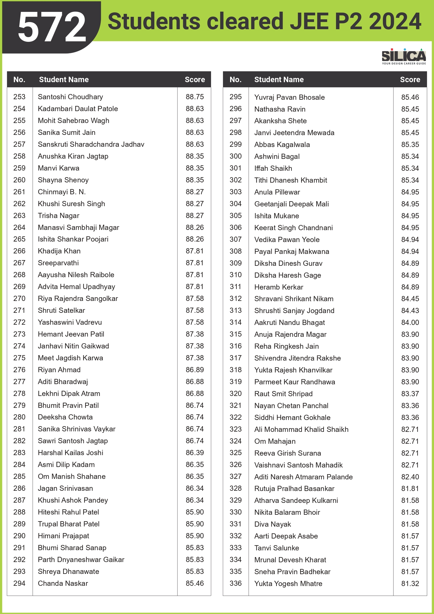 All thanks to Silica for its tremendous guidance as I wouldn’t have qualified the exam without their support. The best thing about SILICA is the study material which has literally everything for a design aspirant to prepare with.