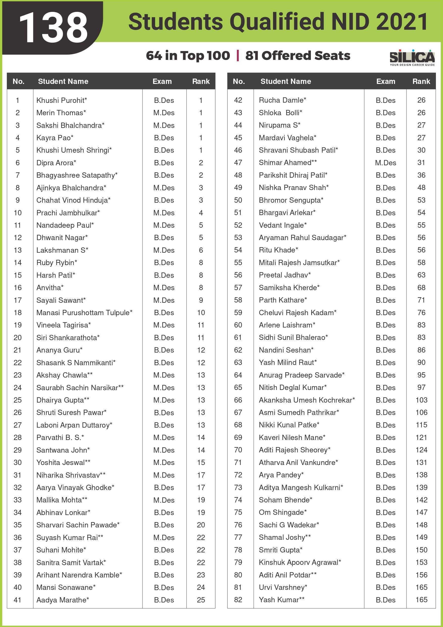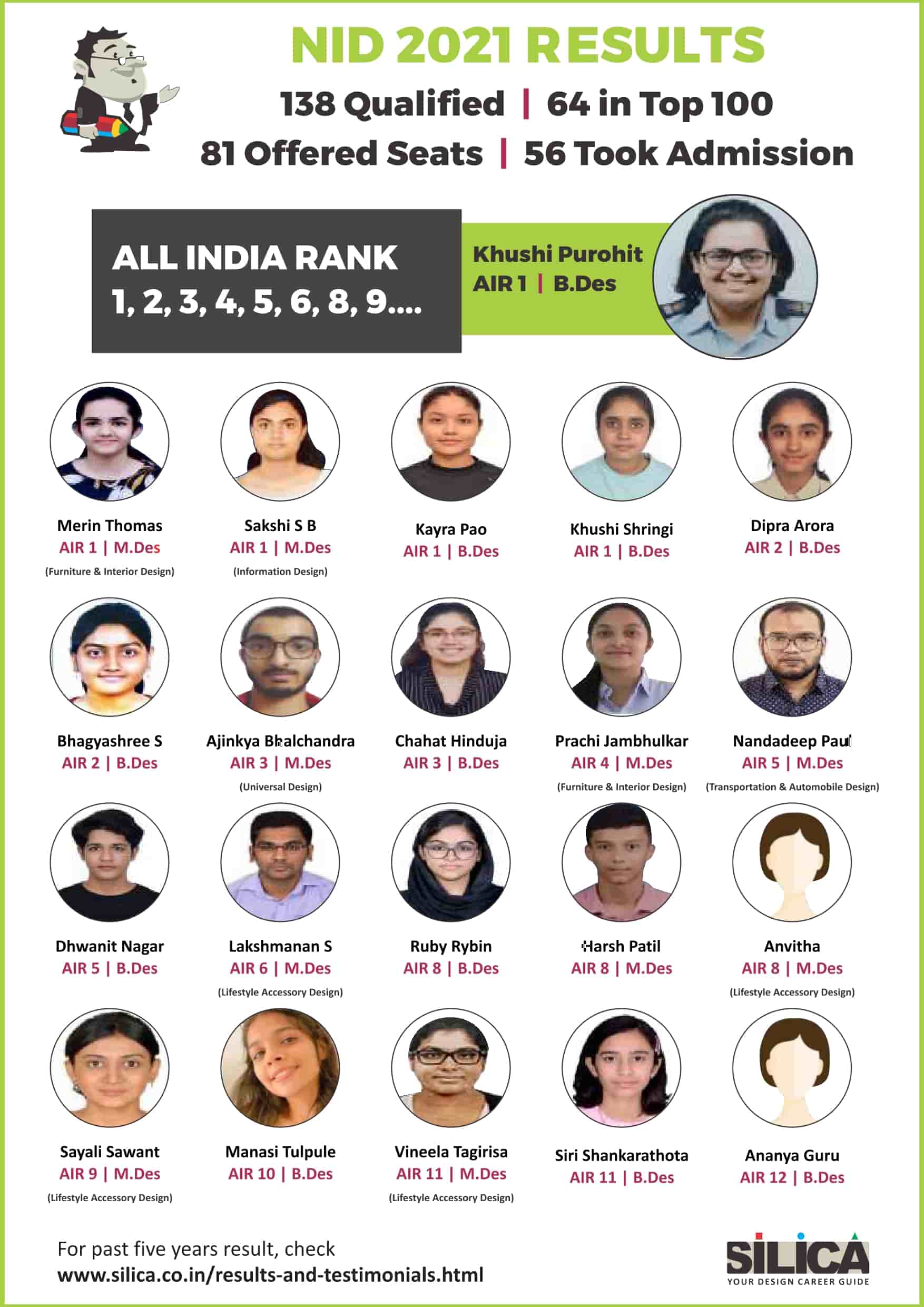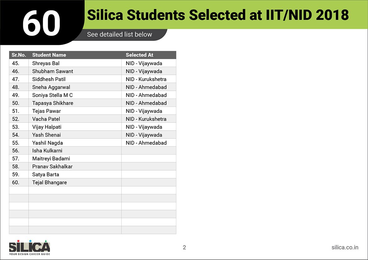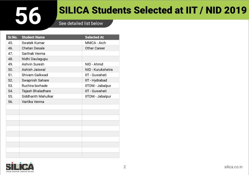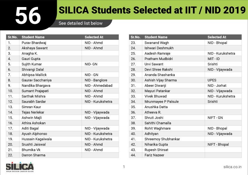"I would like to thank SILICA for being an excellent motivator & guide. You truly are our Design Career Guide" - Khushi Shringi, NID B.Des AIR 1 (PWD)