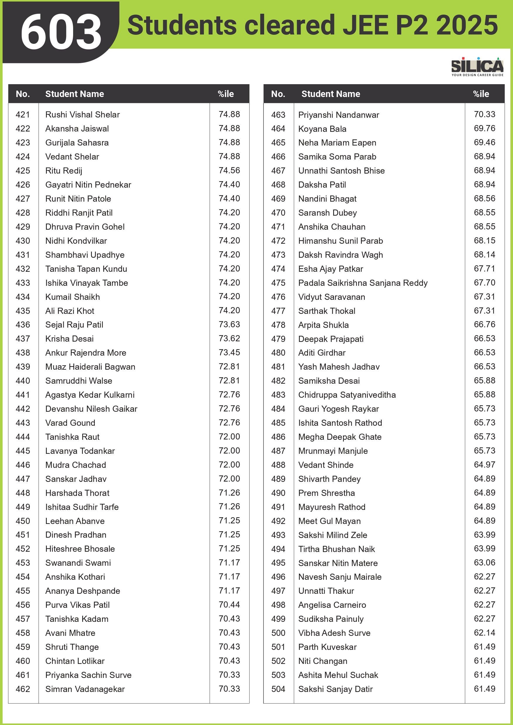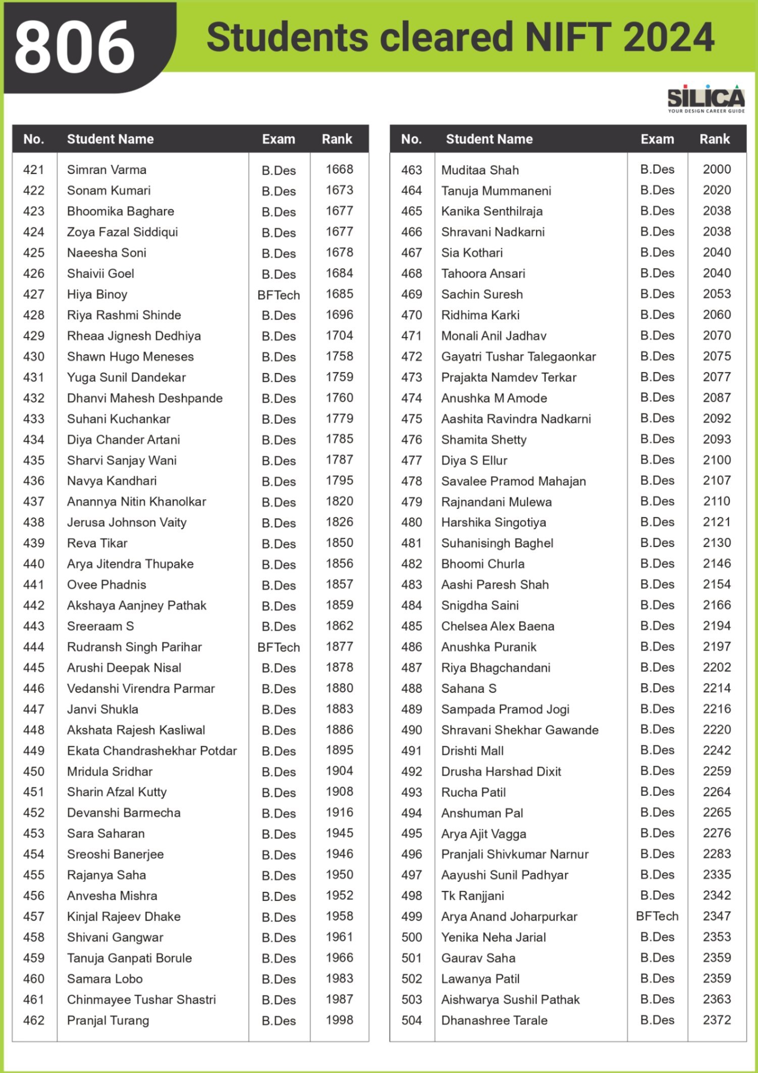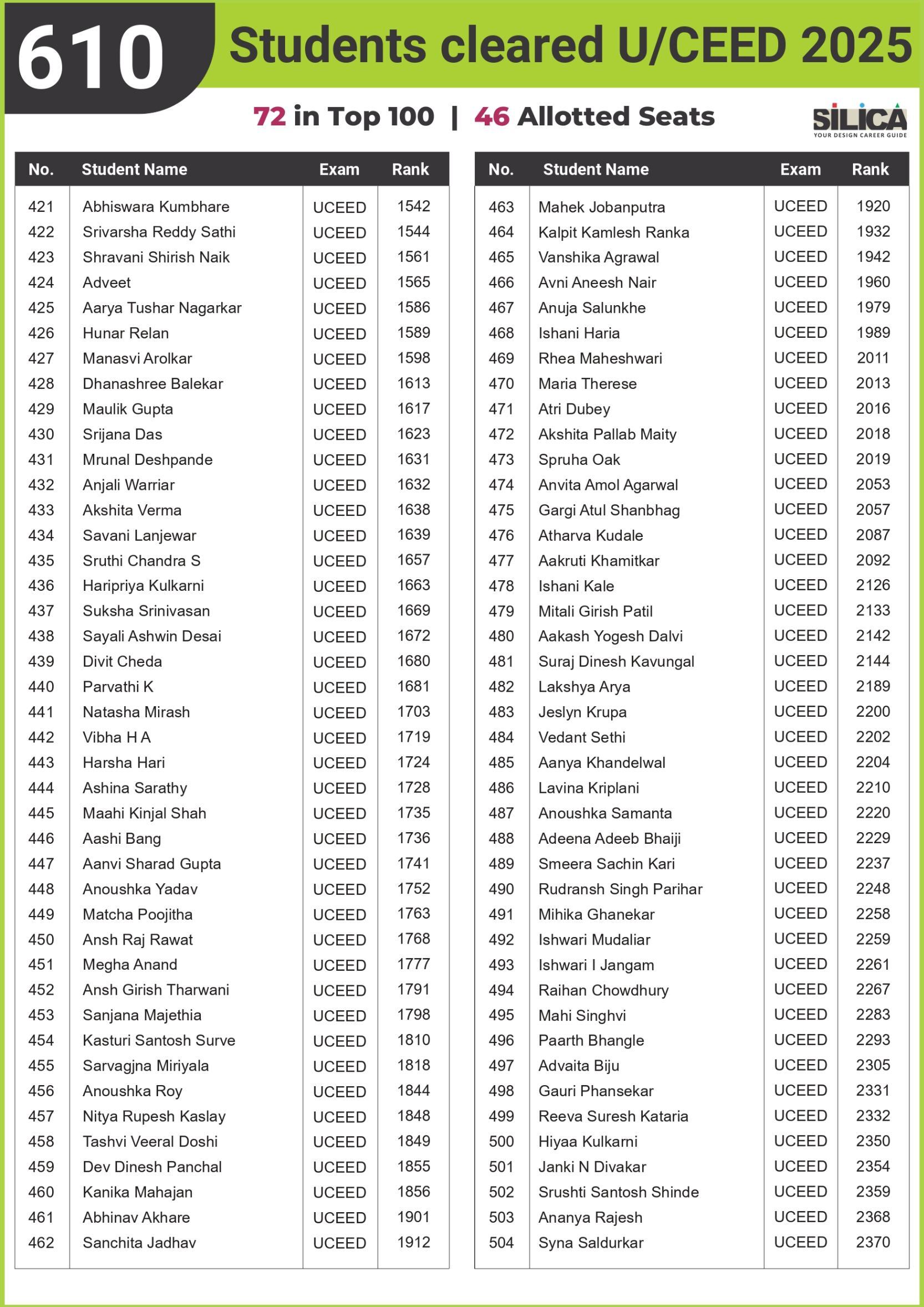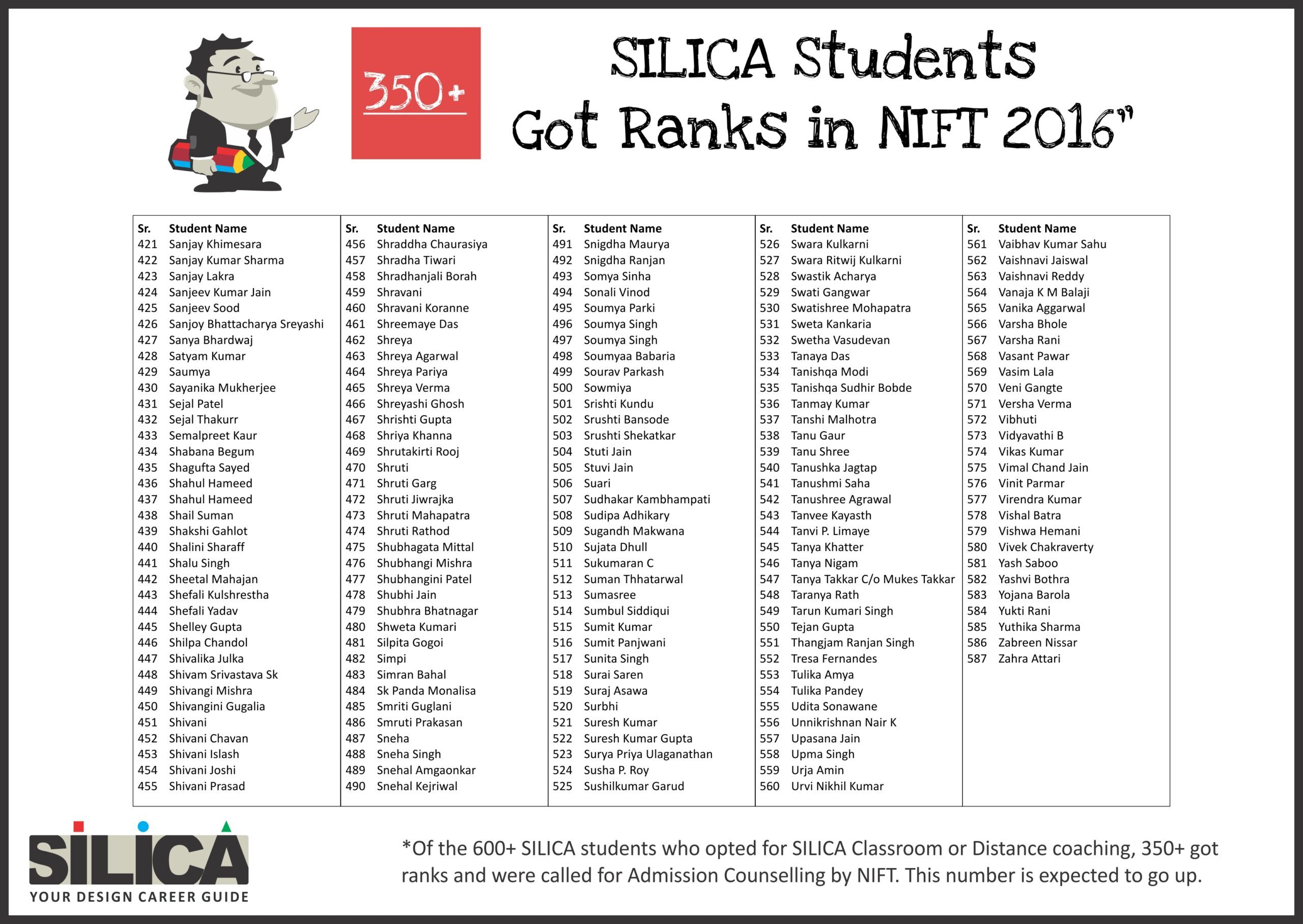 "I would like to thank SILICA for being an excellent motivator & guide. You truly are our Design Career Guide" - Khushi Shringi, NID B.Des AIR 1 (PWD)
