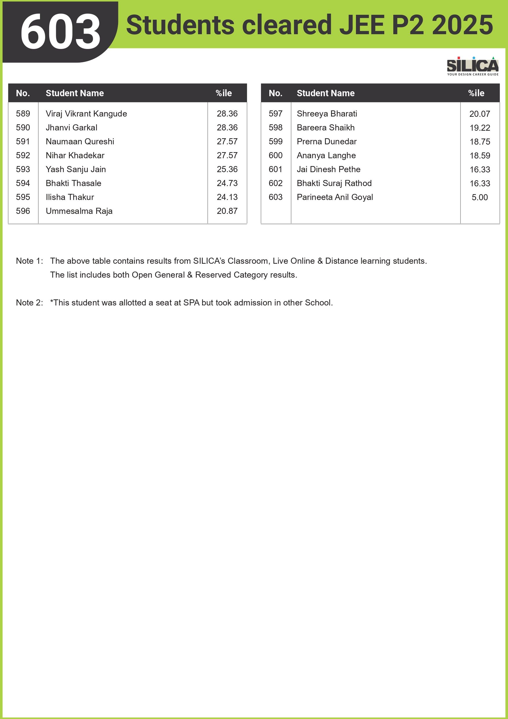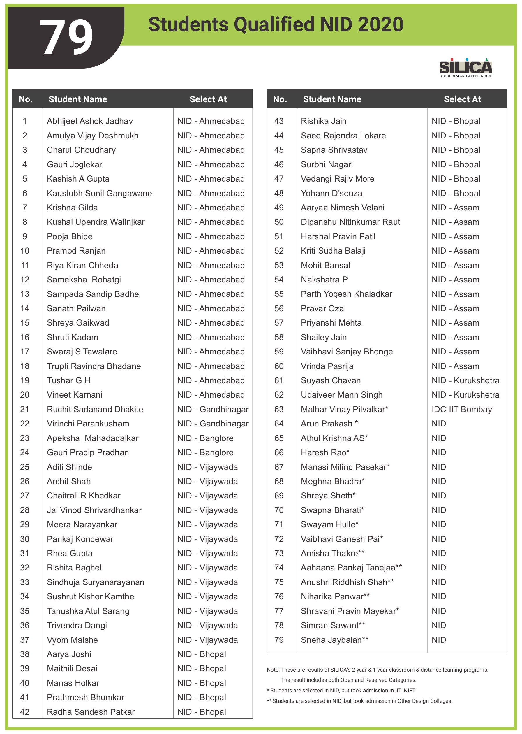 I am very glad that I joined SILICA’s online classes, previously I also attempted for NID but couldn’t clear my prelims. SILICA’s study material helped me a lot. I achieved what I wanted & I am very thankful to SILICA for the same.
