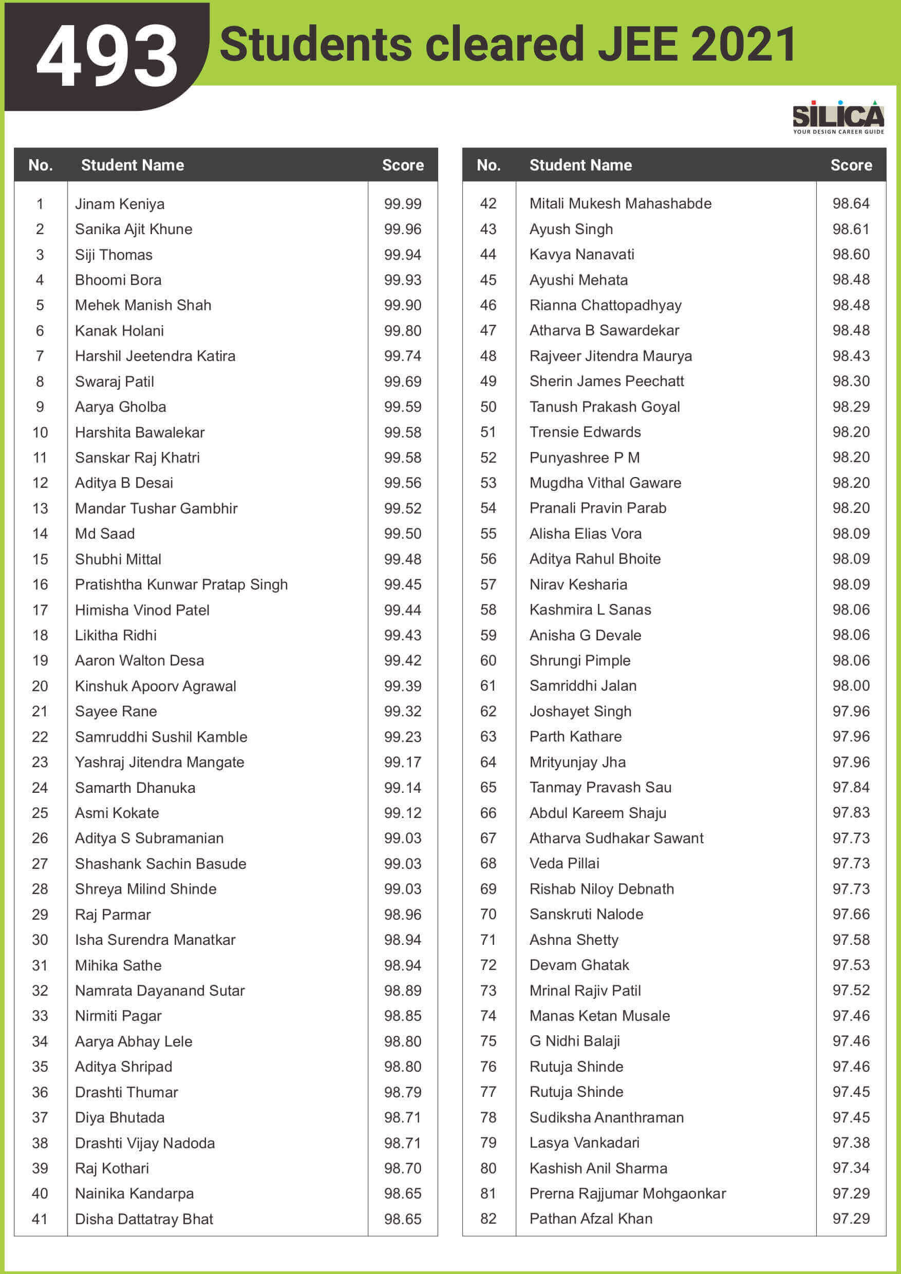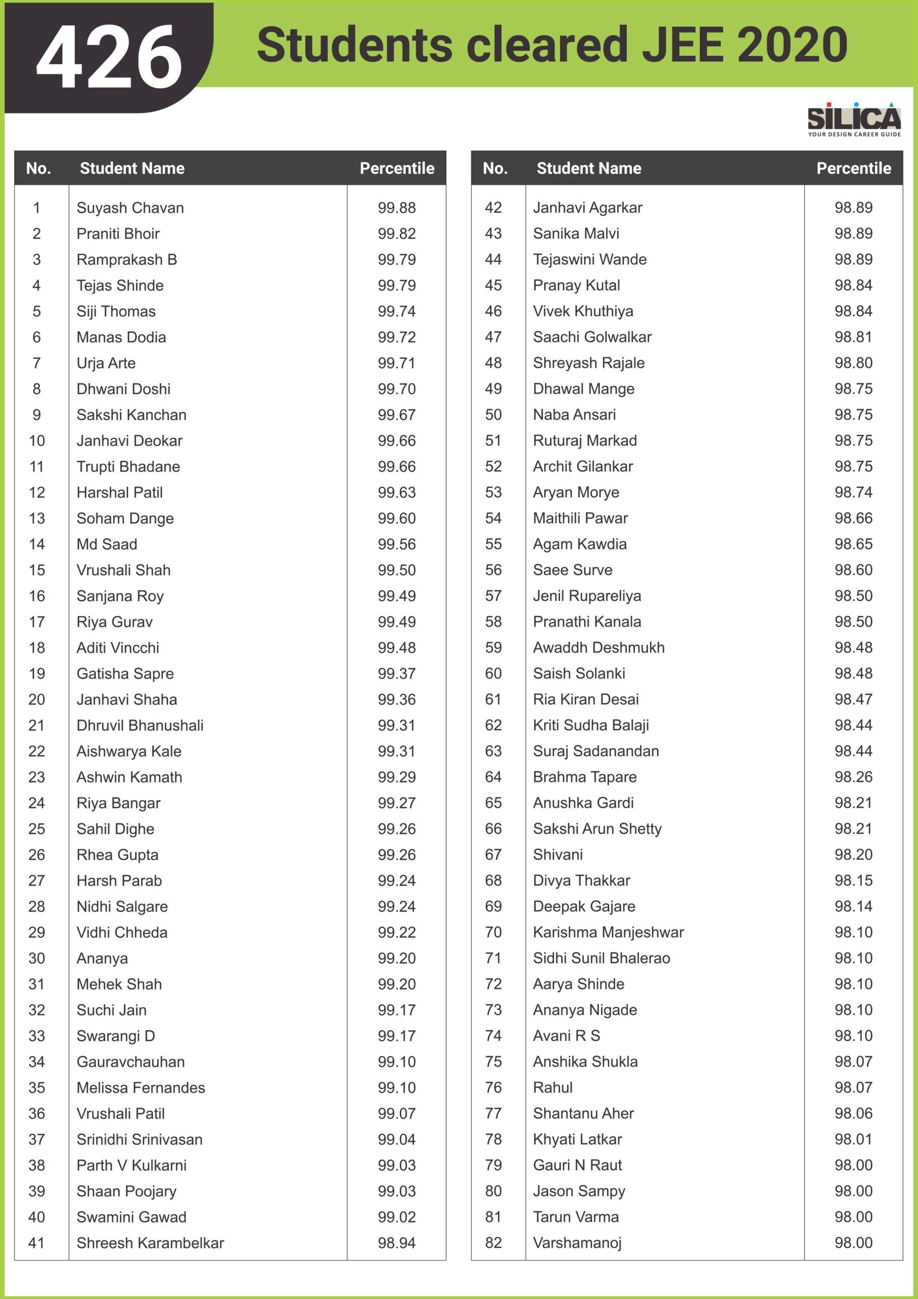 "I would like to thank silica for helping me achieve a wonderful result" - Jinam Keniya, JEE 99.99 Percentile