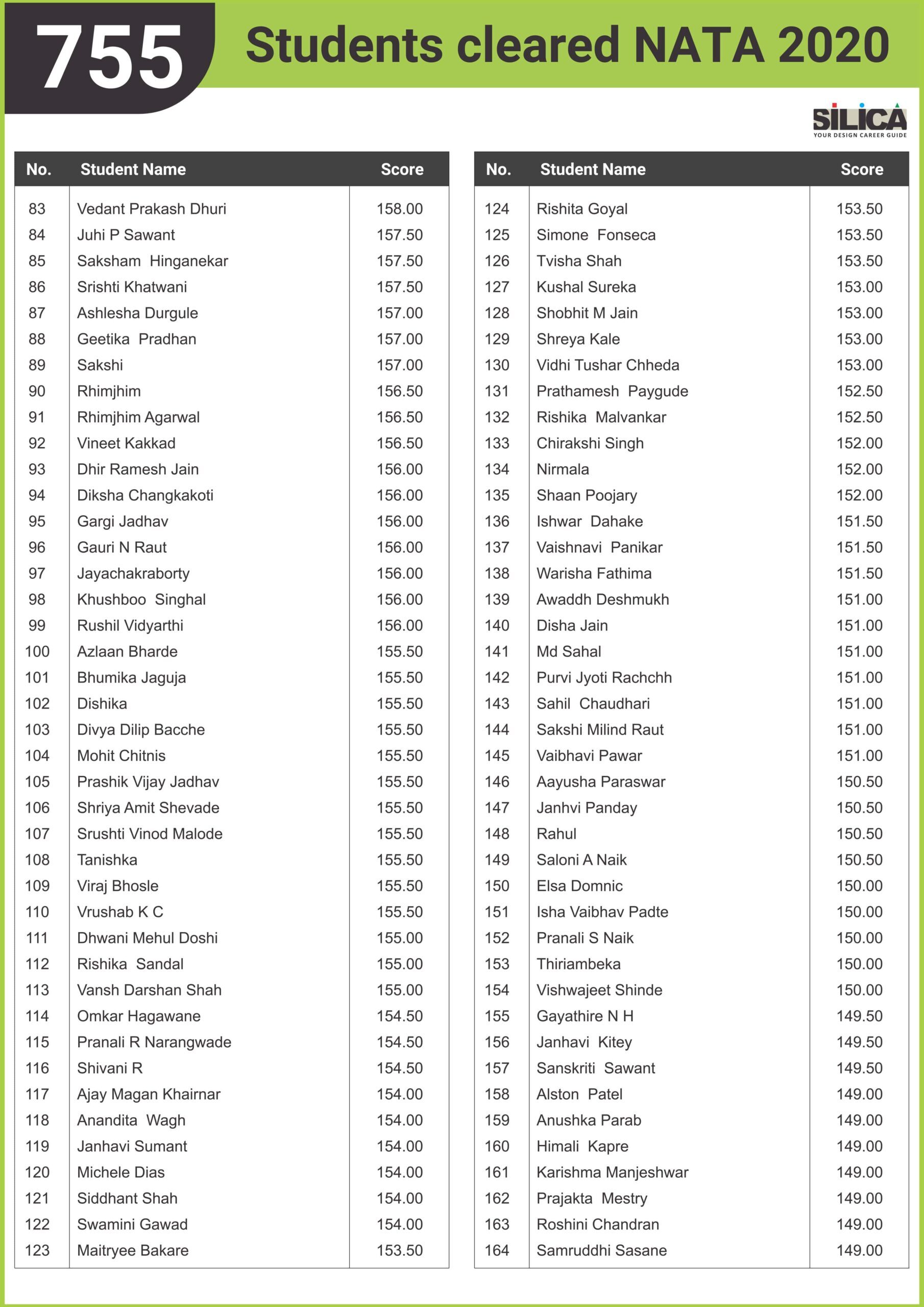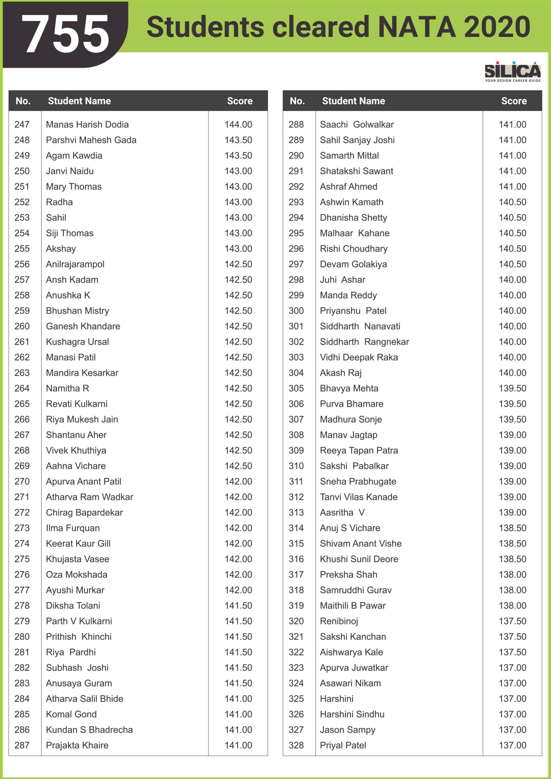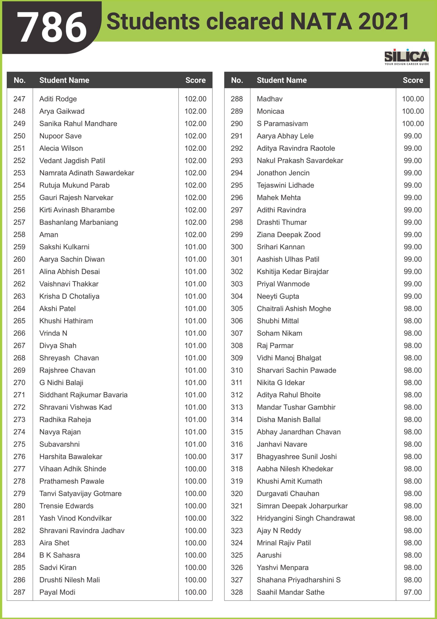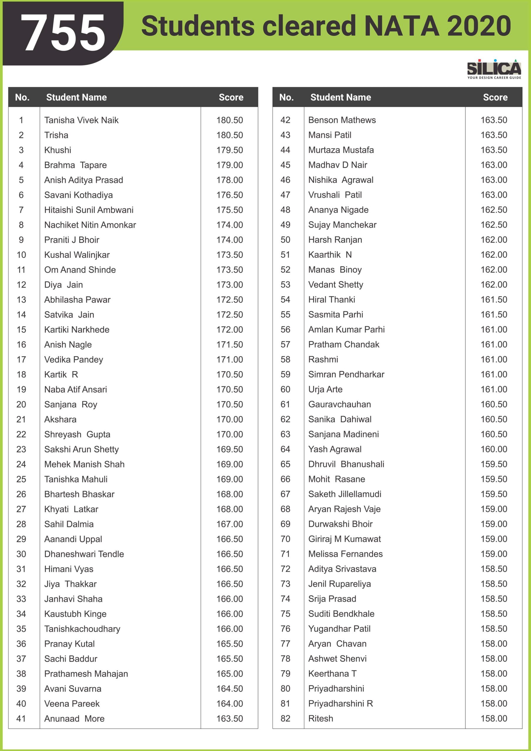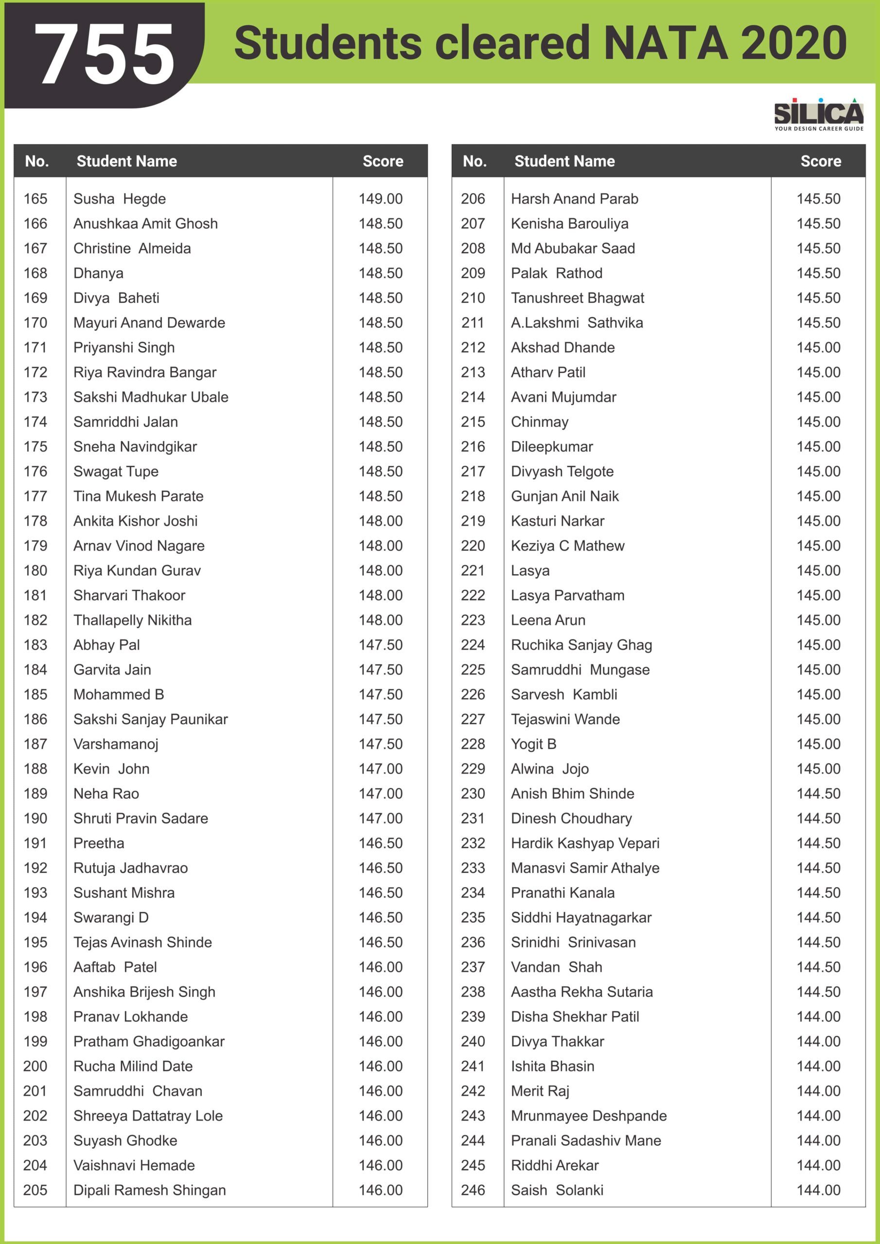 "SILICA was very resourceful and supportive" - Trisha, NATA 2020 - 180.5