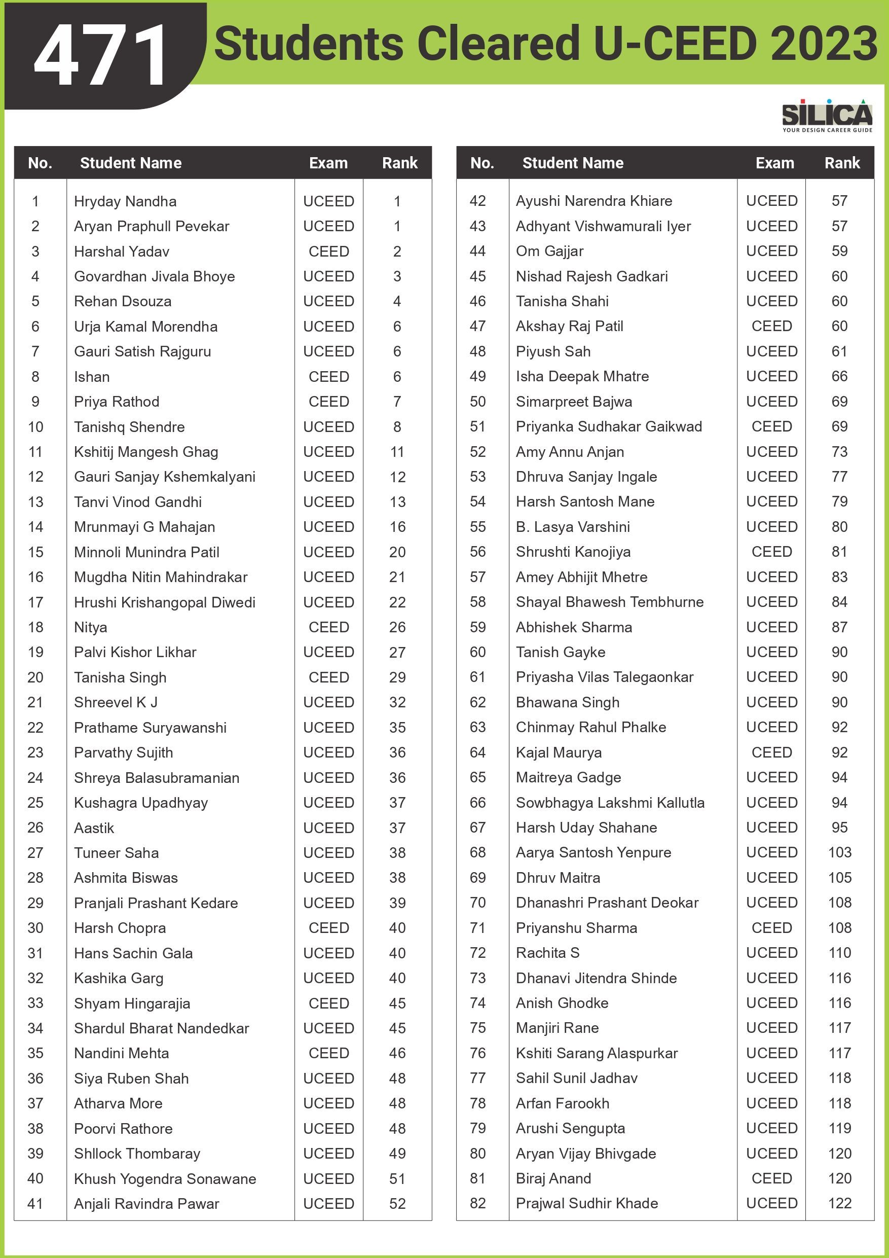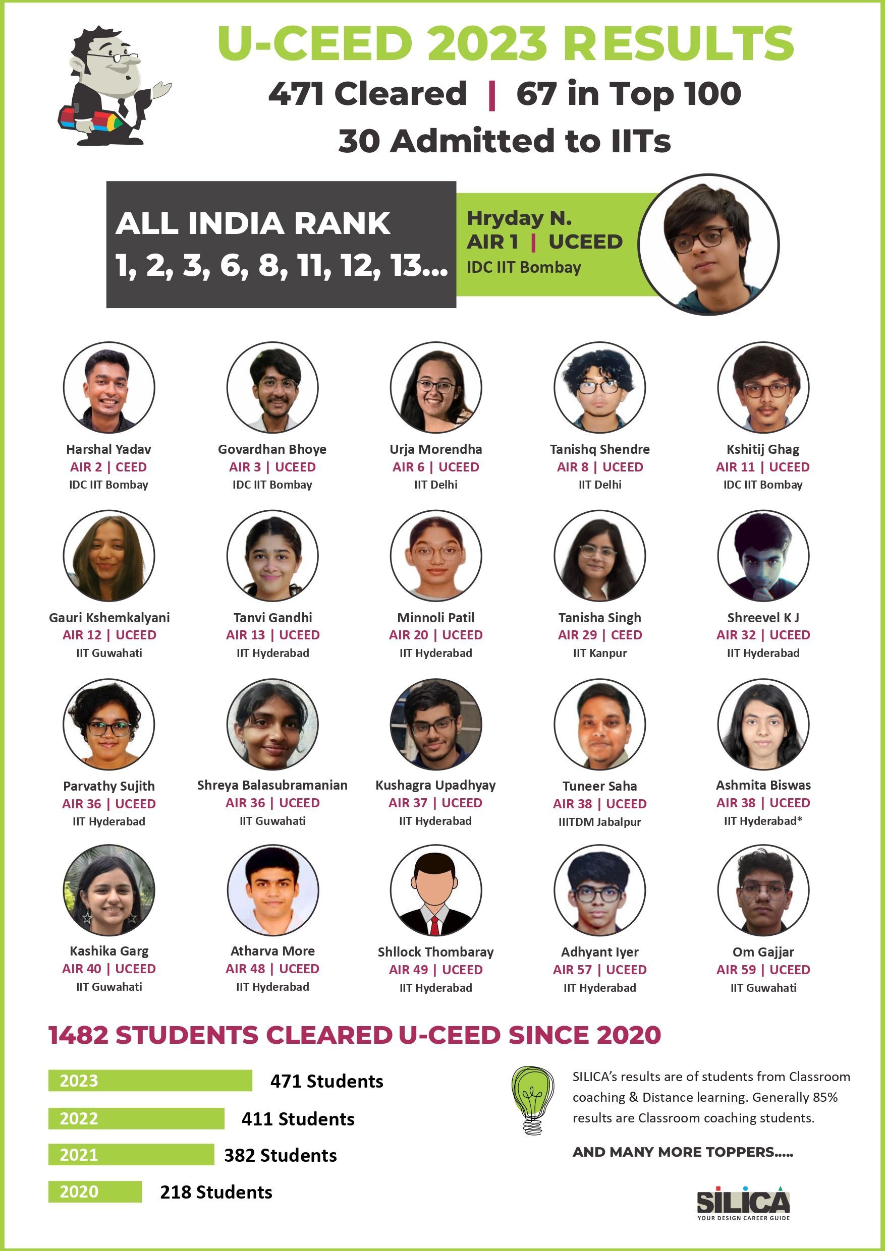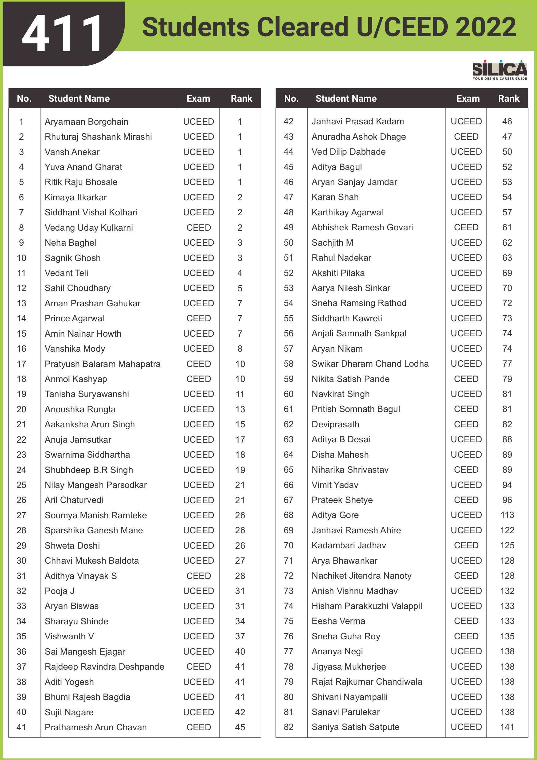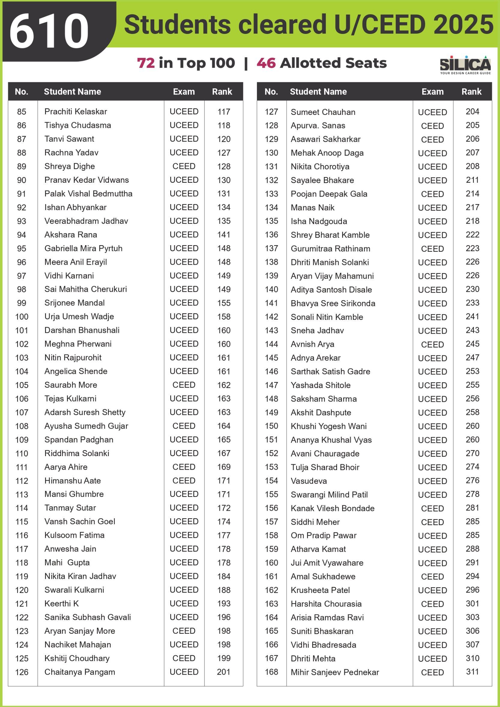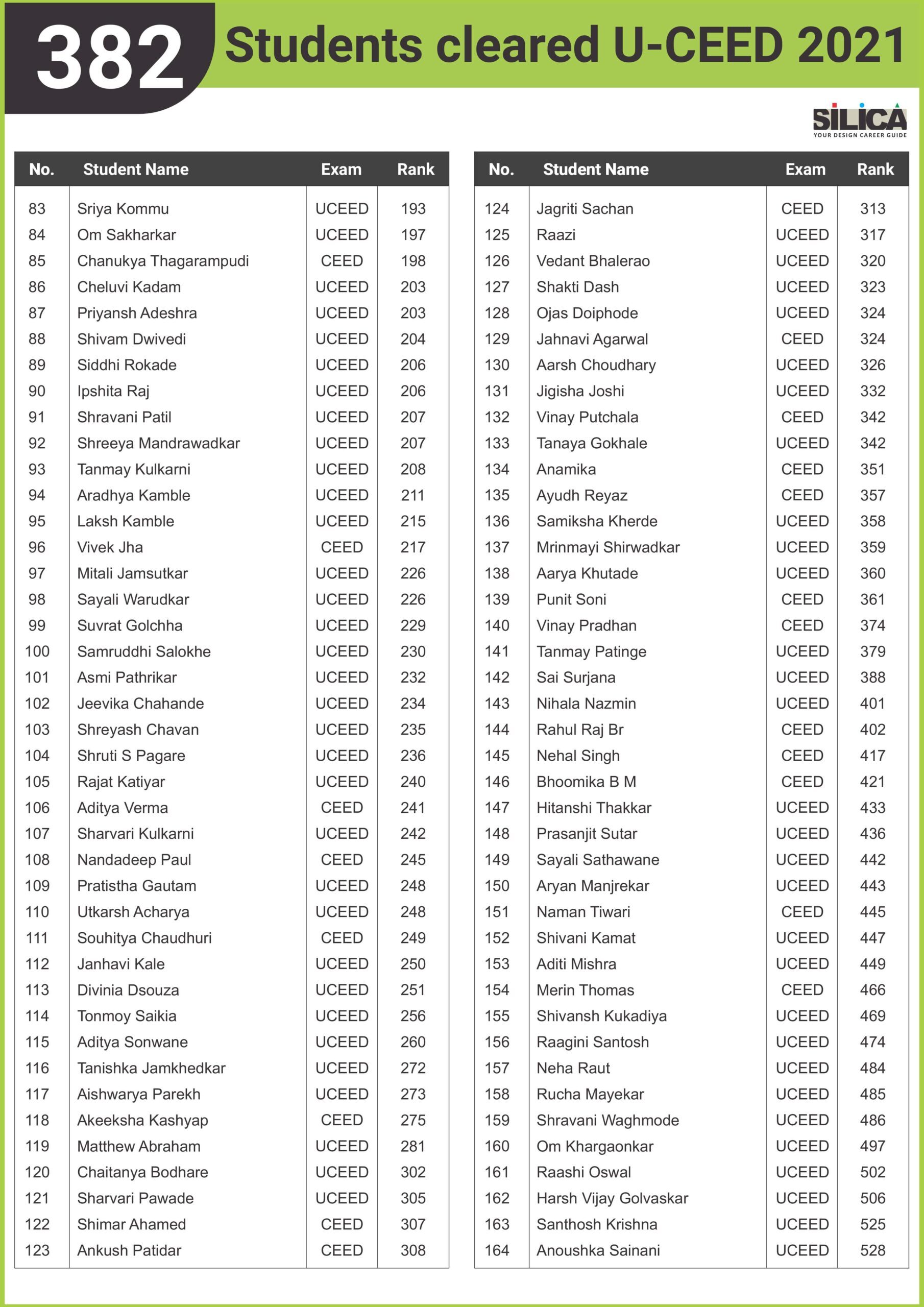 After appearing for the CEED 2025 exam, I received offers from both IIT Bombay and IIT Hyderabad. SILICA helped me immensely on this design exam journey. I’m thankful for their online course and study kit which played a key role in my success.