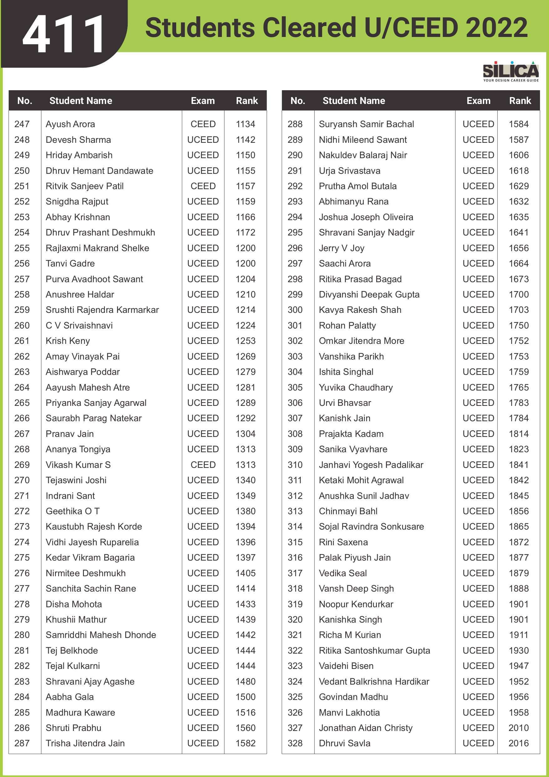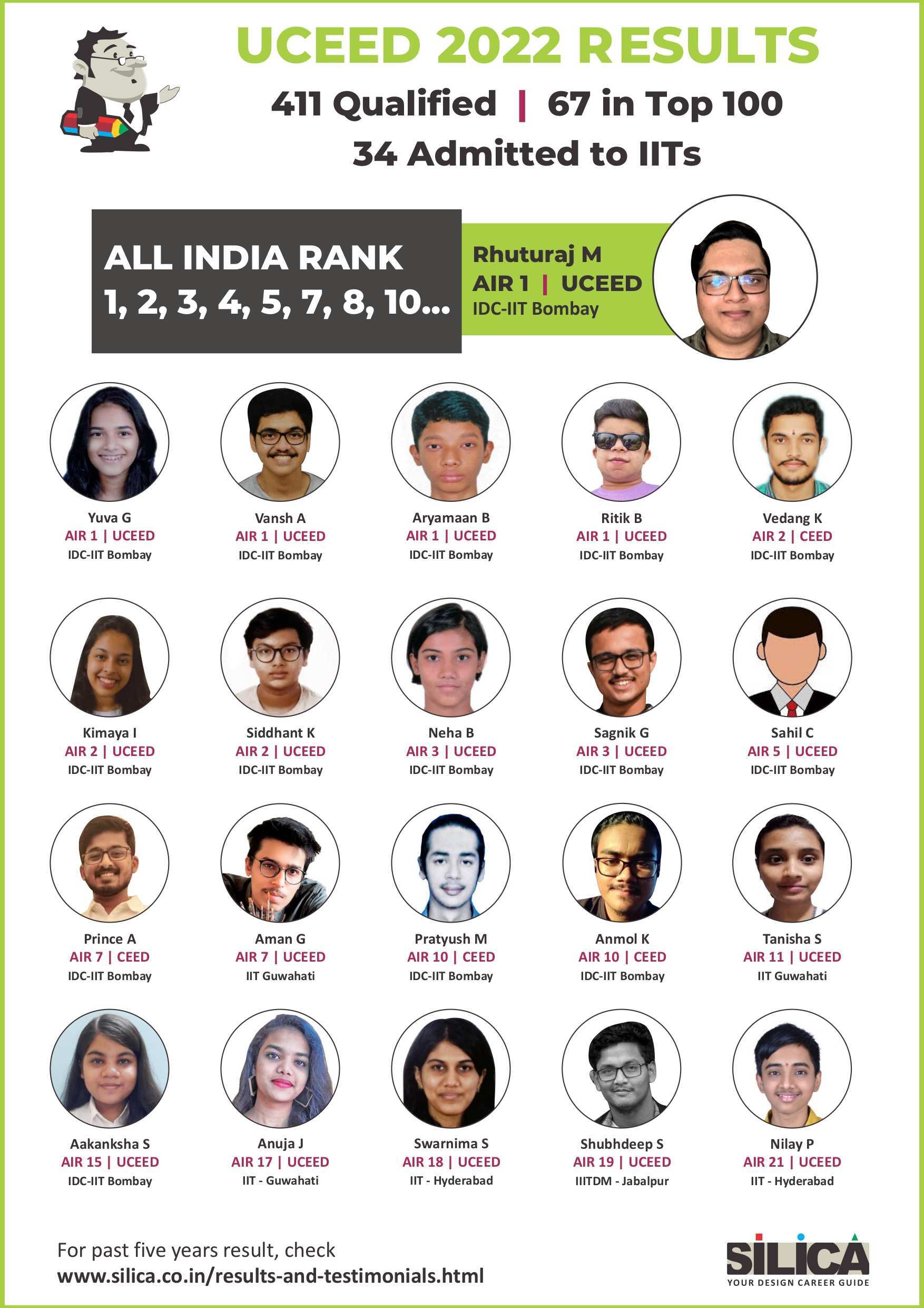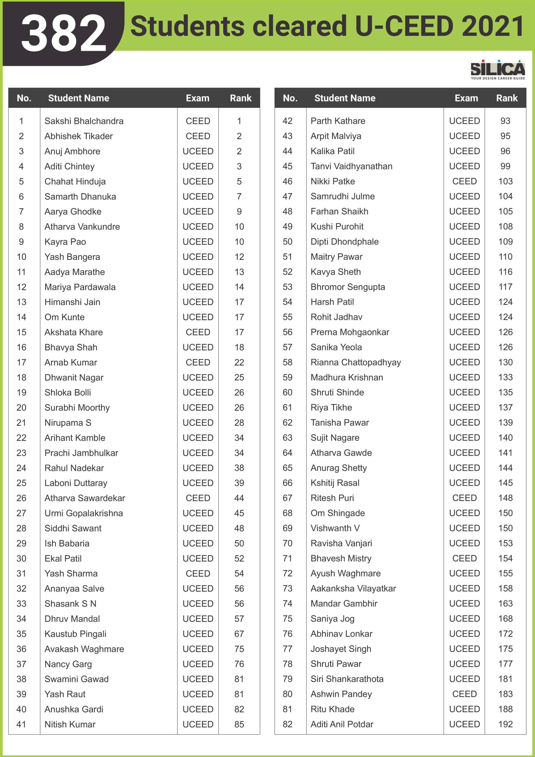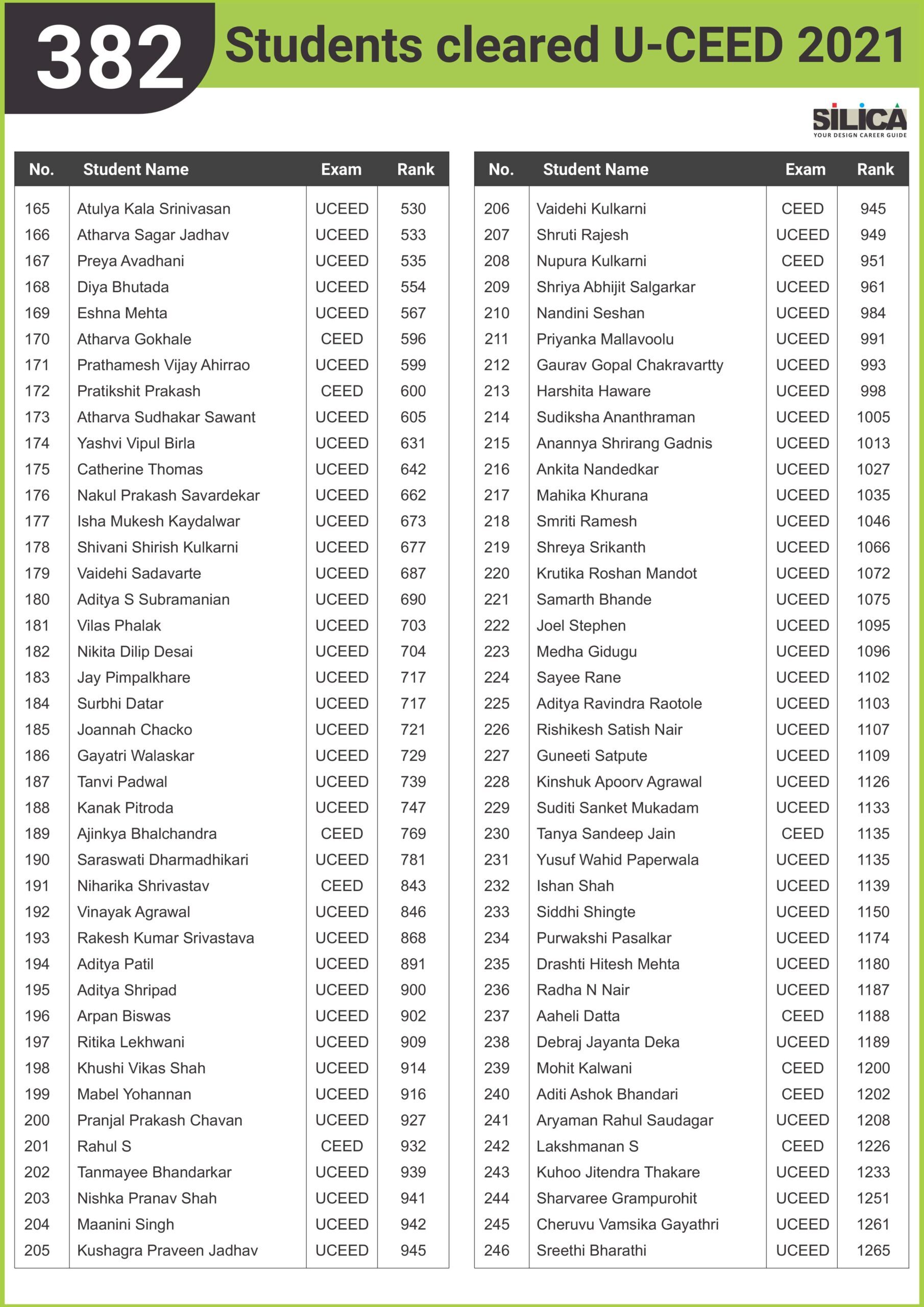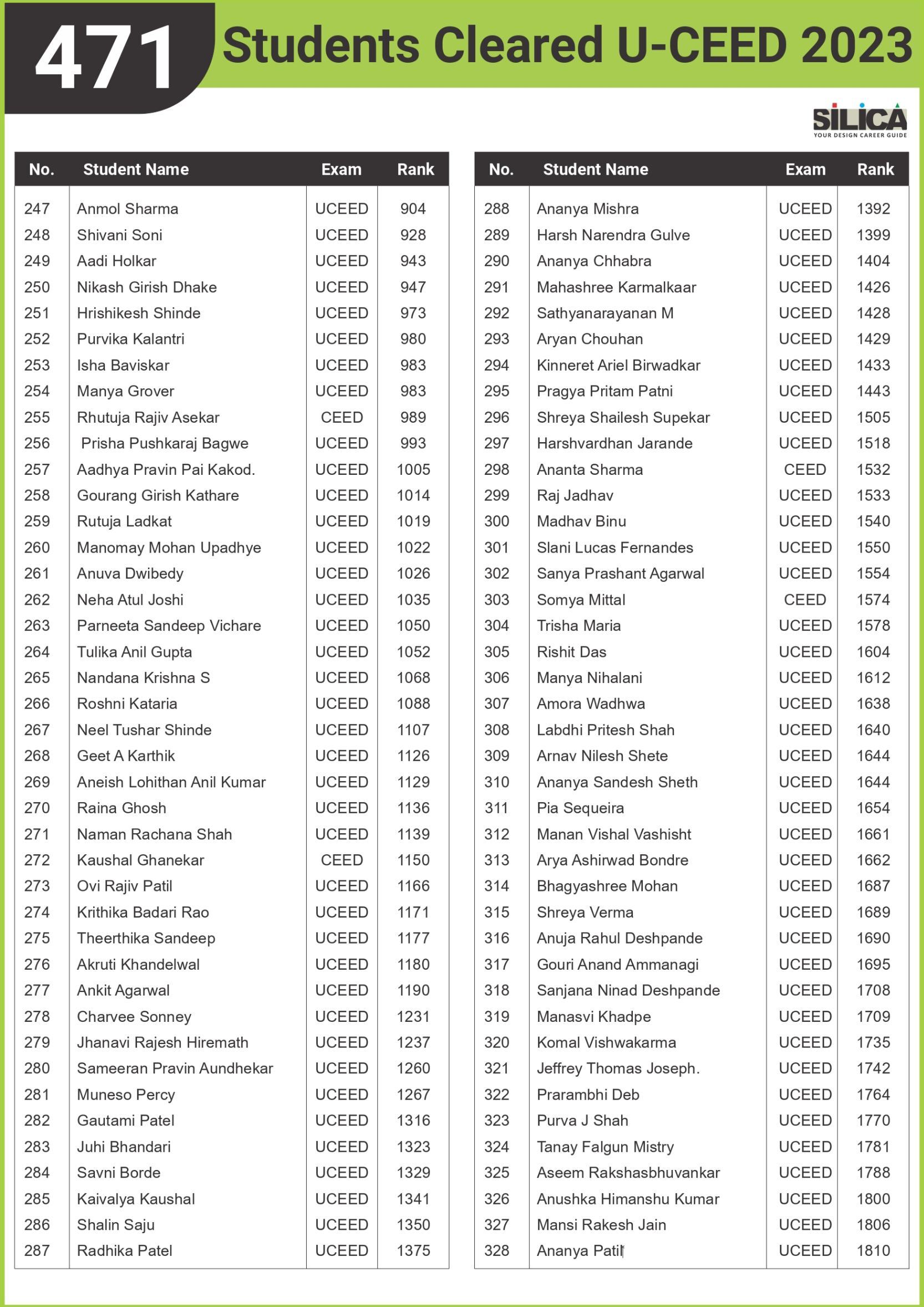 After appearing for the CEED 2025 exam, I received offers from both IIT Bombay and IIT Hyderabad. SILICA helped me immensely on this design exam journey. I’m thankful for their online course and study kit which played a key role in my success.