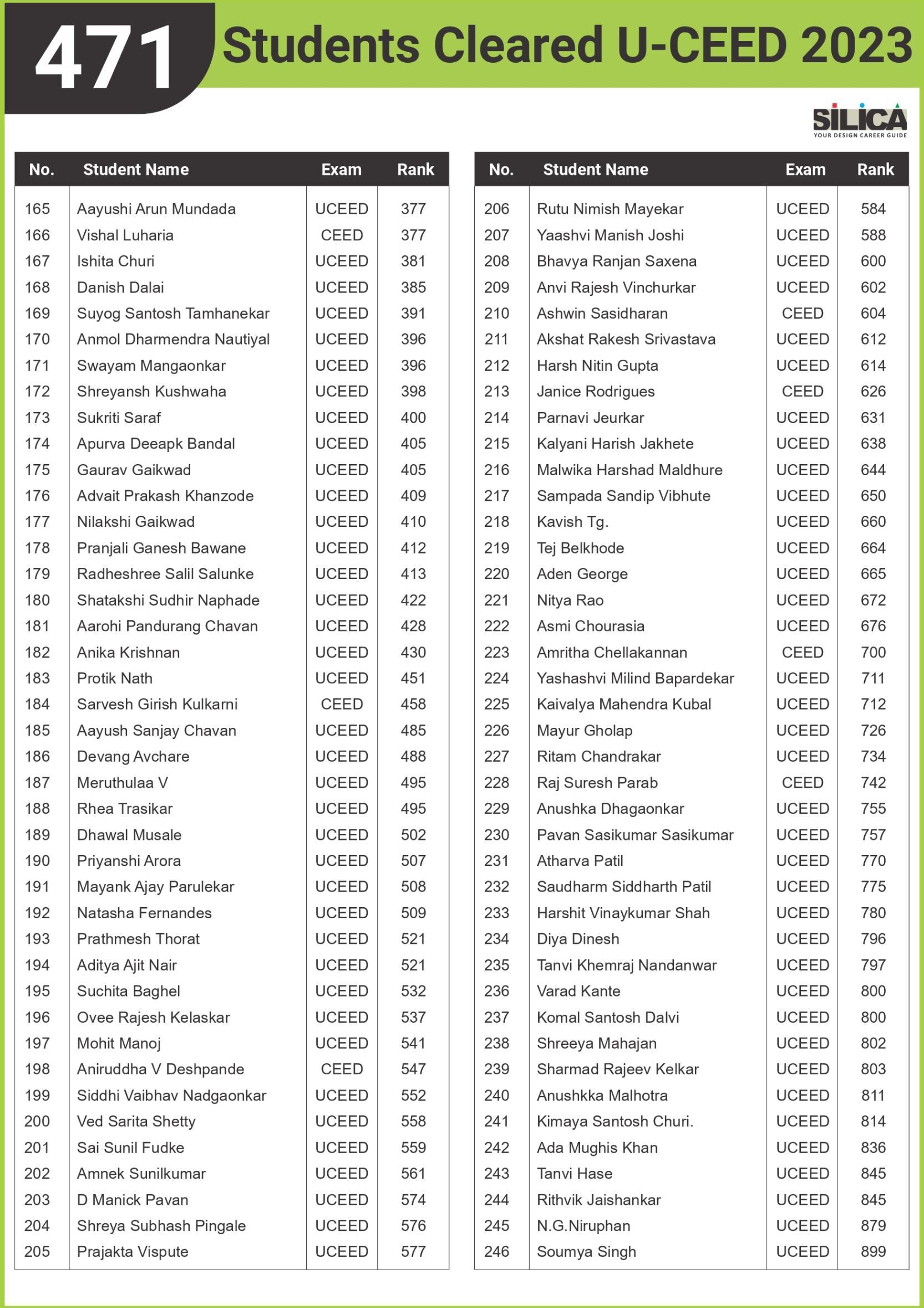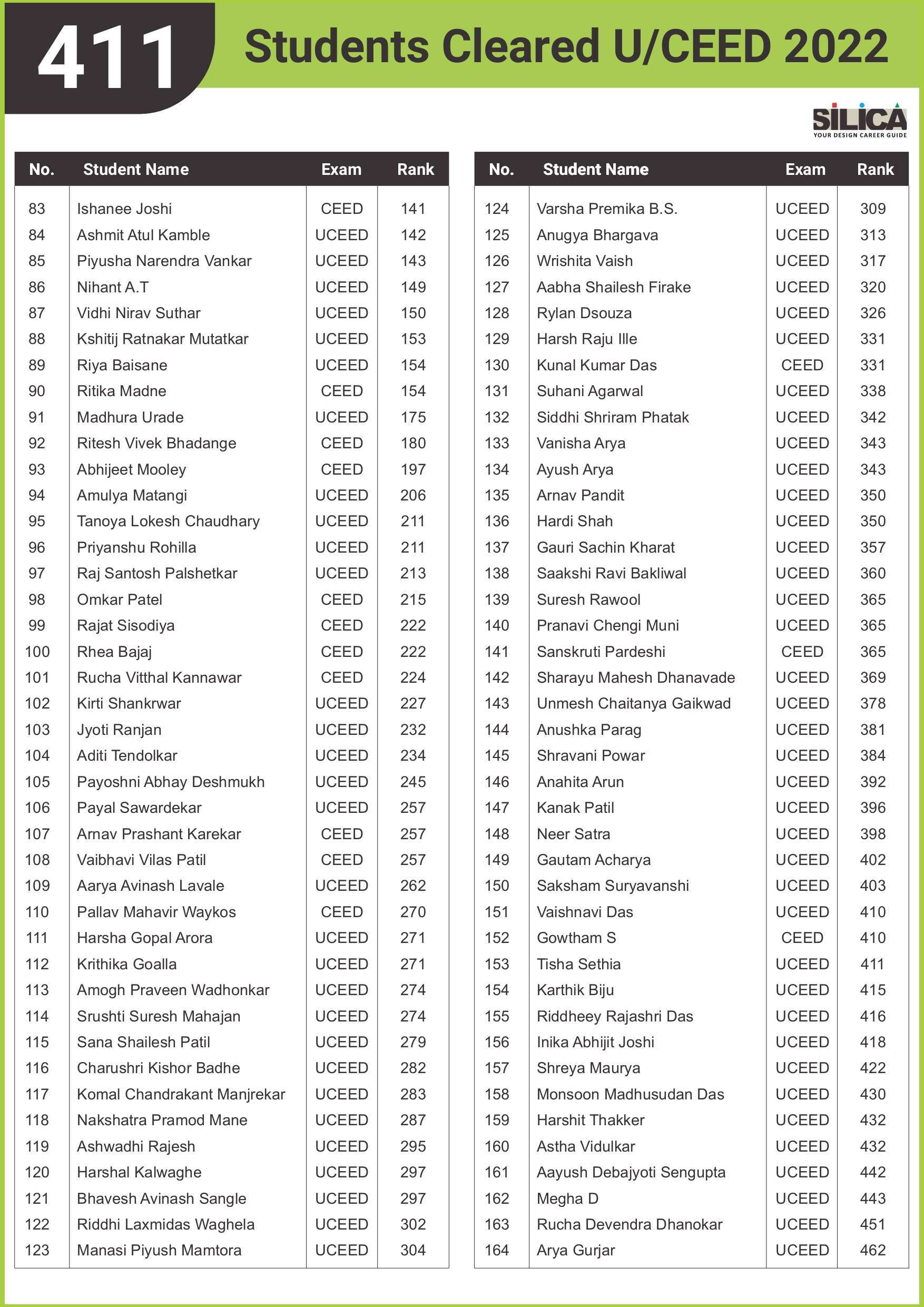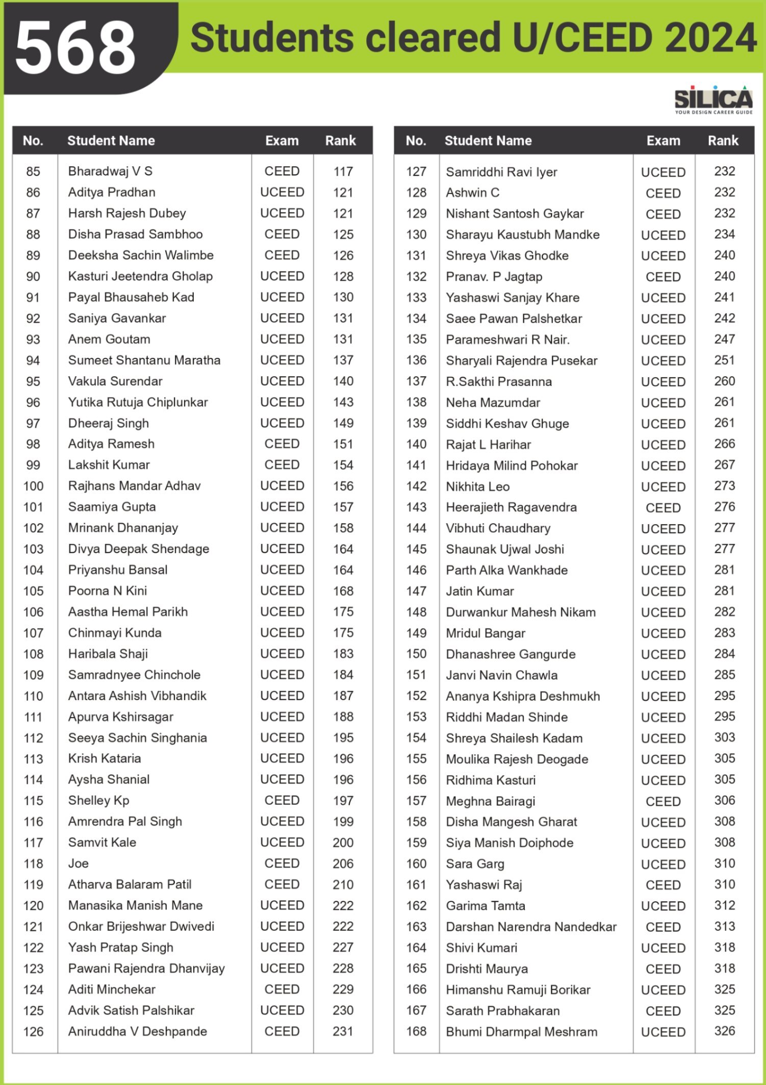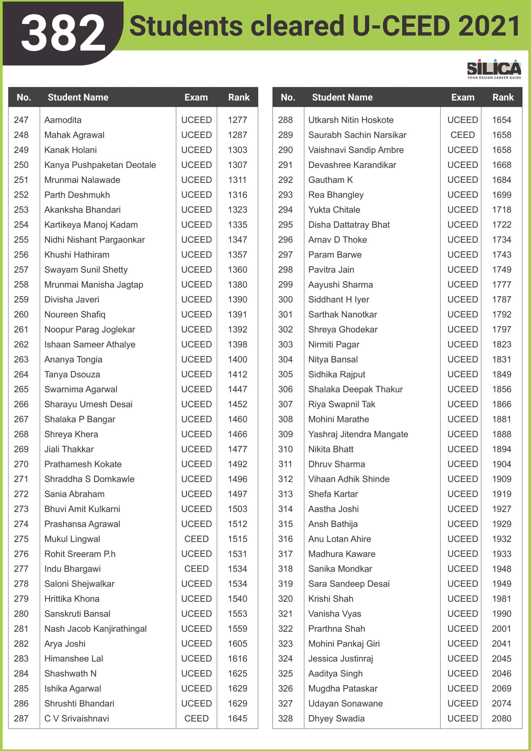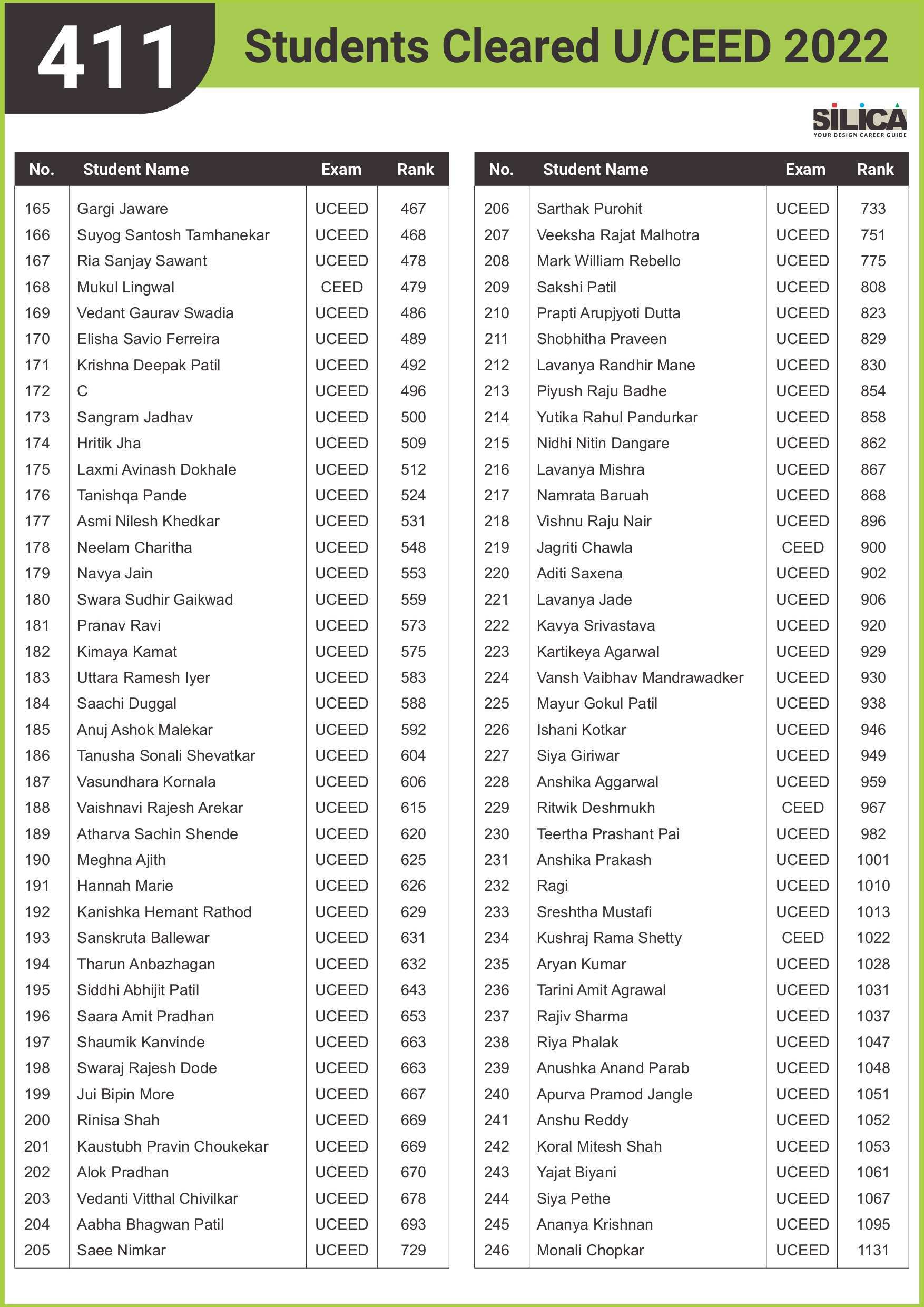 After appearing for the CEED 2025 exam, I received offers from both IIT Bombay and IIT Hyderabad. SILICA helped me immensely on this design exam journey. I’m thankful for their online course and study kit which played a key role in my success.