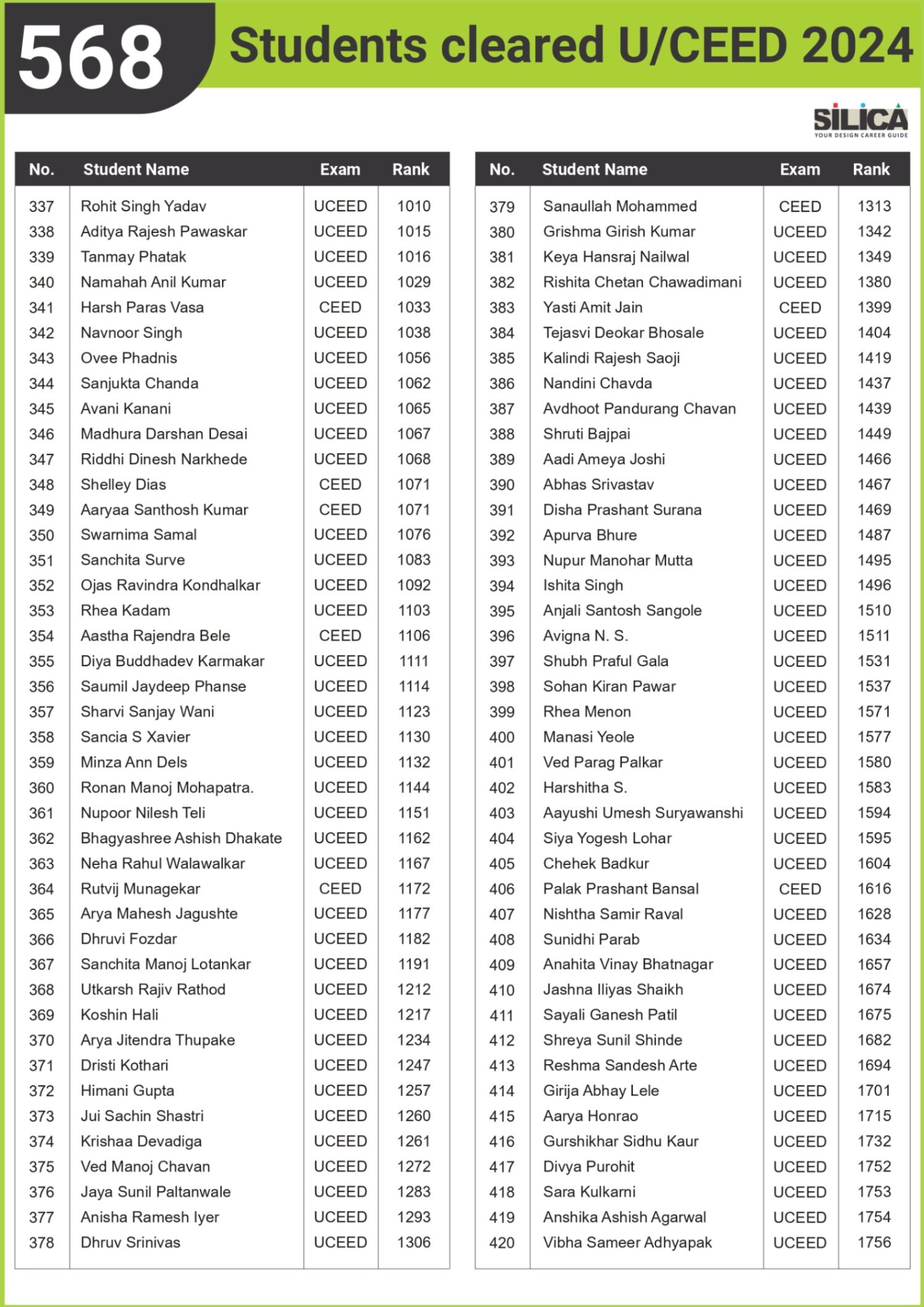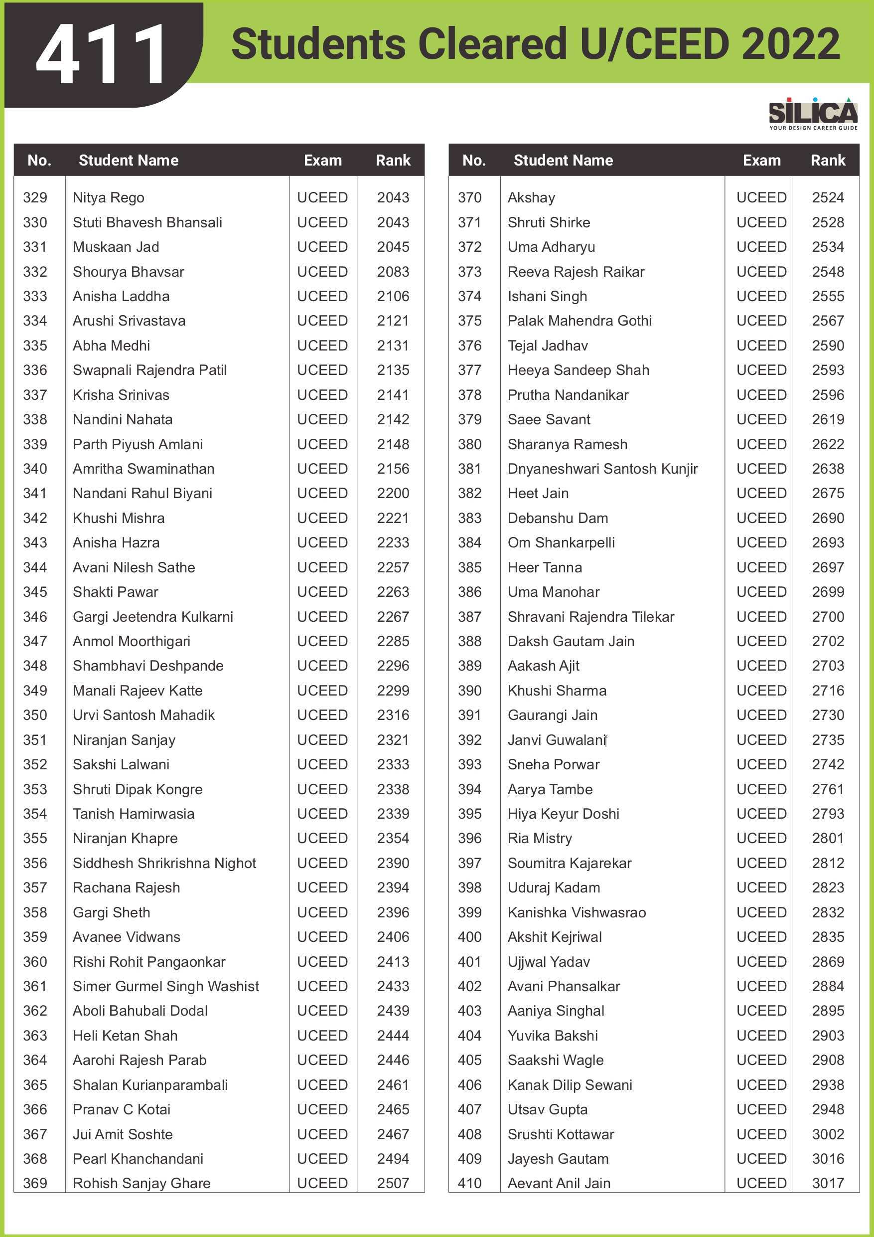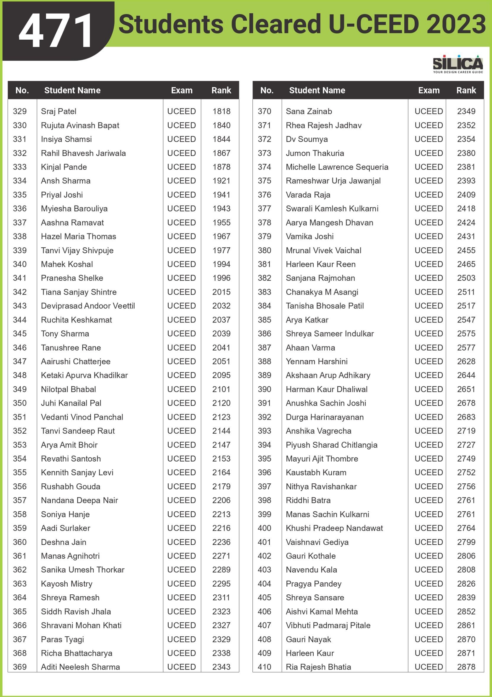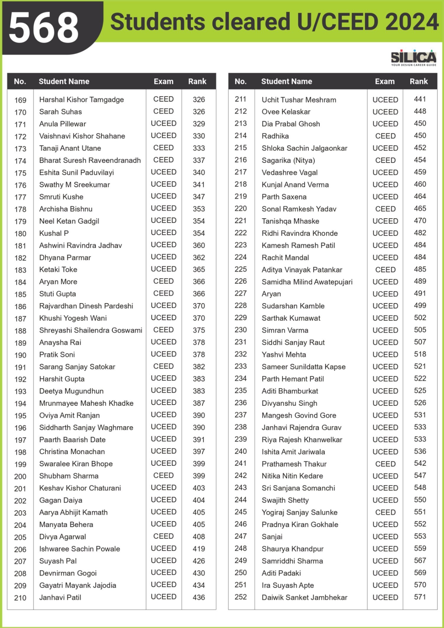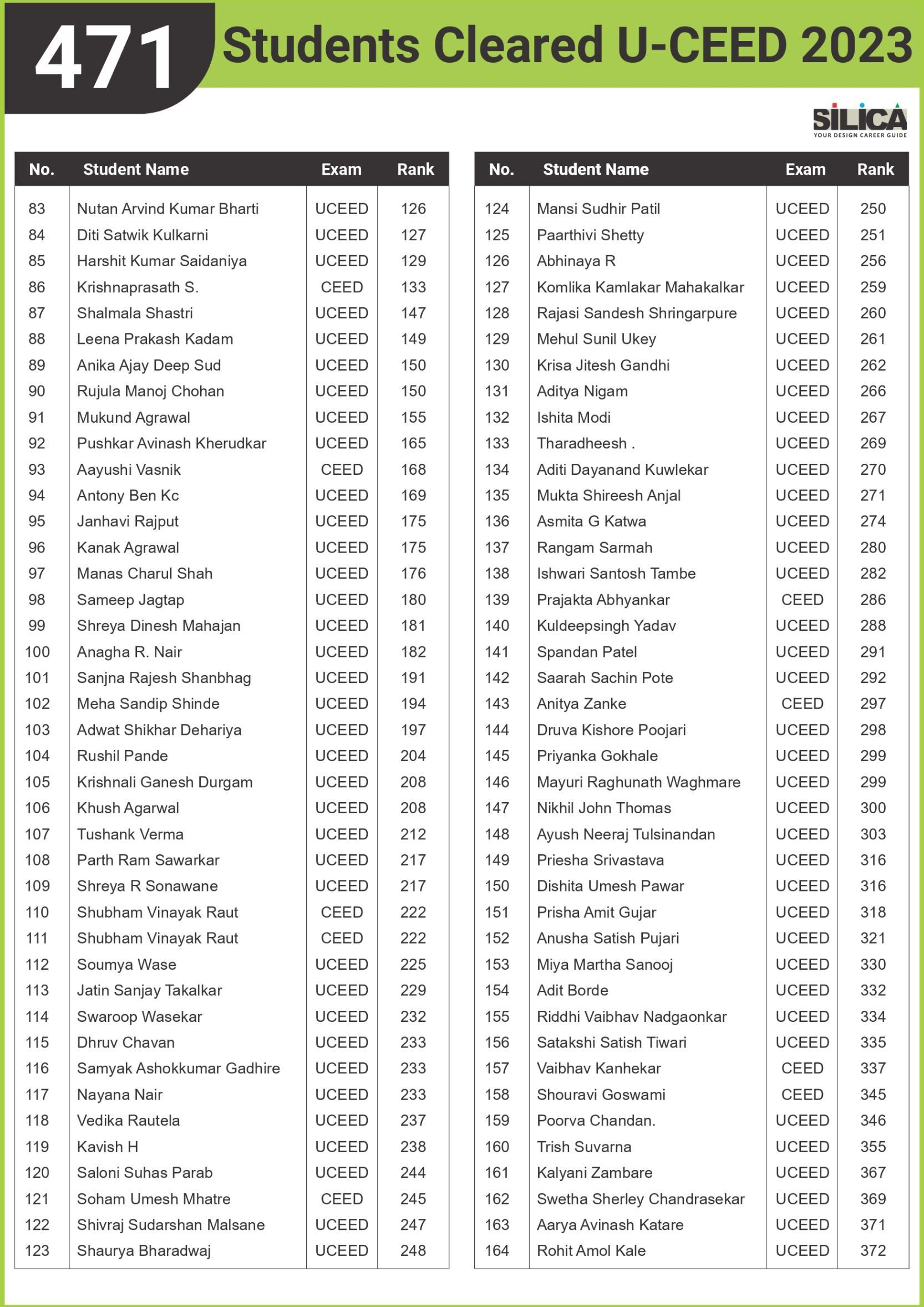 After appearing for the CEED 2025 exam, I received offers from both IIT Bombay and IIT Hyderabad. SILICA helped me immensely on this design exam journey. I’m thankful for their online course and study kit which played a key role in my success.