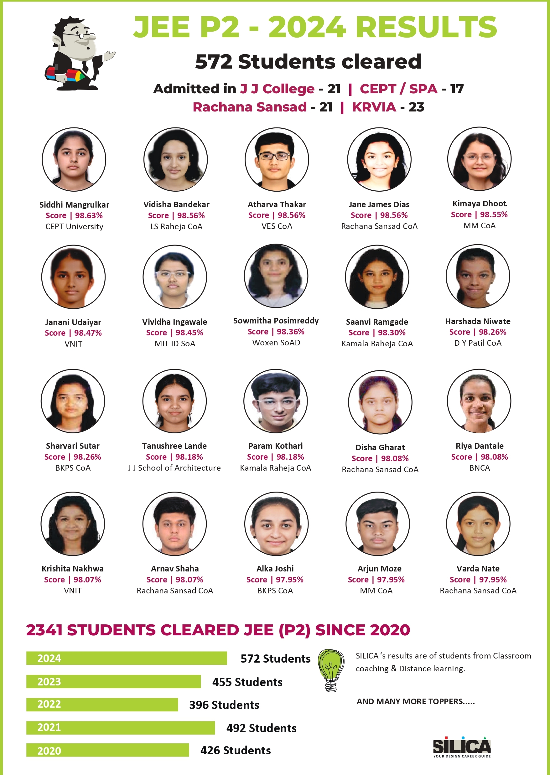"Thanks to SILICA, I have attended several workshops, which have been invaluable for my preparation." - Anuja Jamsutkar, UCEED | AIR 17