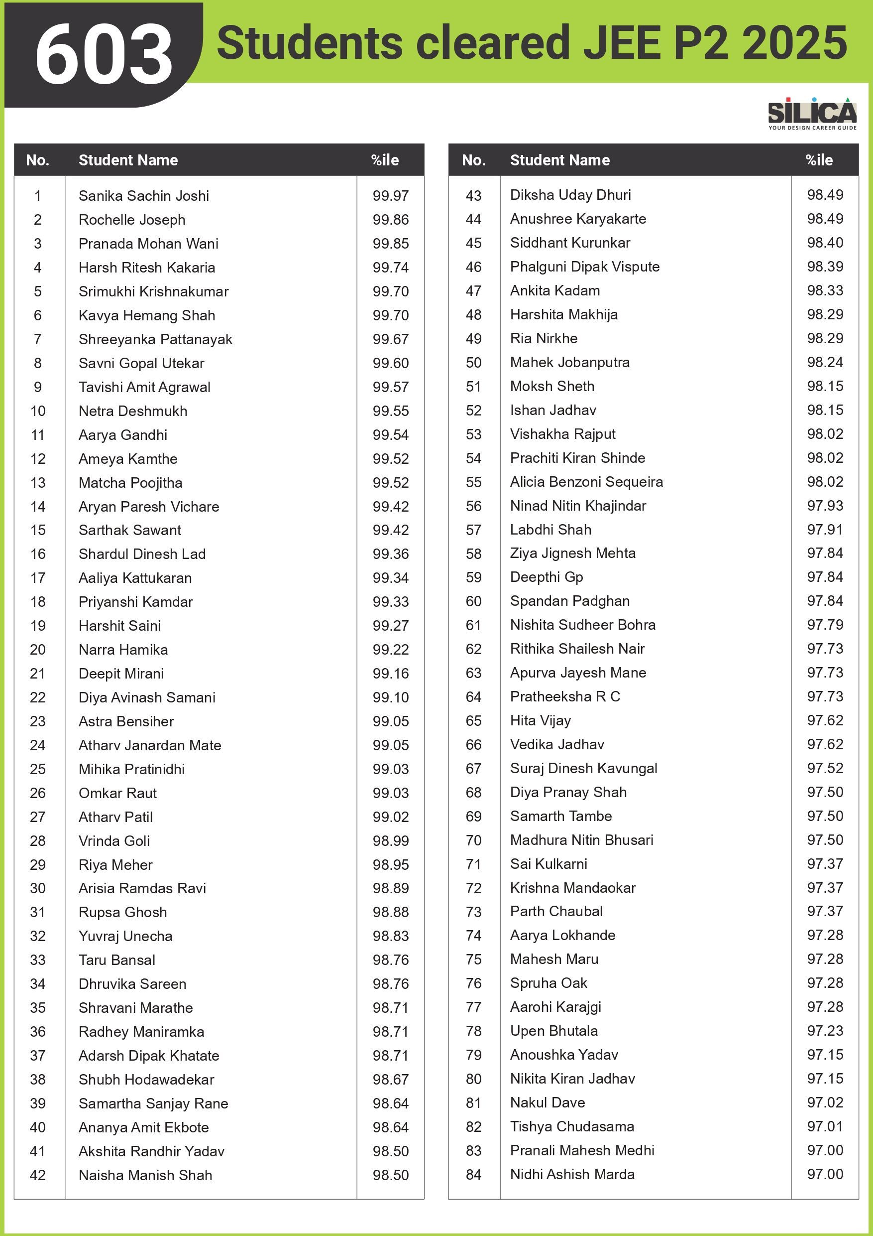 Sanika Joshi JEE P2 (B.Arch) 99.97 Percentile