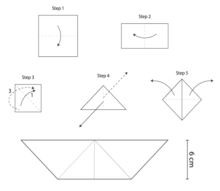 | Q.5. Given below are the steps to fold a square piece of paper into a paper boat. Considering the height of the boat to be 6 cm. Find the edge length of the paper.
